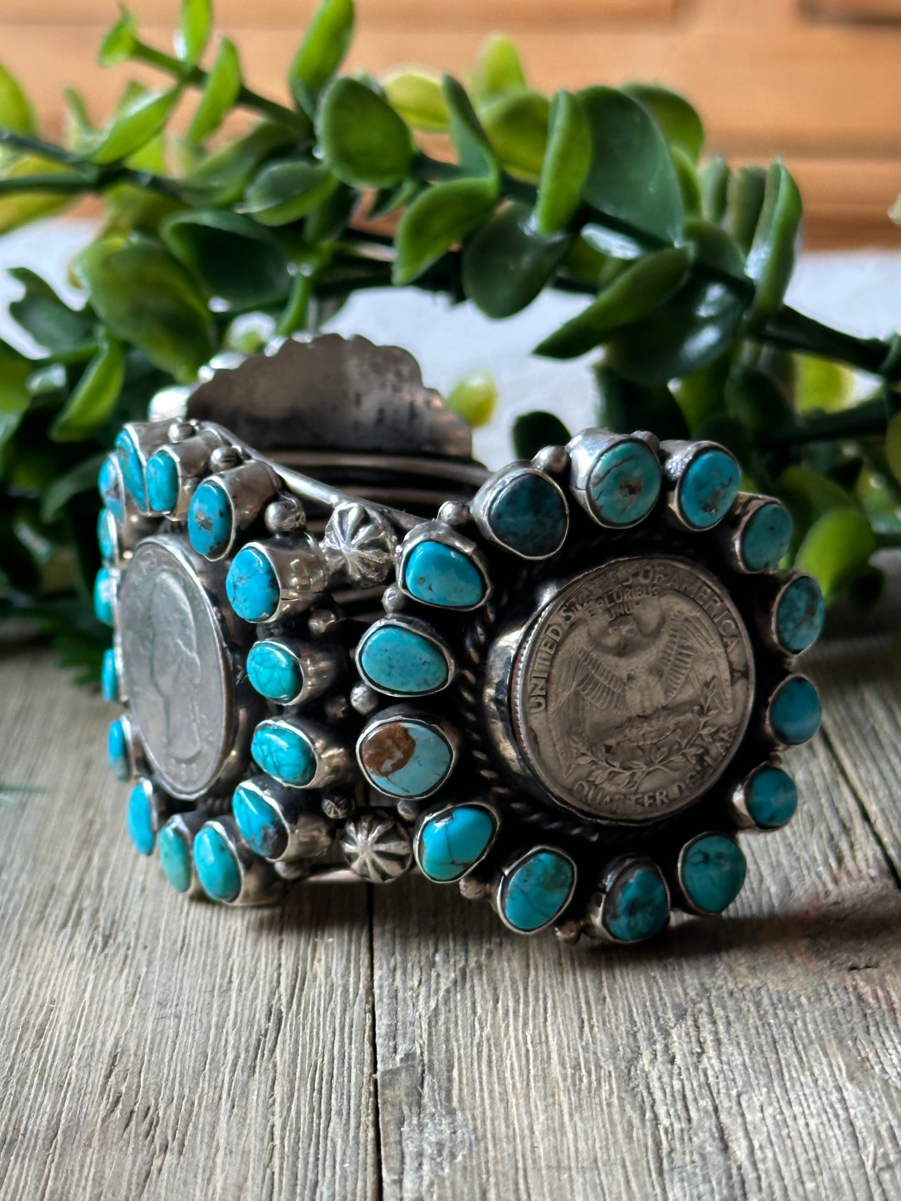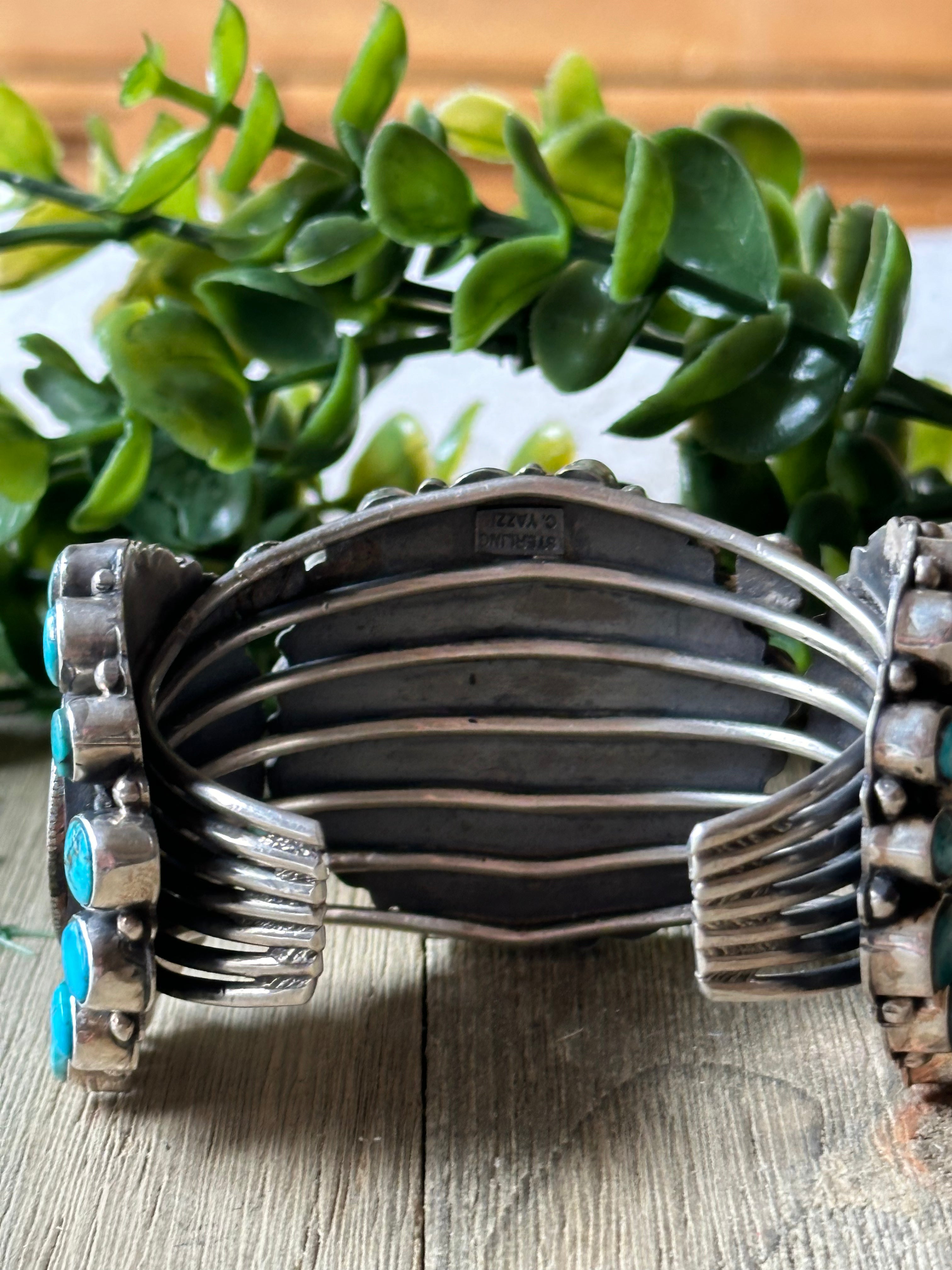 Navajo Made Kingman Turquoise & Sterling Silver Liberty Cuff Bracelet