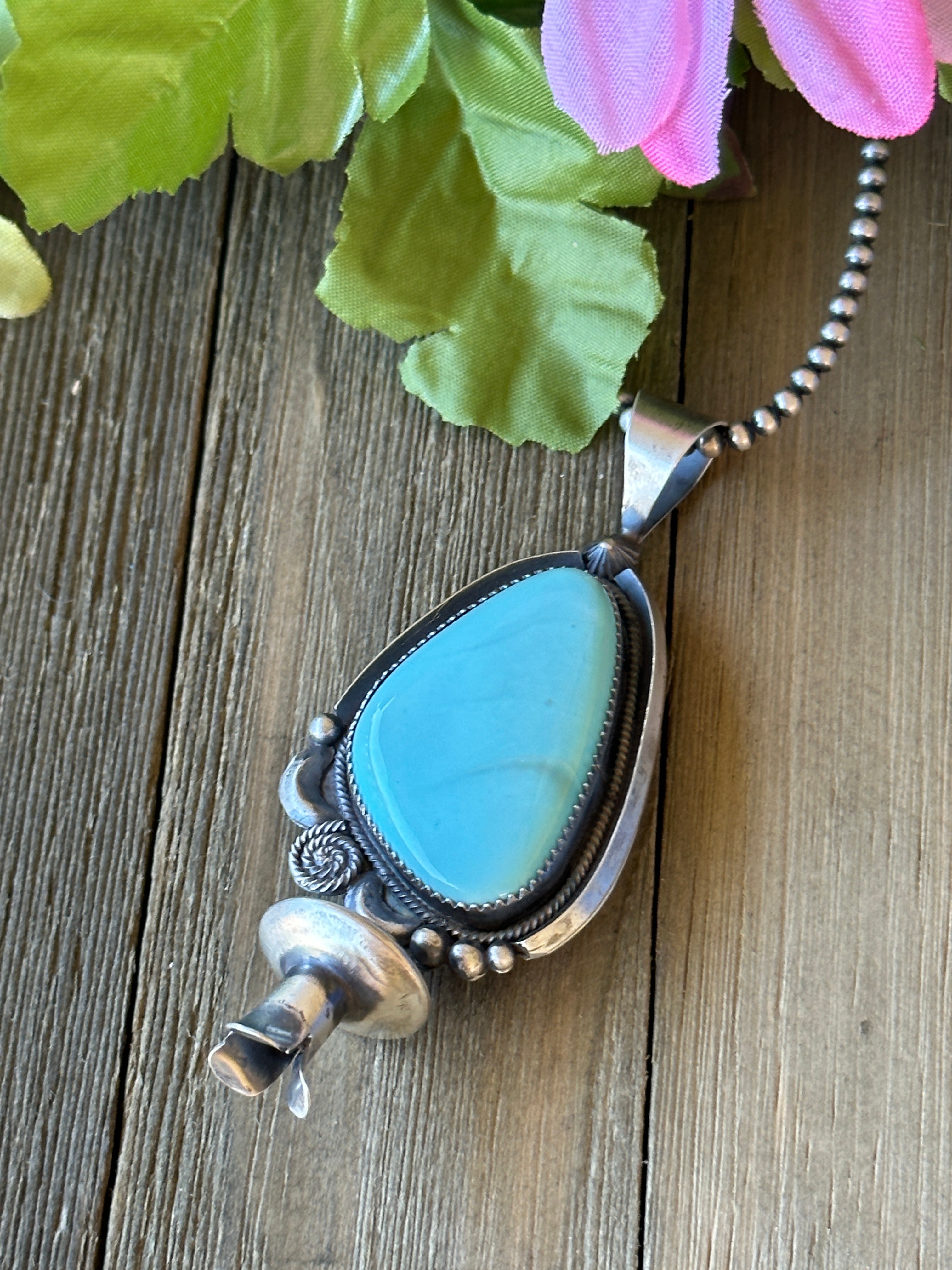 Navajo Made Kingman Turquoise & Sterling Silver Pendant