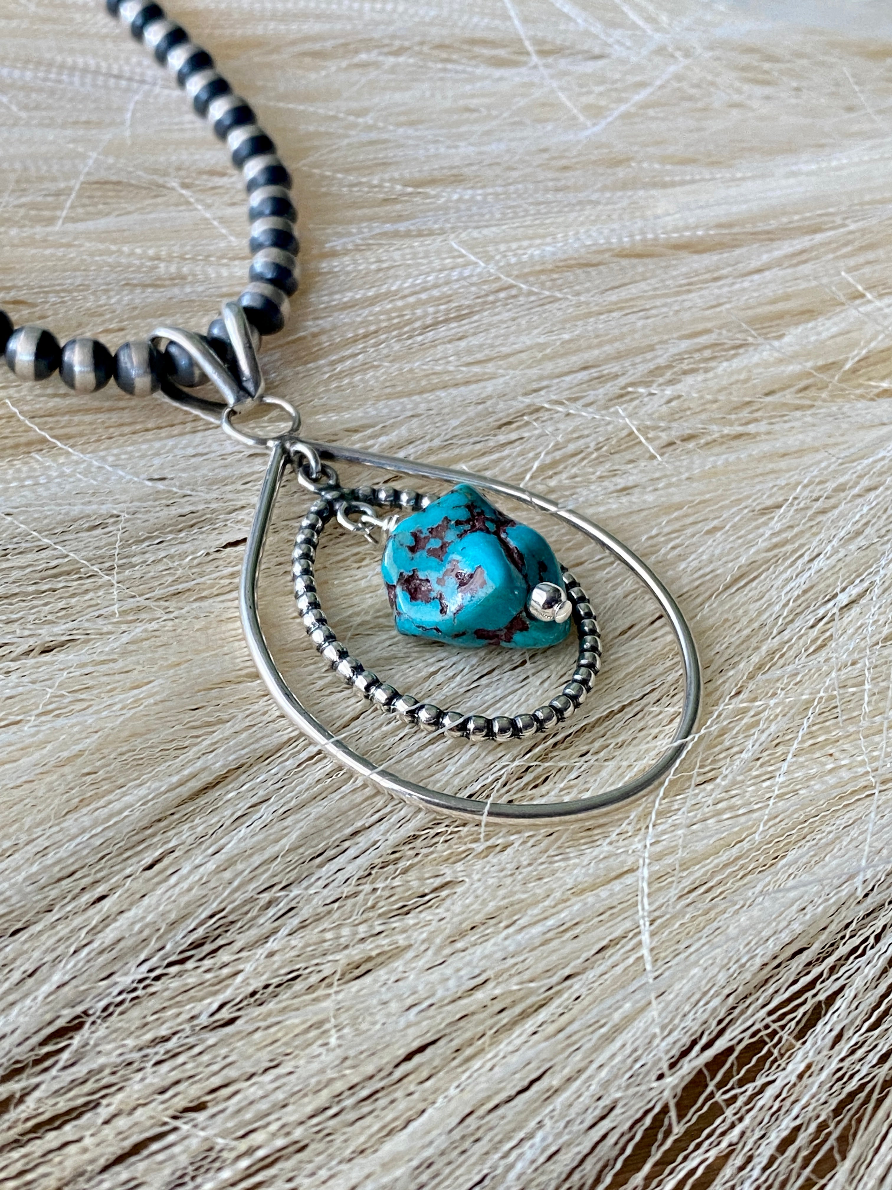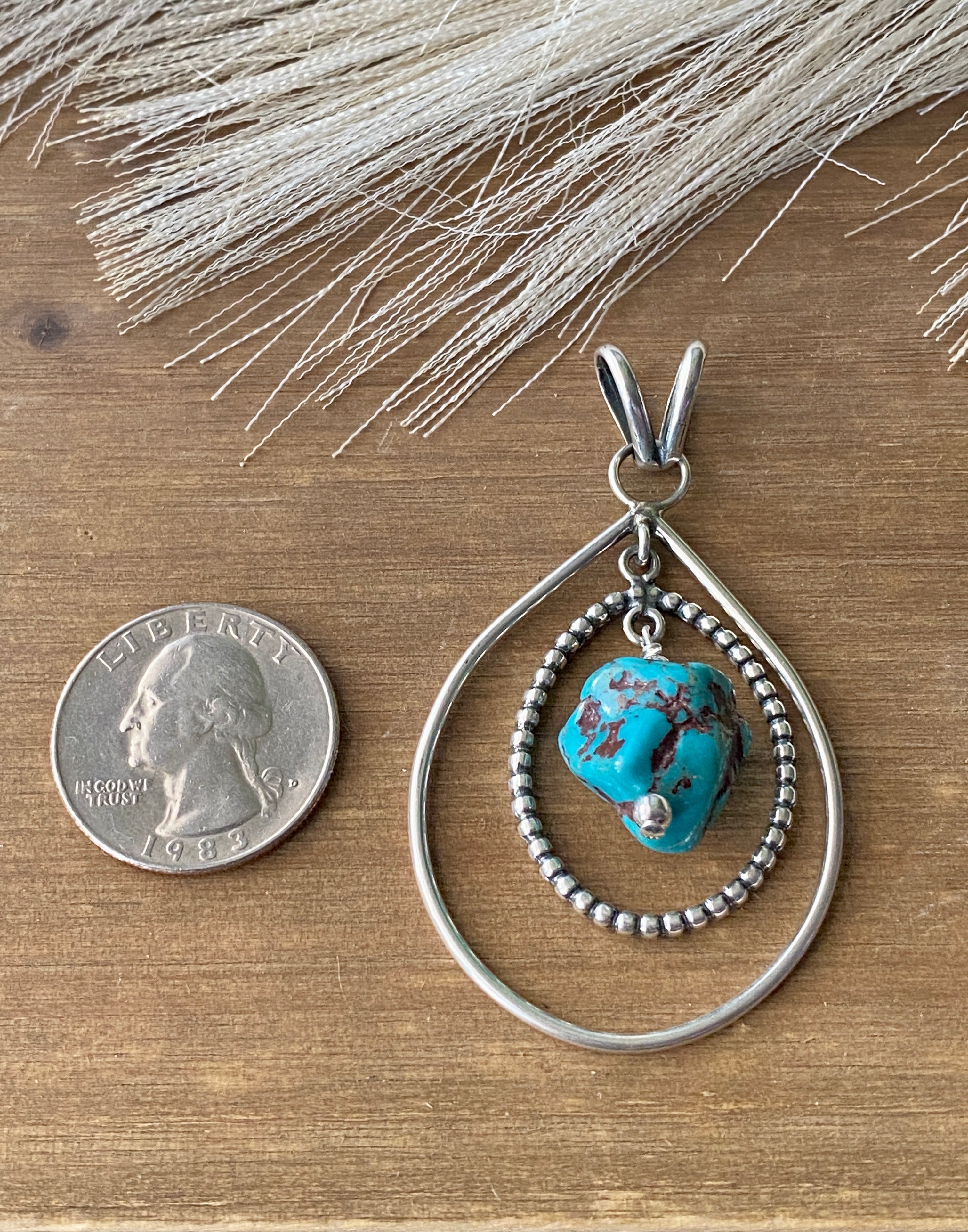 Navajo Made Kingman Turquoise & Sterling Silver Pendant