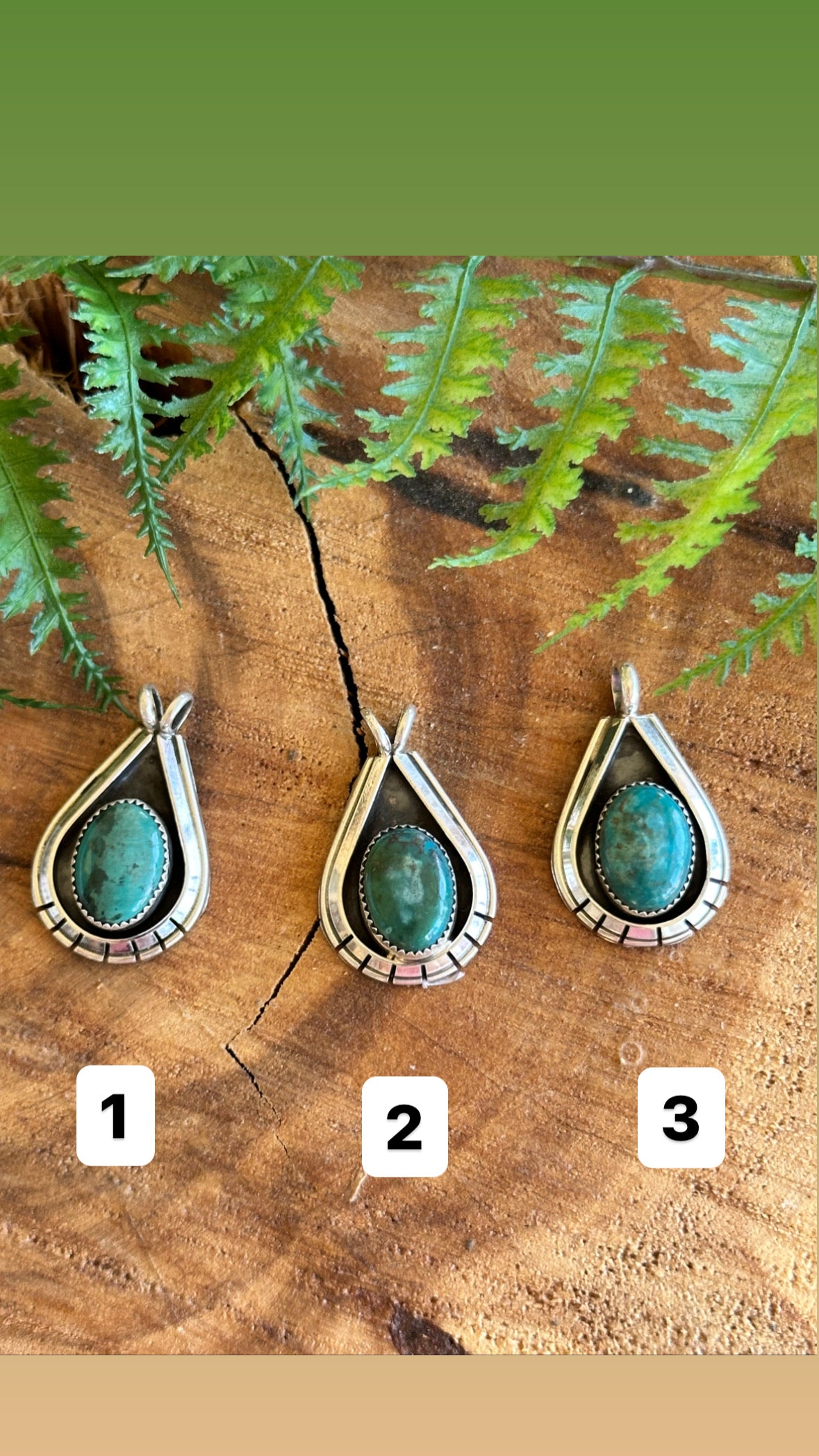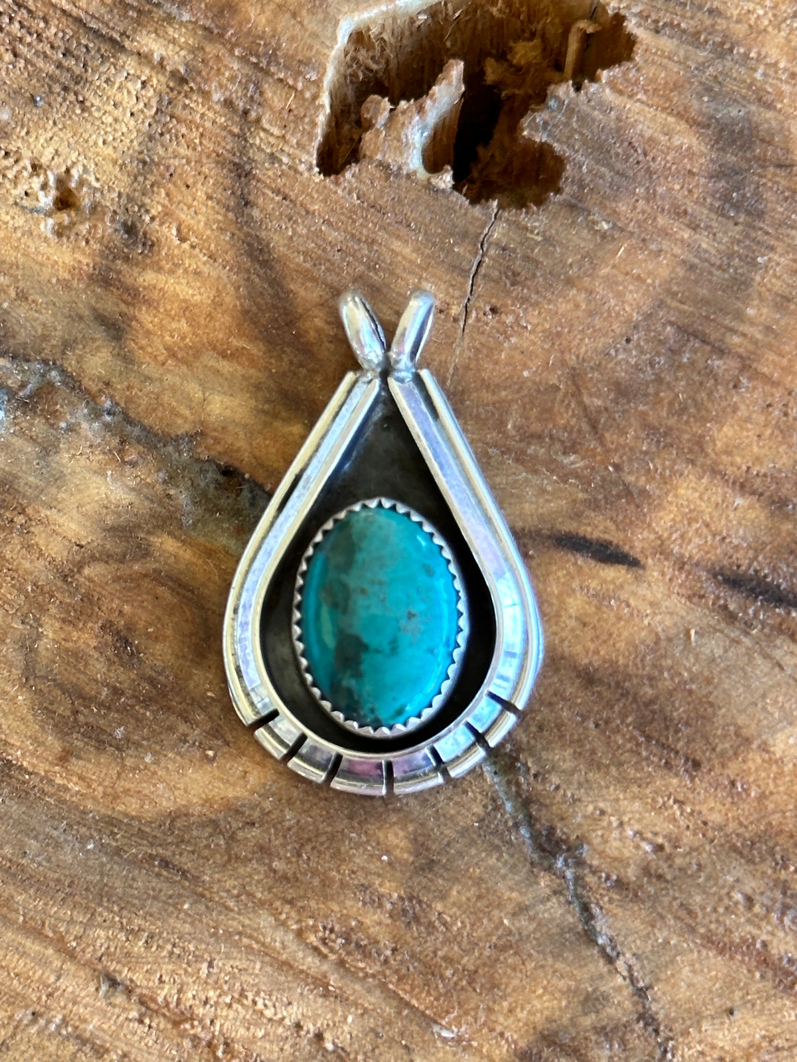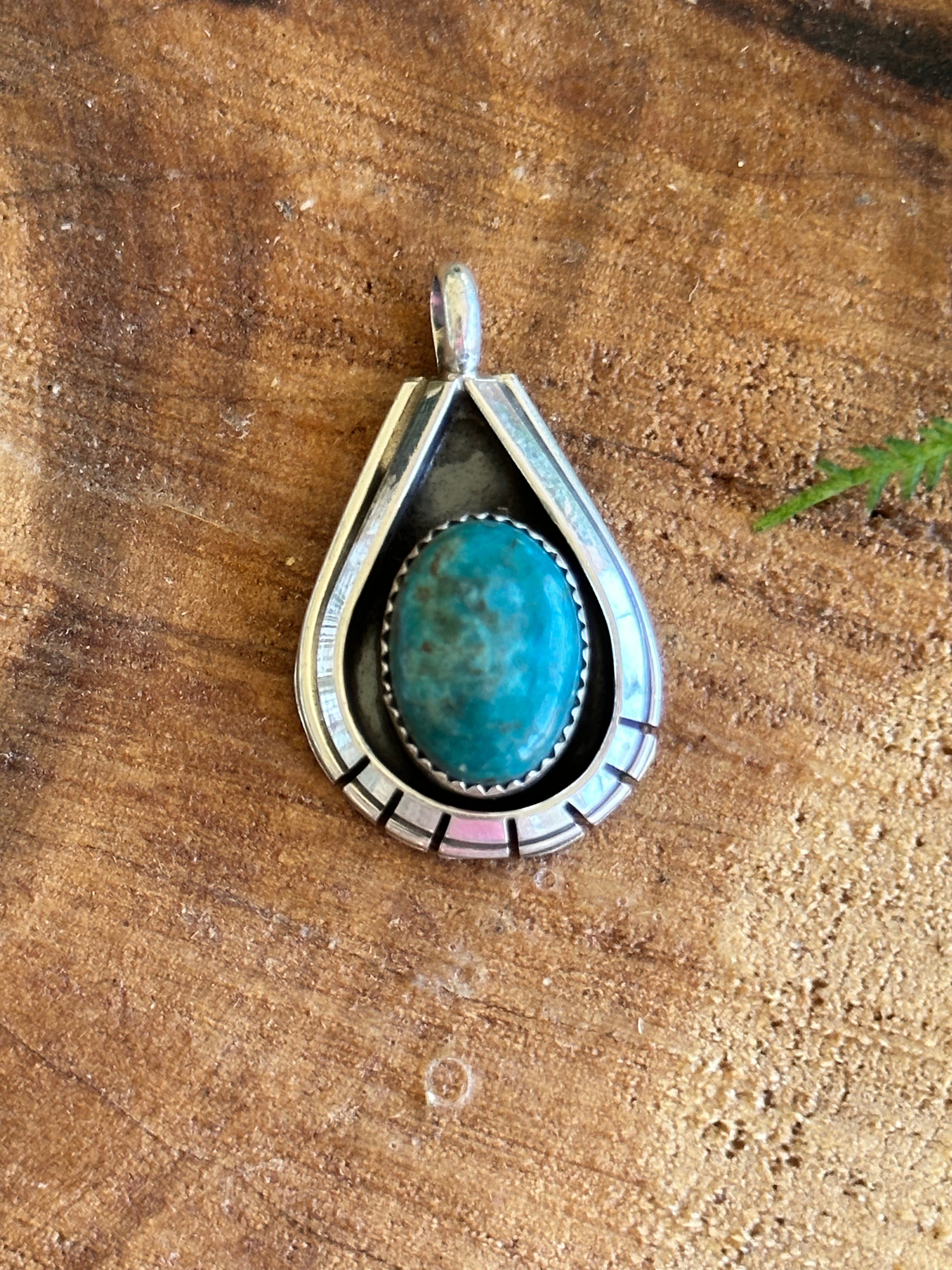 Navajo Made Kingman Turquoise & Sterling Silver Pendant