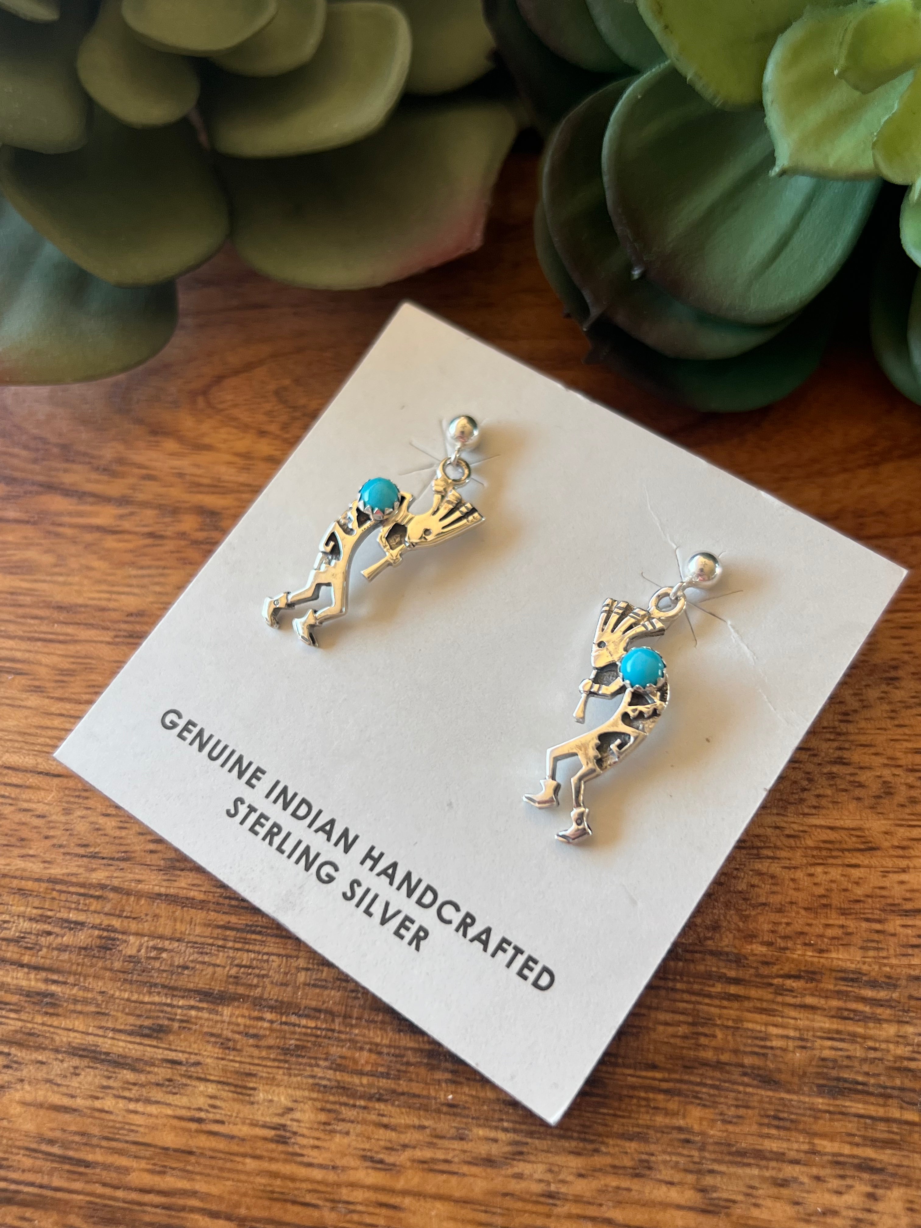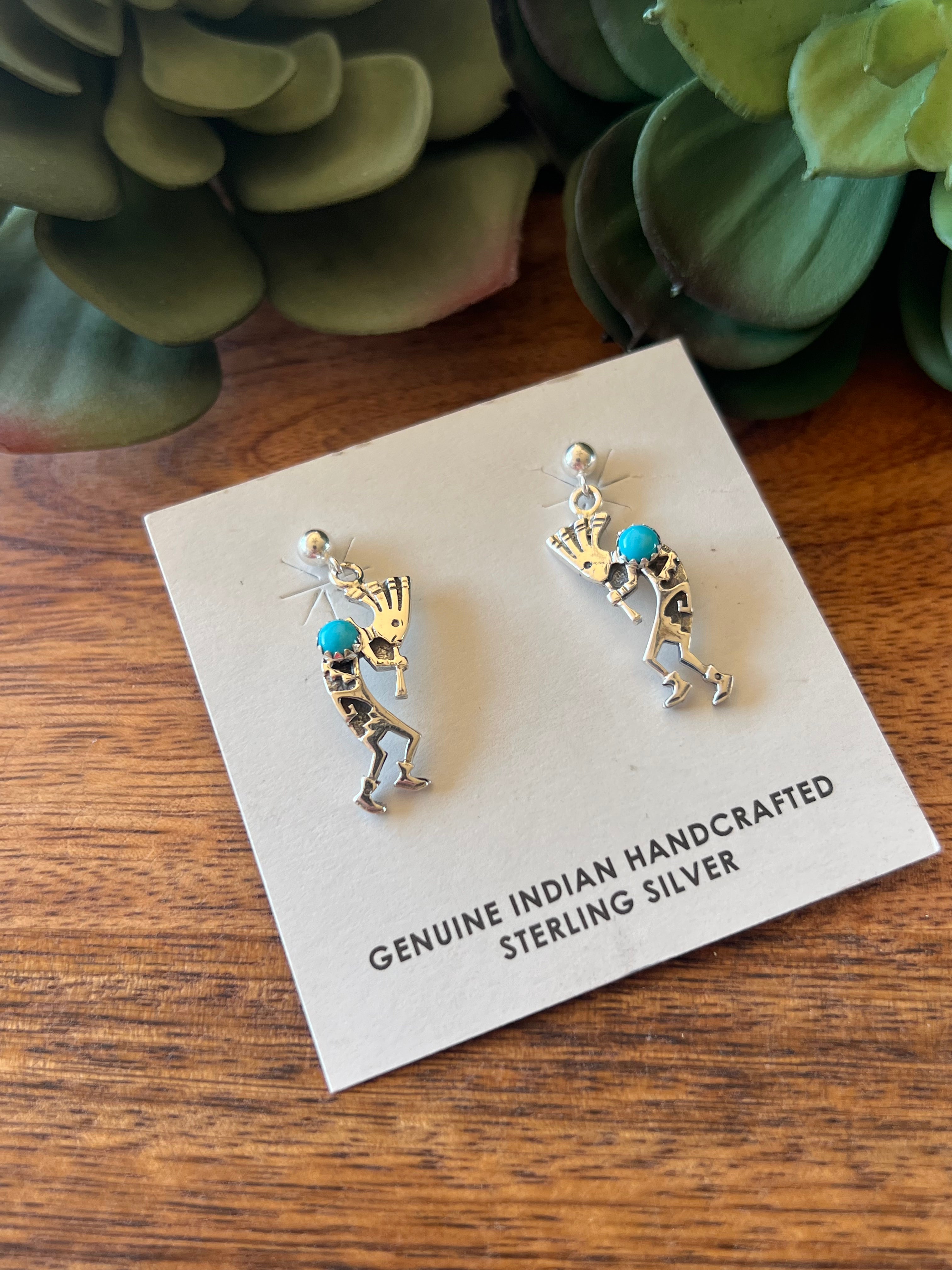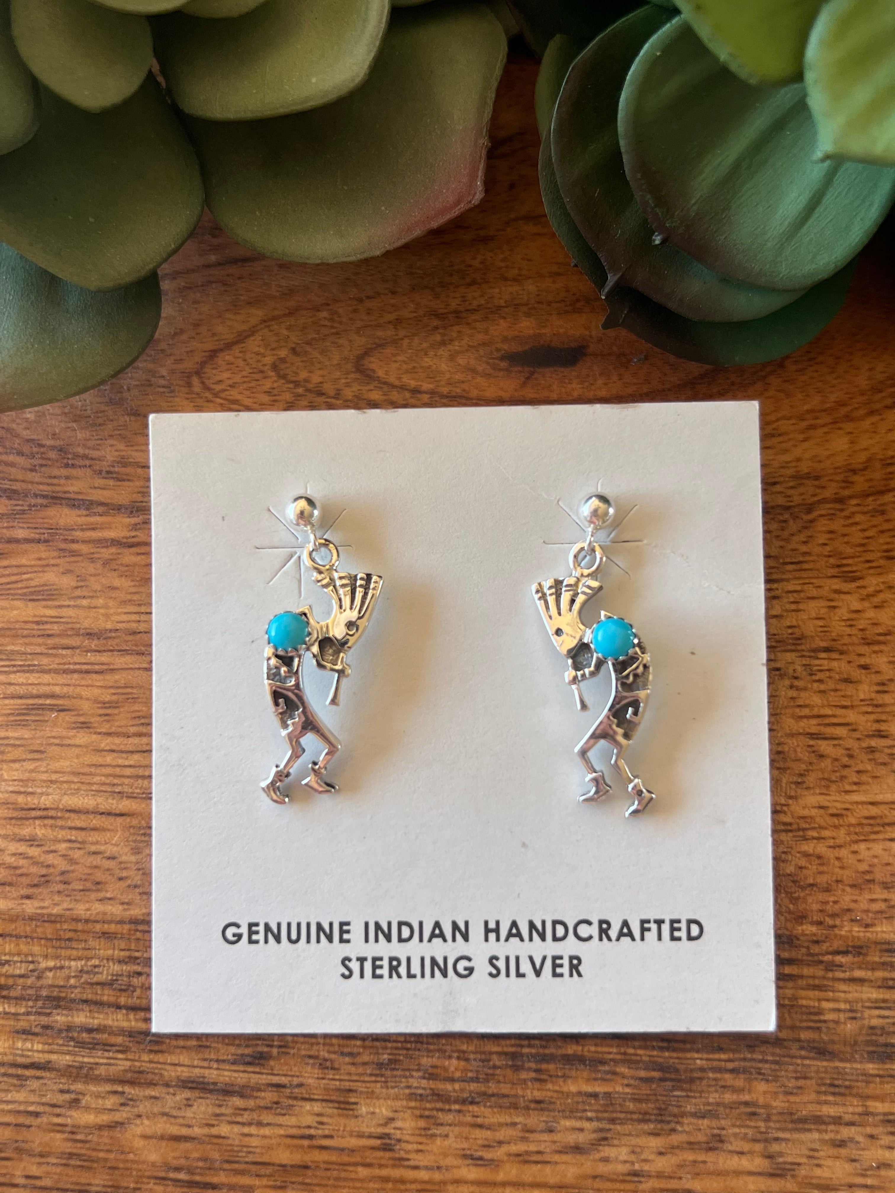 Shirley Henry Kingman Turquoise & Sterling Silver Post Dangle Earrings