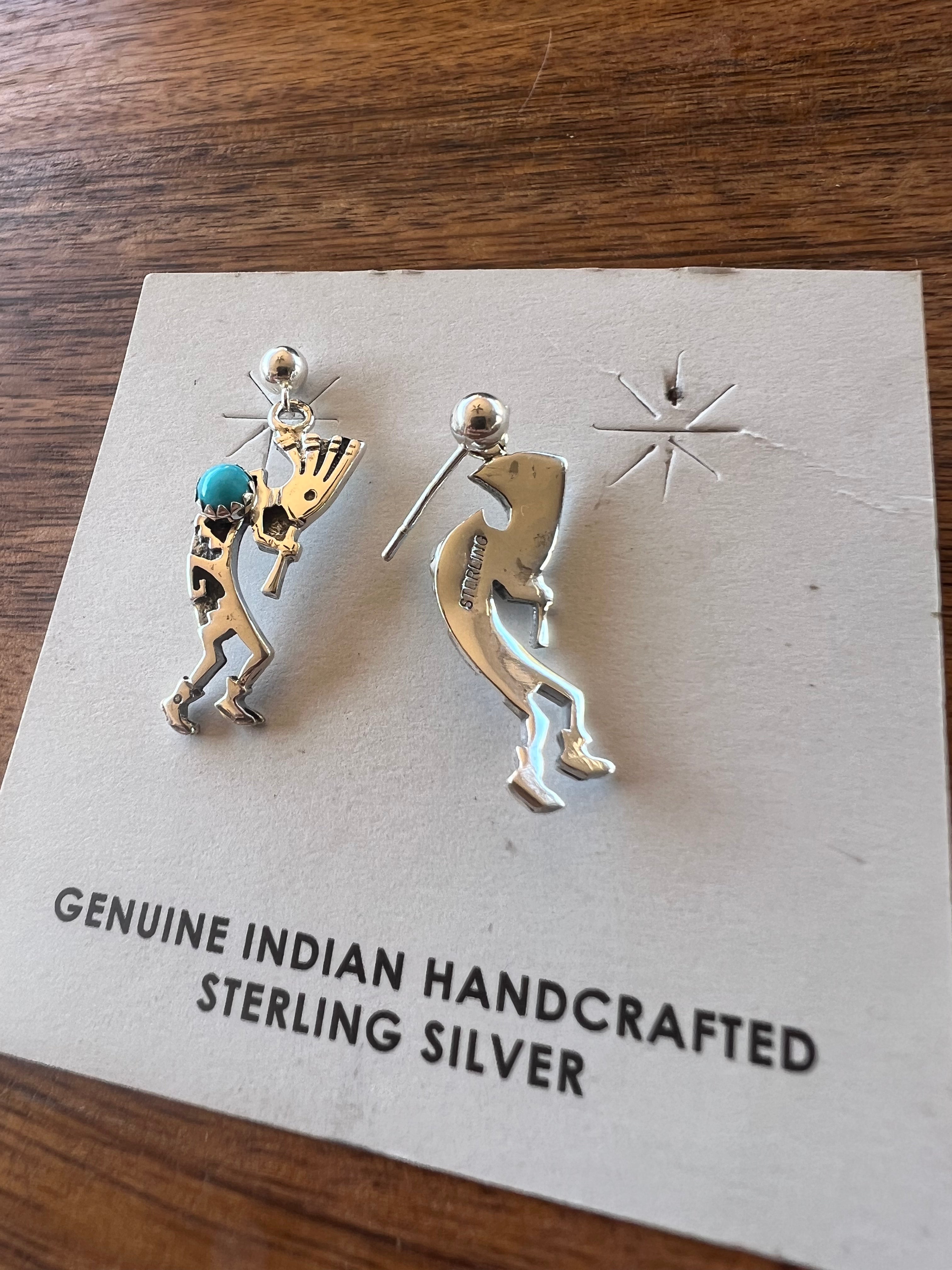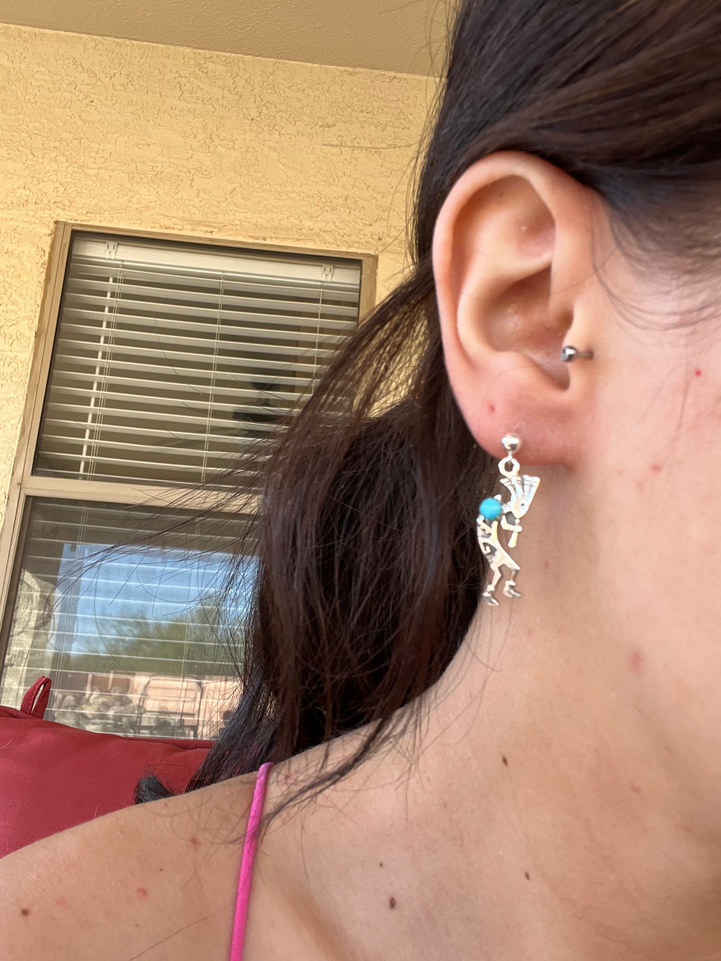 Shirley Henry Kingman Turquoise & Sterling Silver Post Dangle Earrings. It measures 1 1/4 inches long and just over 3/8 of an inch wide. Stamped sterling silver.