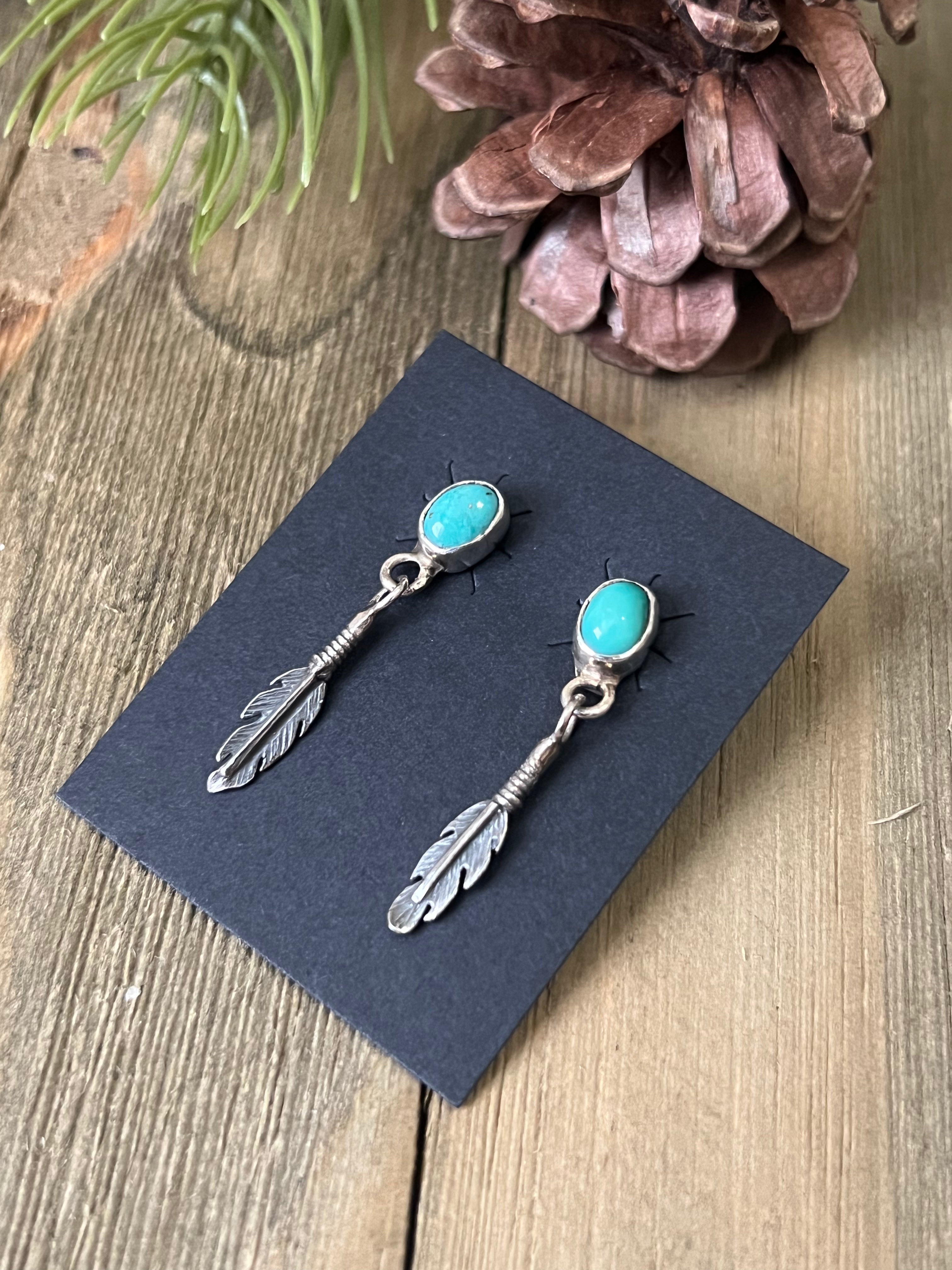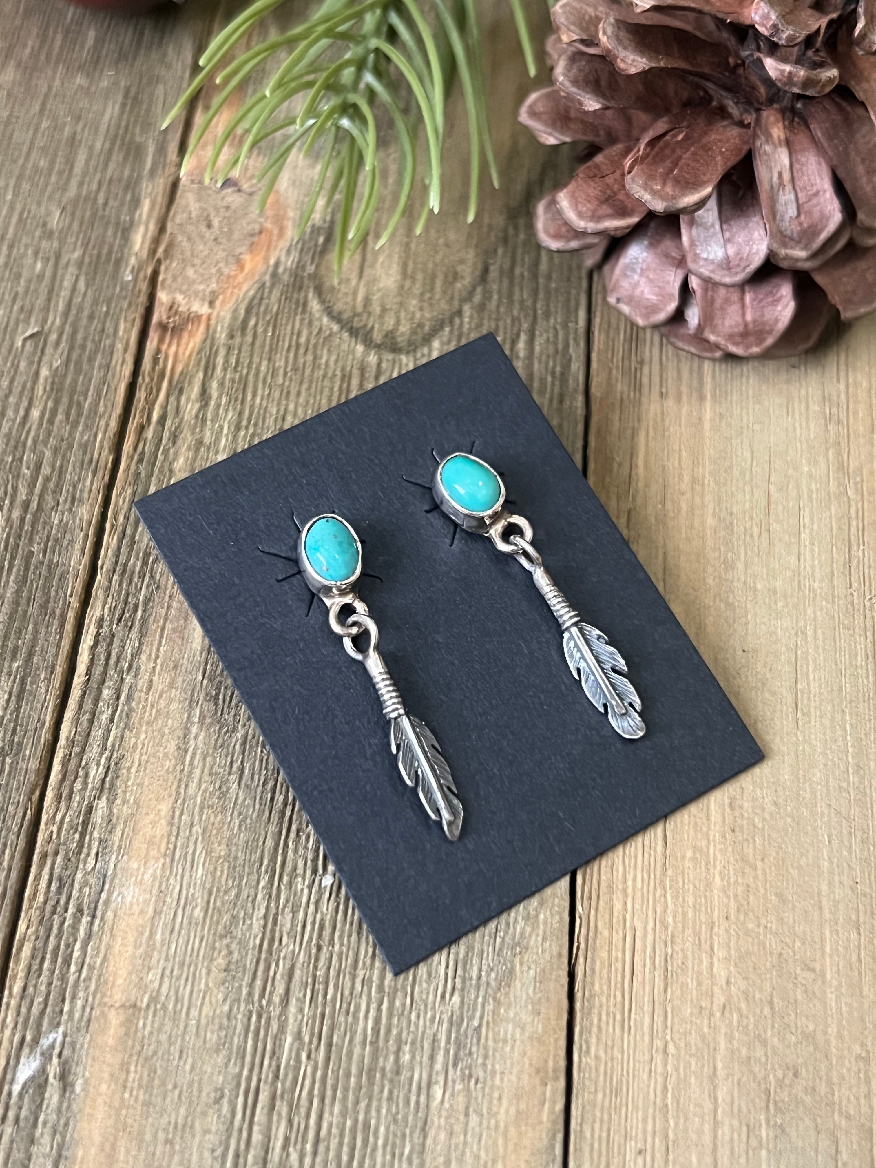 Navajo Made Kingman Turquoise & Sterling Silver Post Dangle Earrings