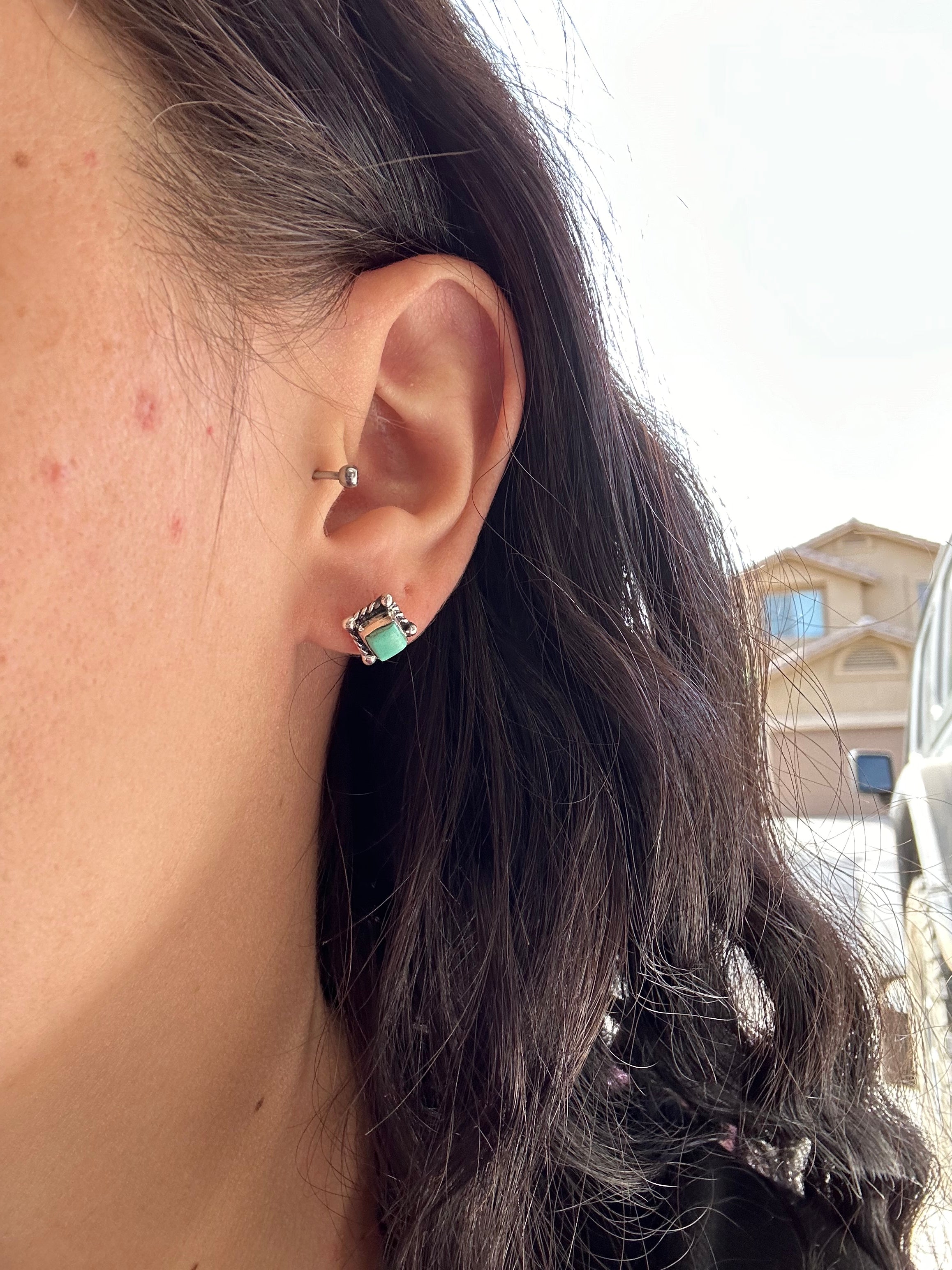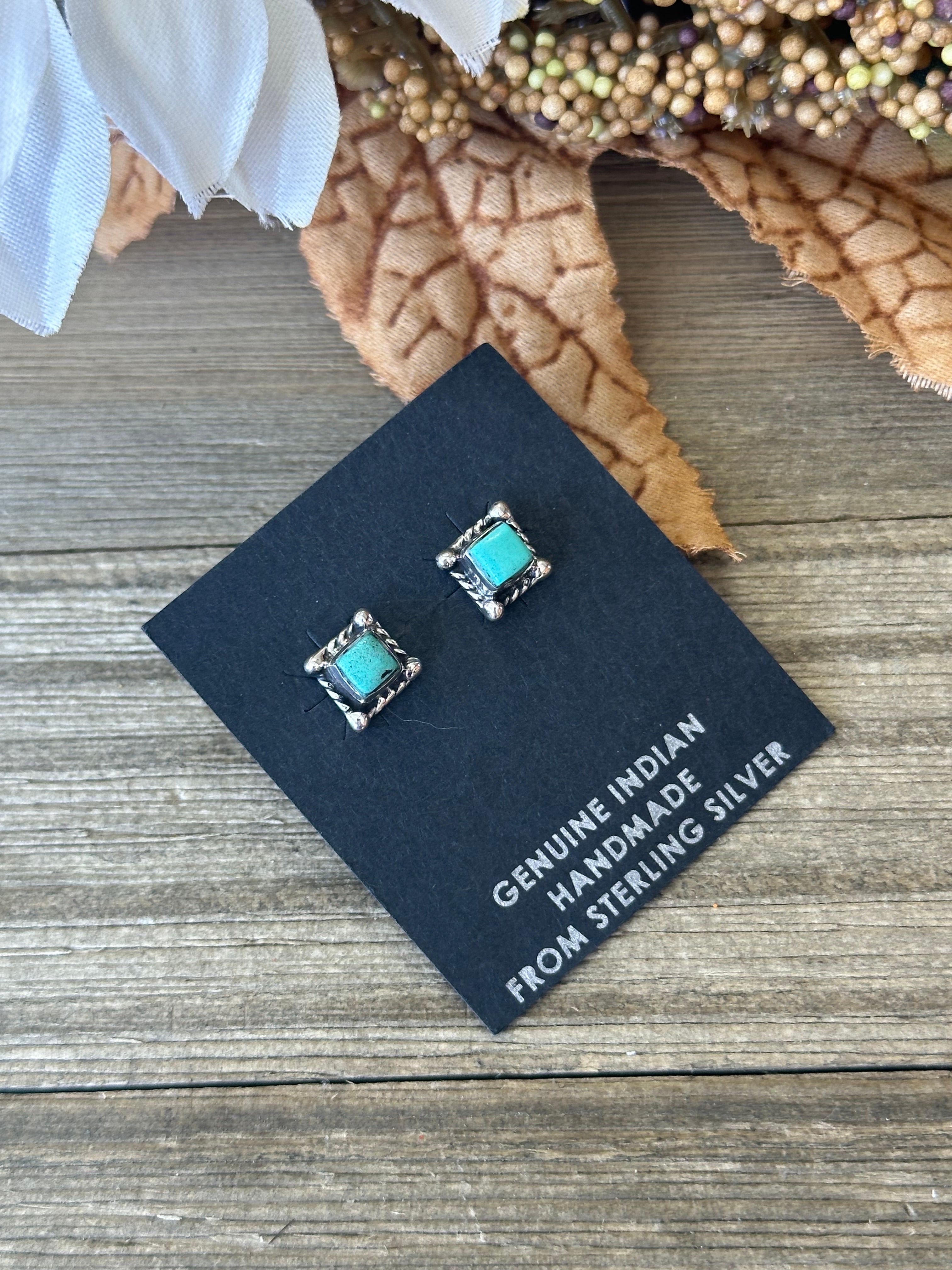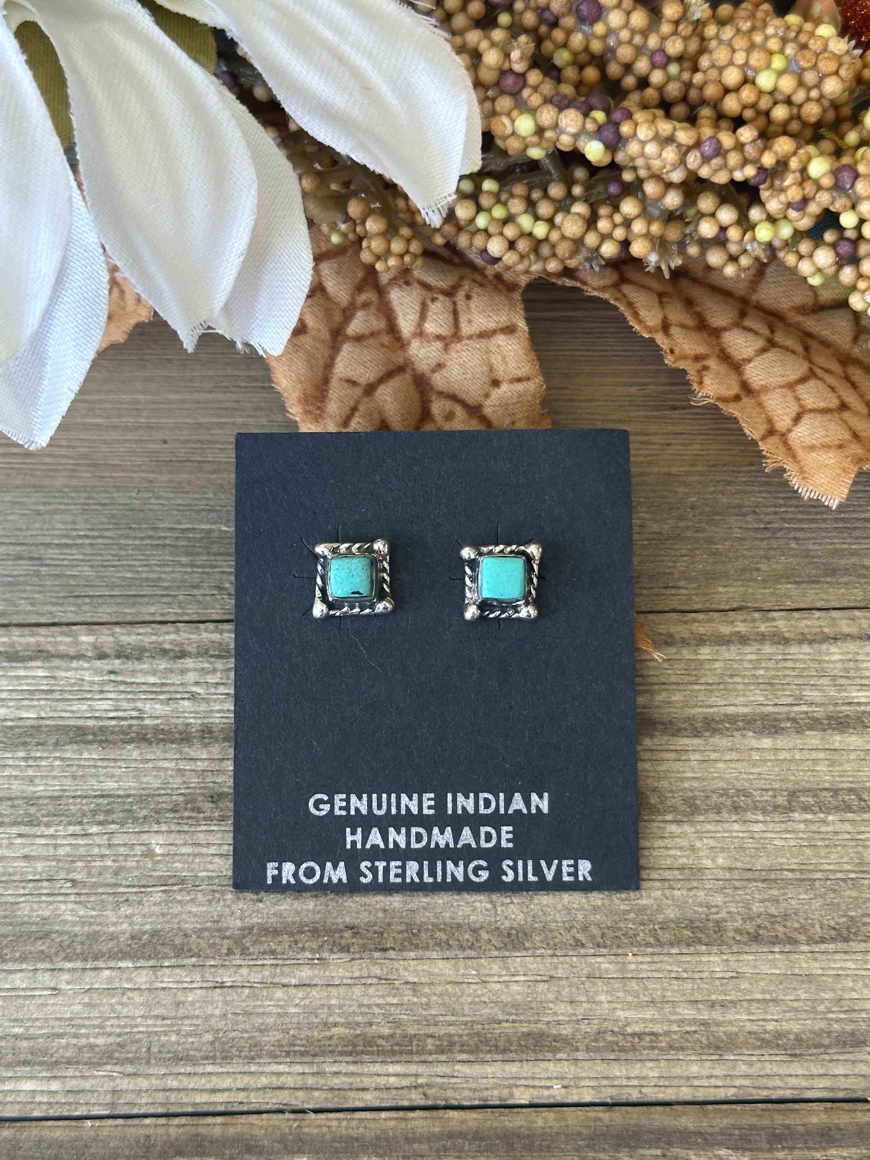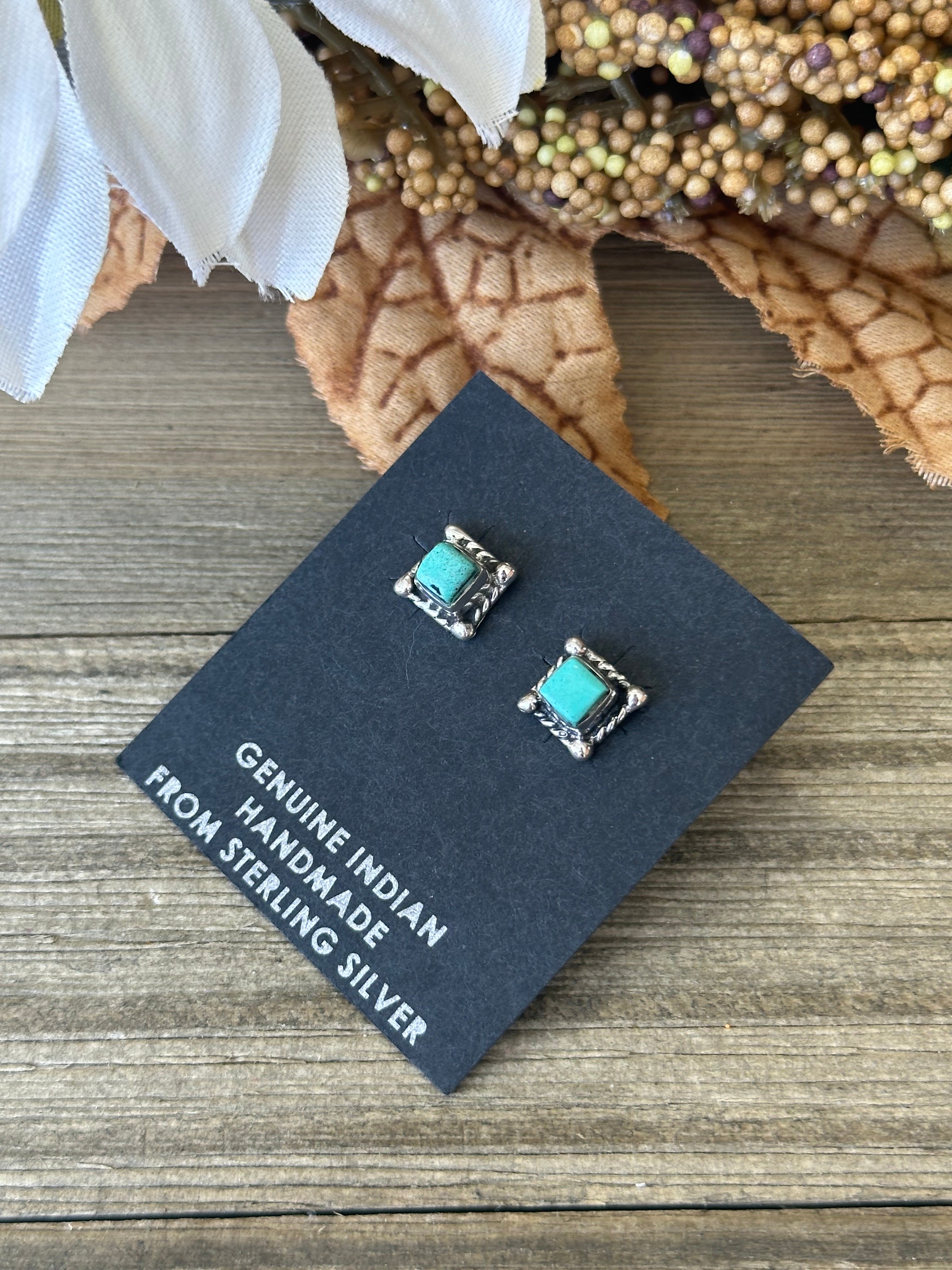 Navajo Made Kingman Turquoise & Sterling Silver Post Earrings