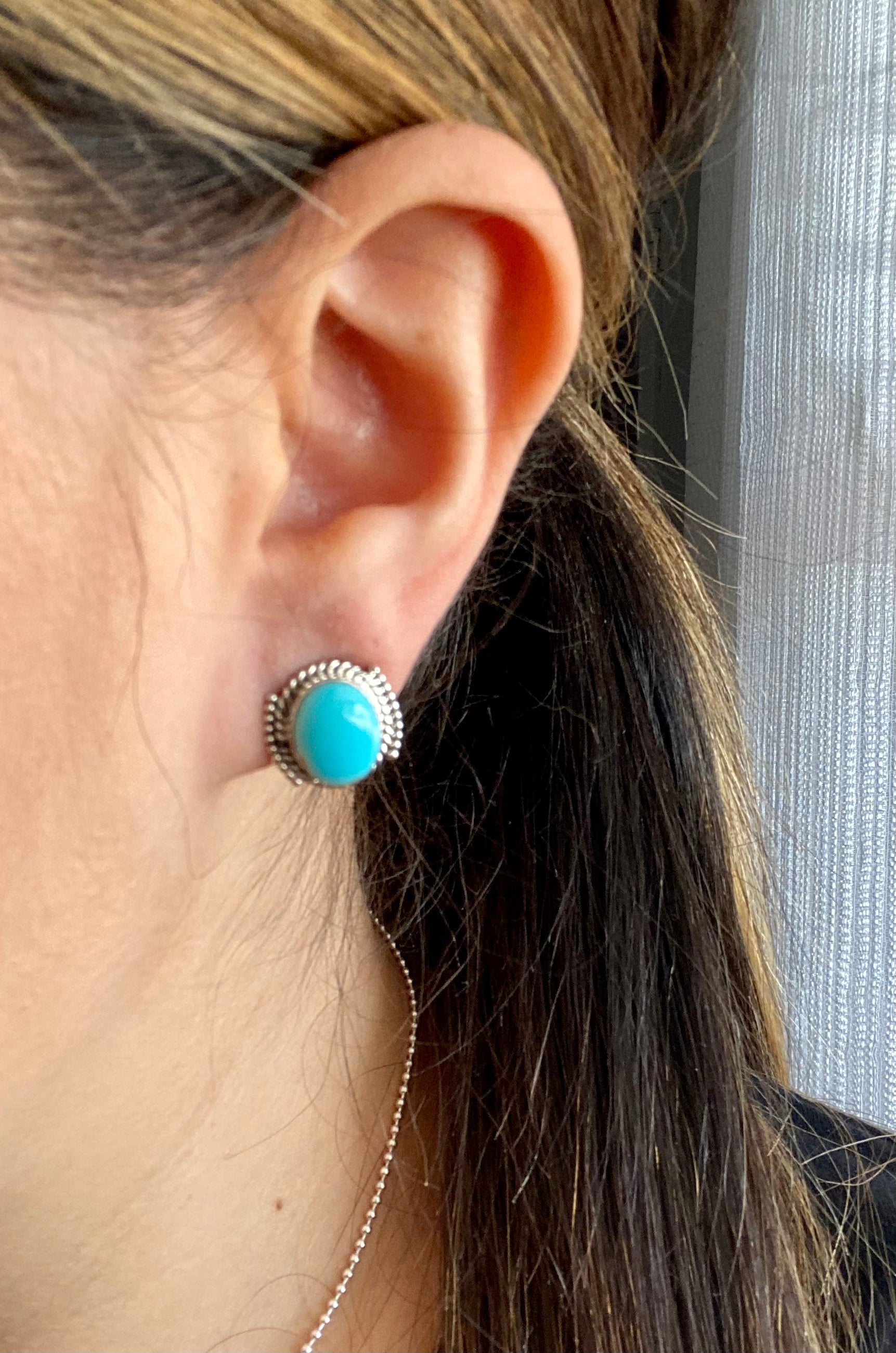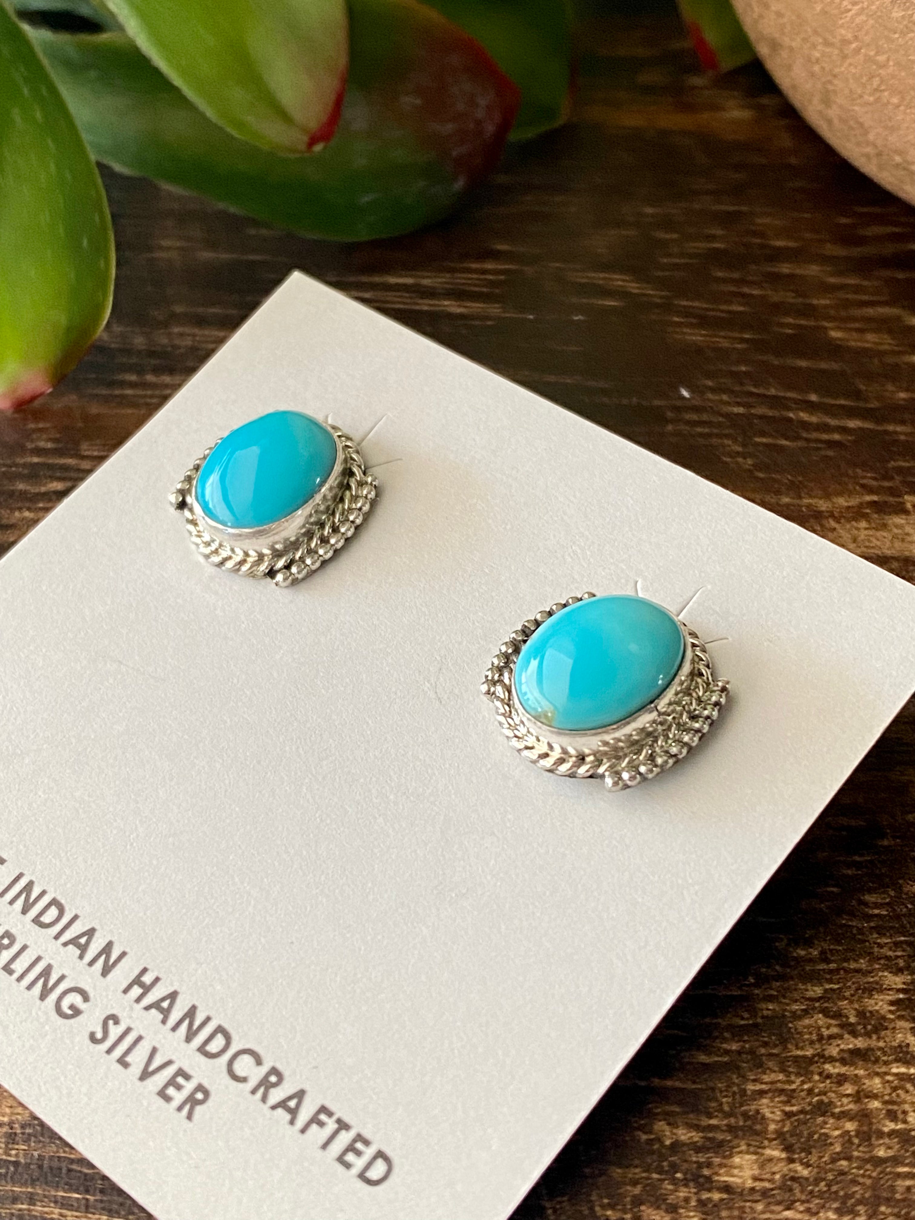 Navajo Made Kingman Turquoise & Sterling Silver Post Earrings