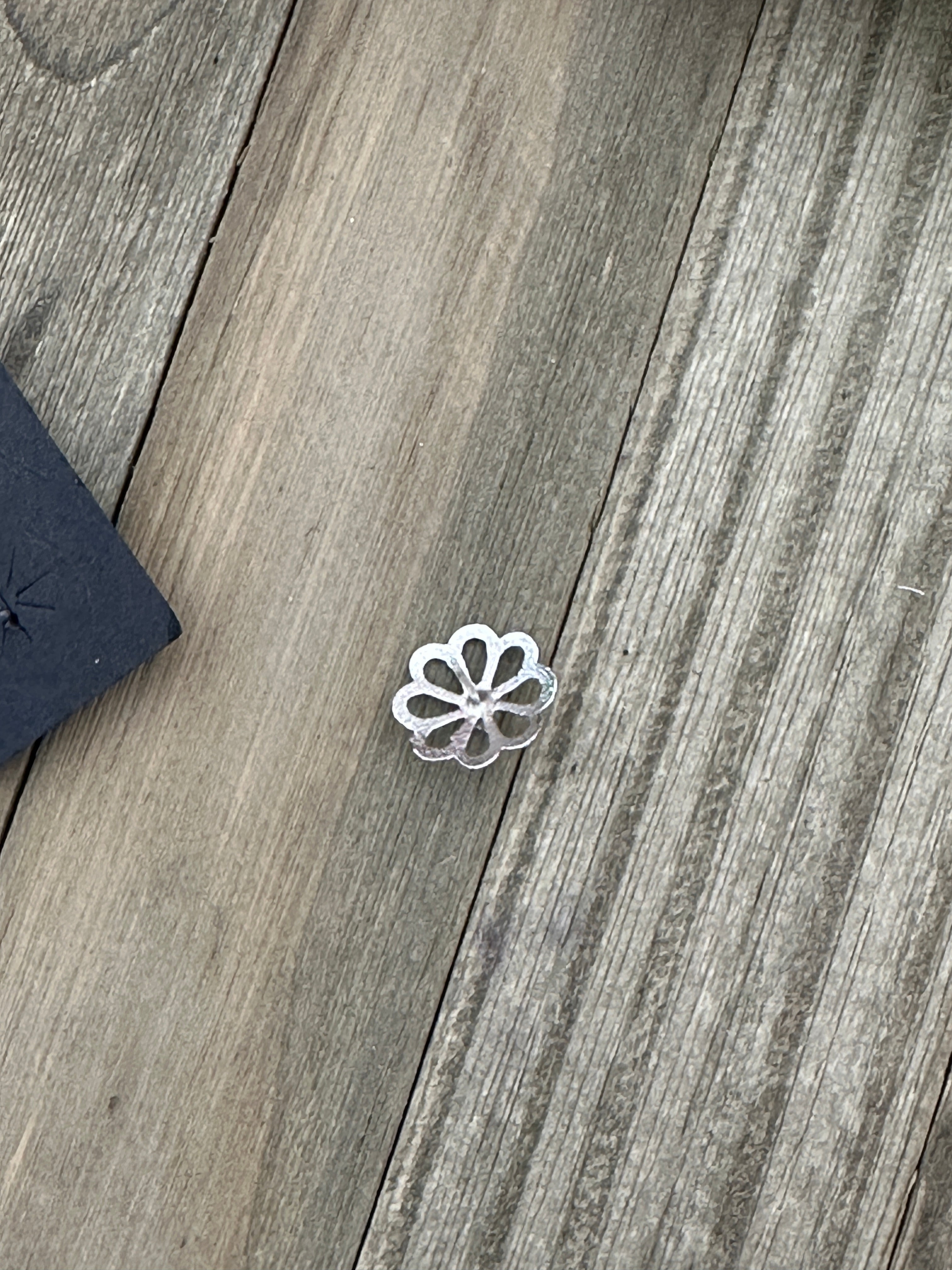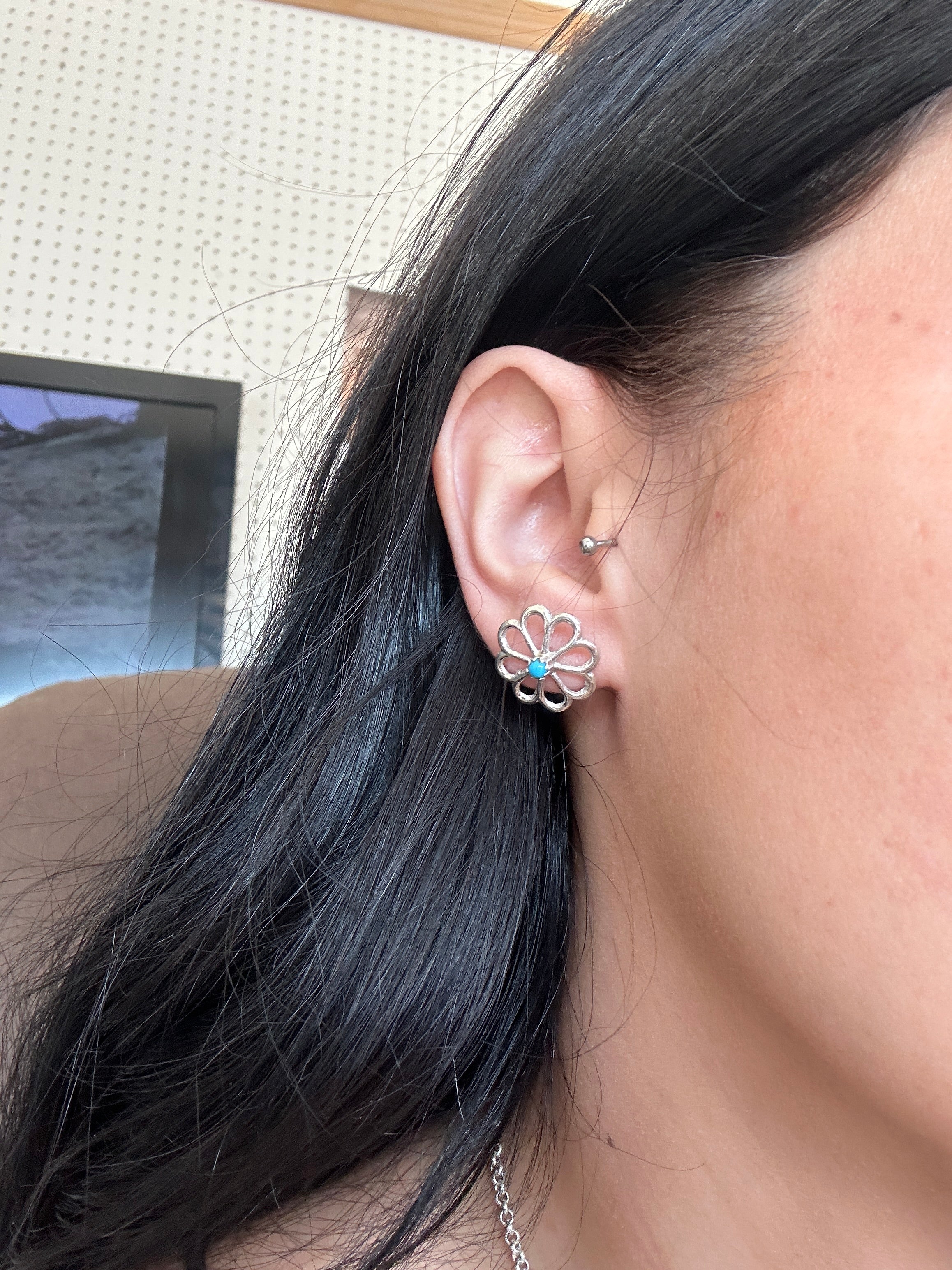 Navajo Made Kingman Turquoise & Sterling Silver Post Flower Earrings. It measures 5/8 of an inch round.