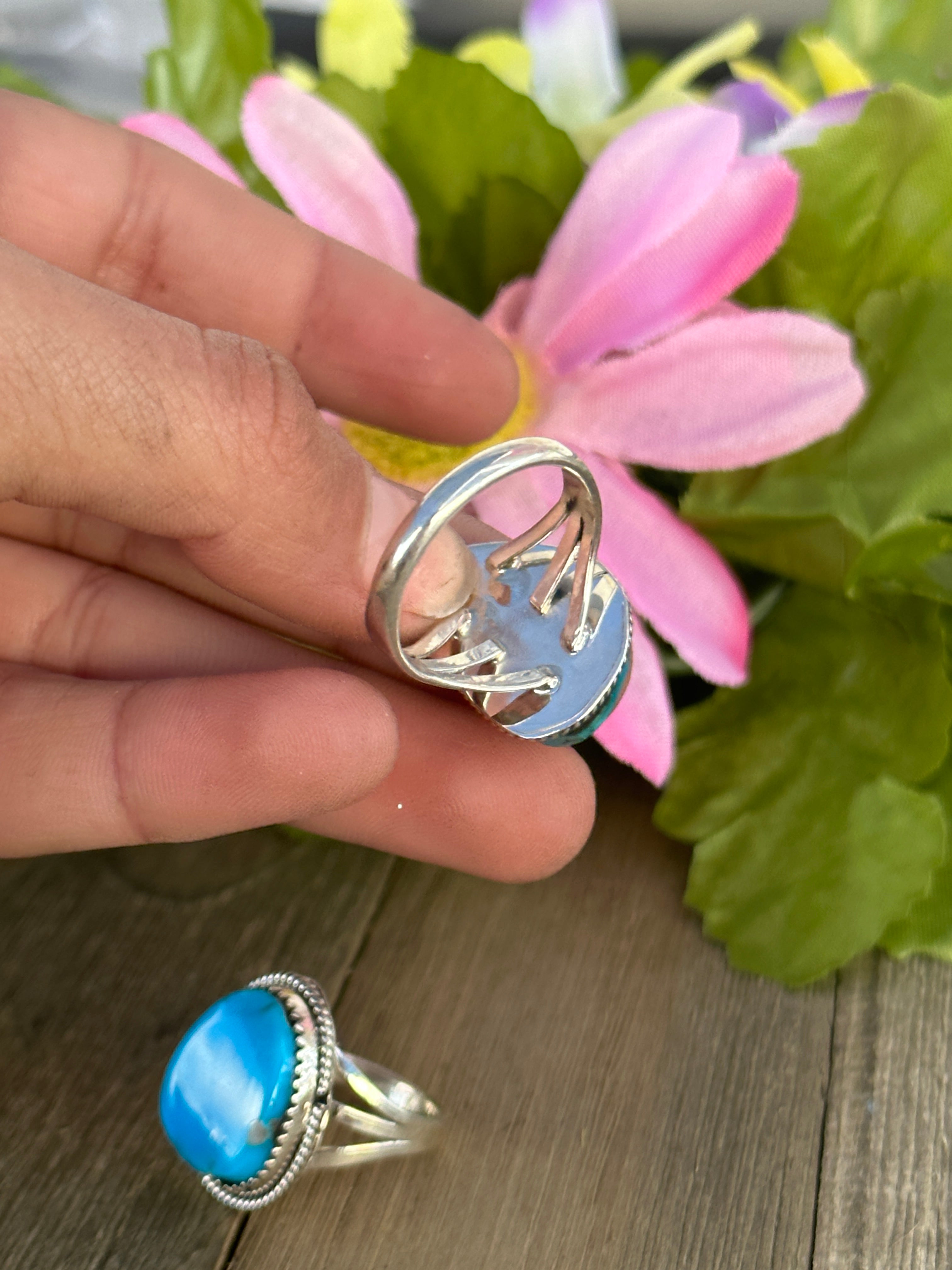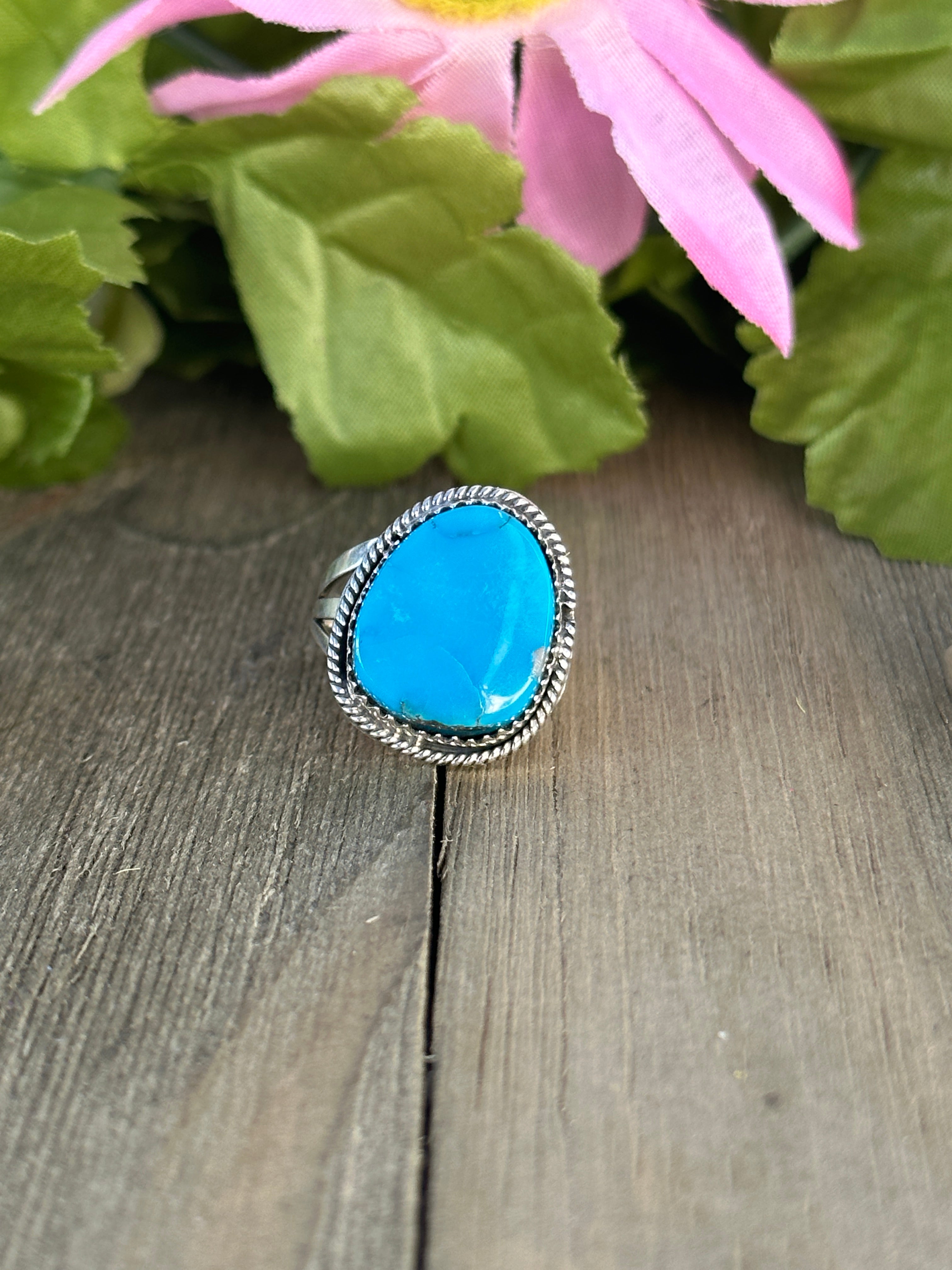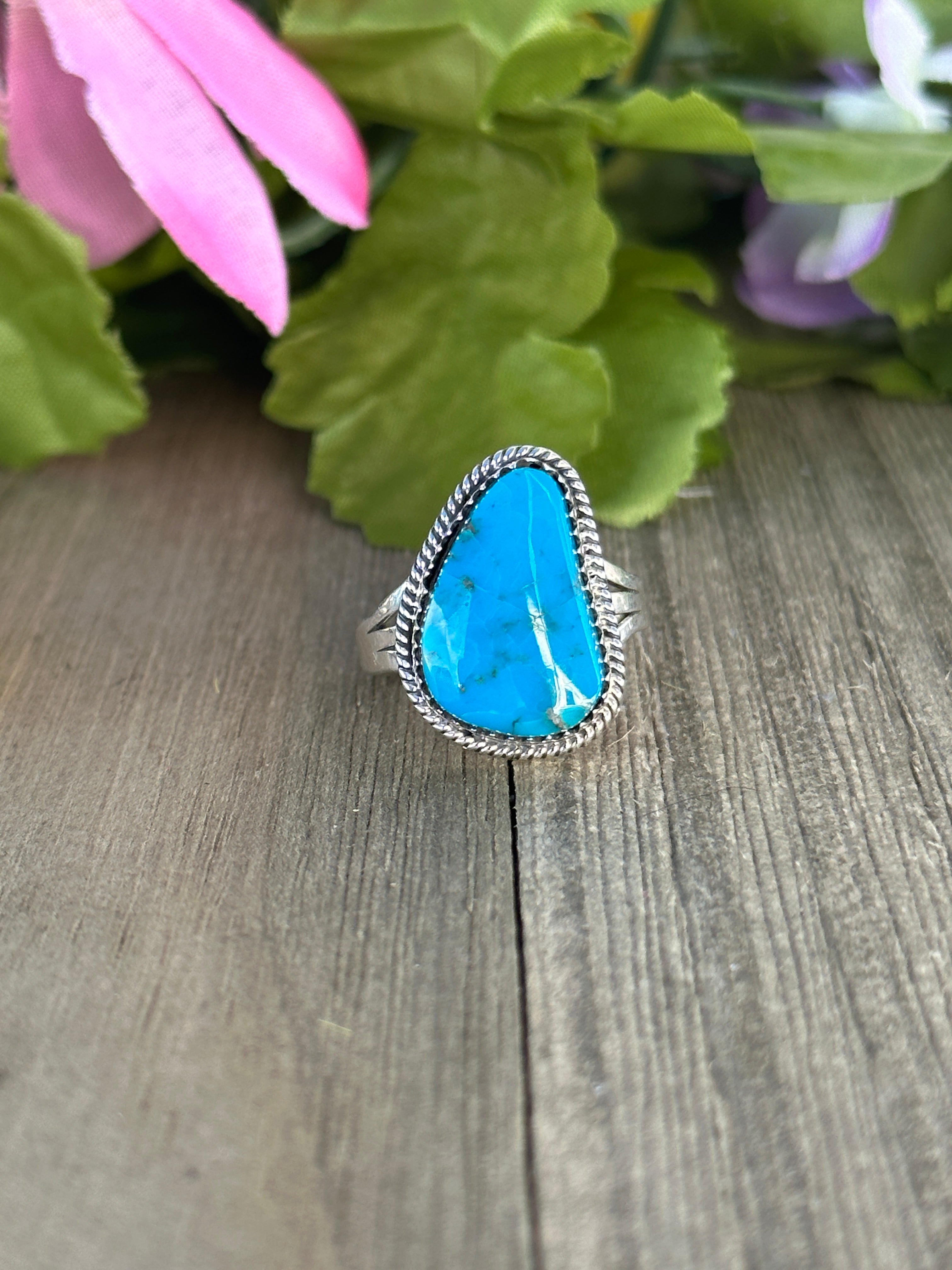Navajo Made Kingman Turquoise & Sterling Silver Ring