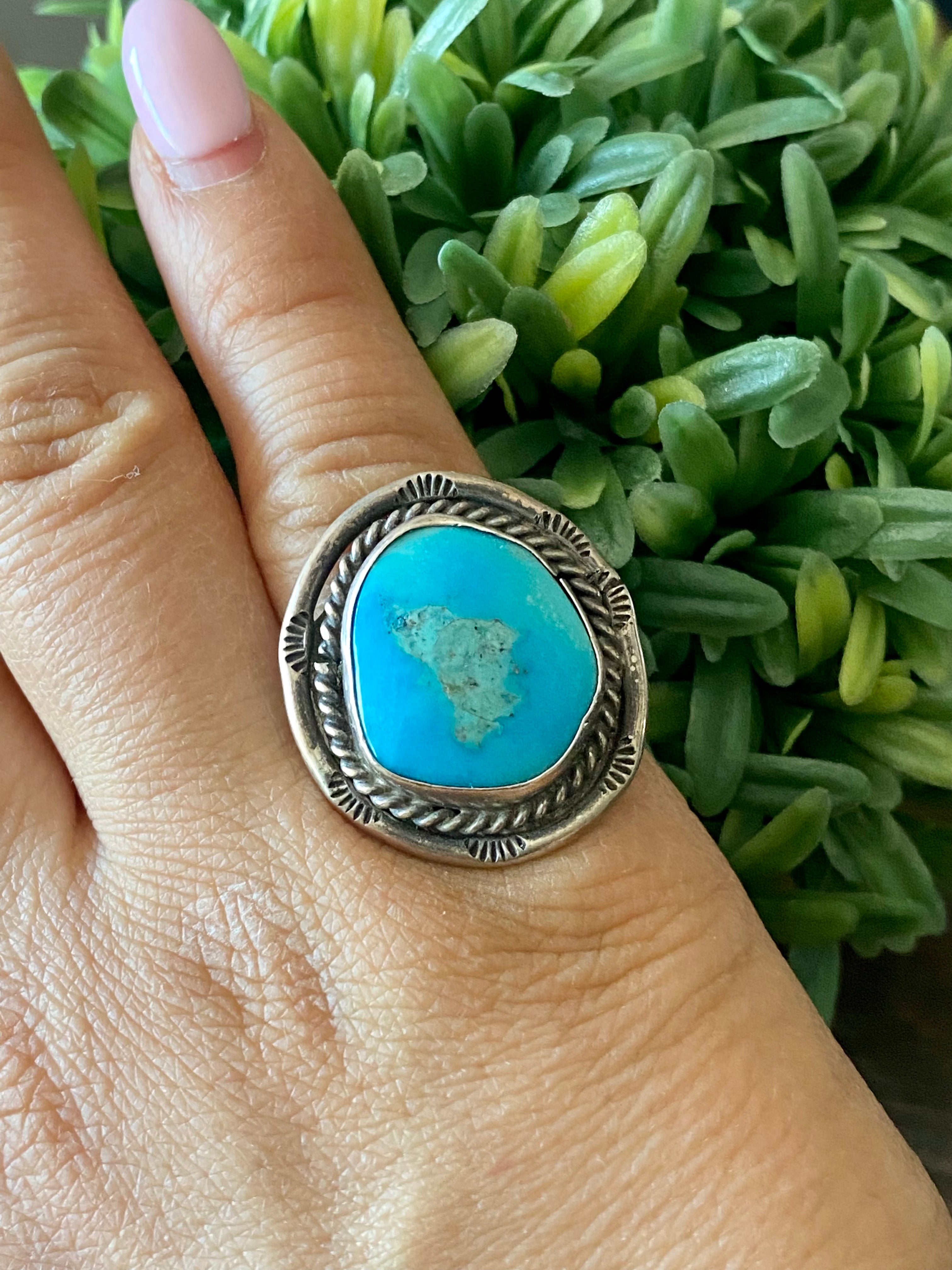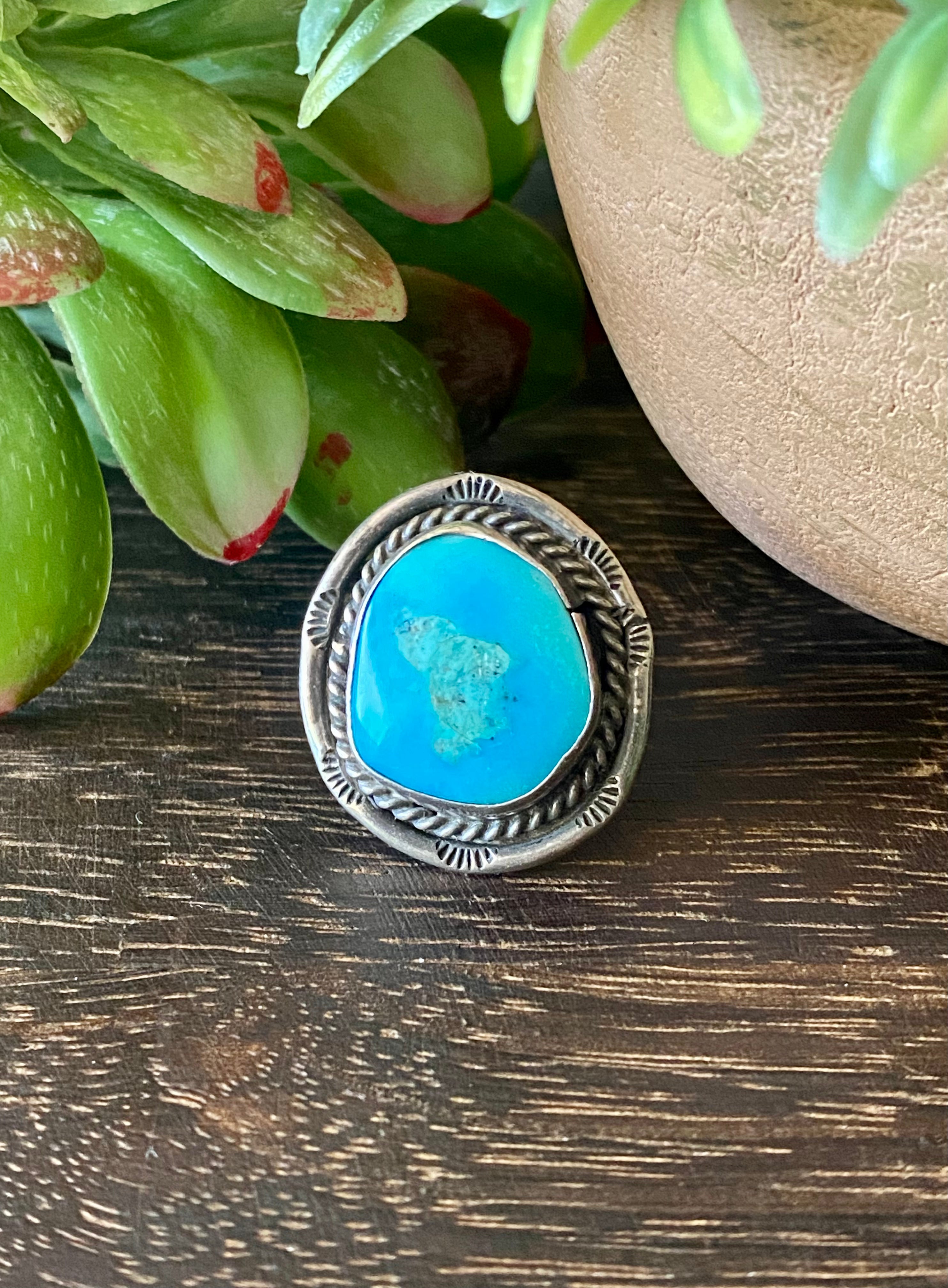 Navajo Made Kingman Turquoise & Sterling Silver Ring Size 7