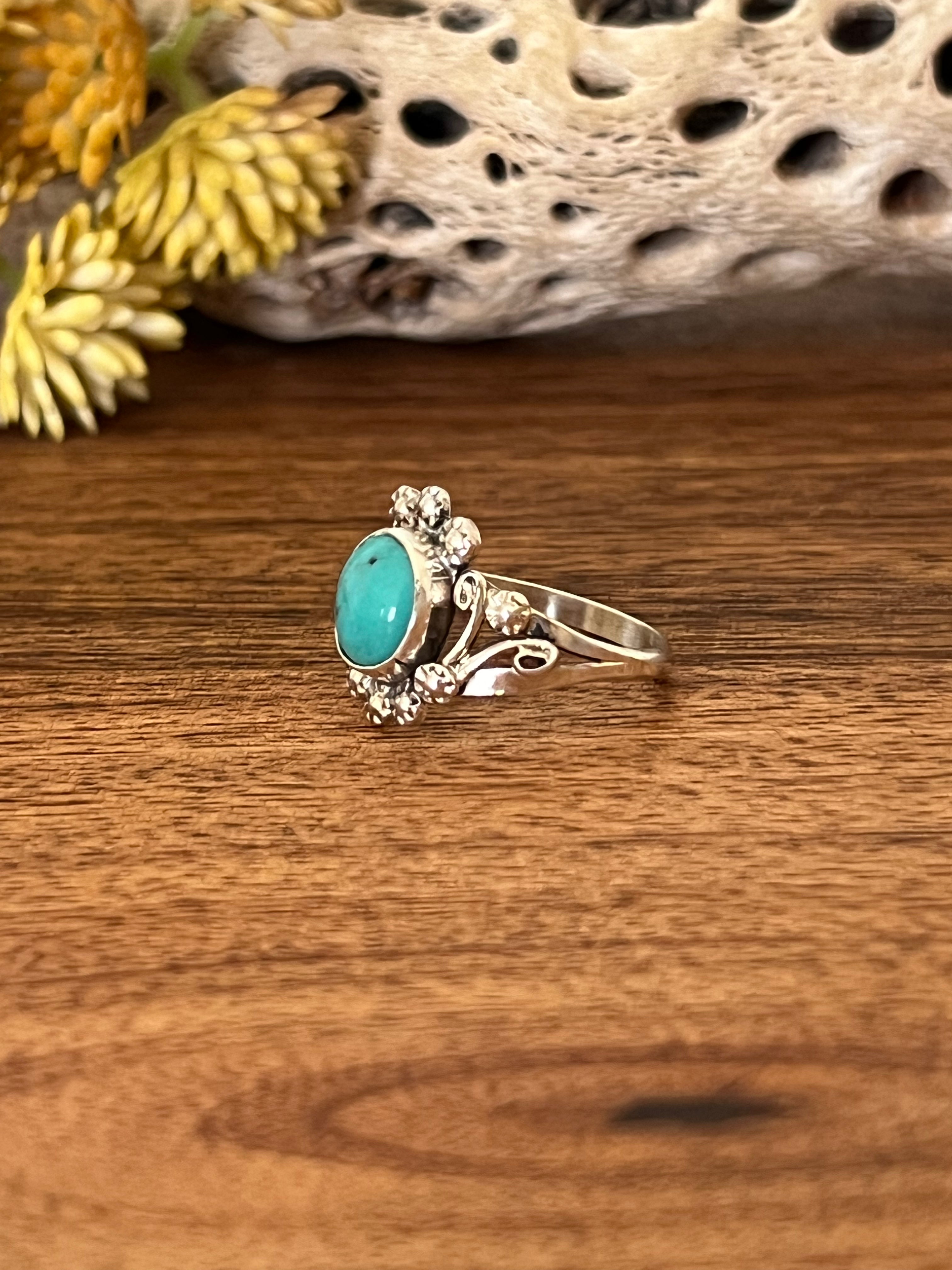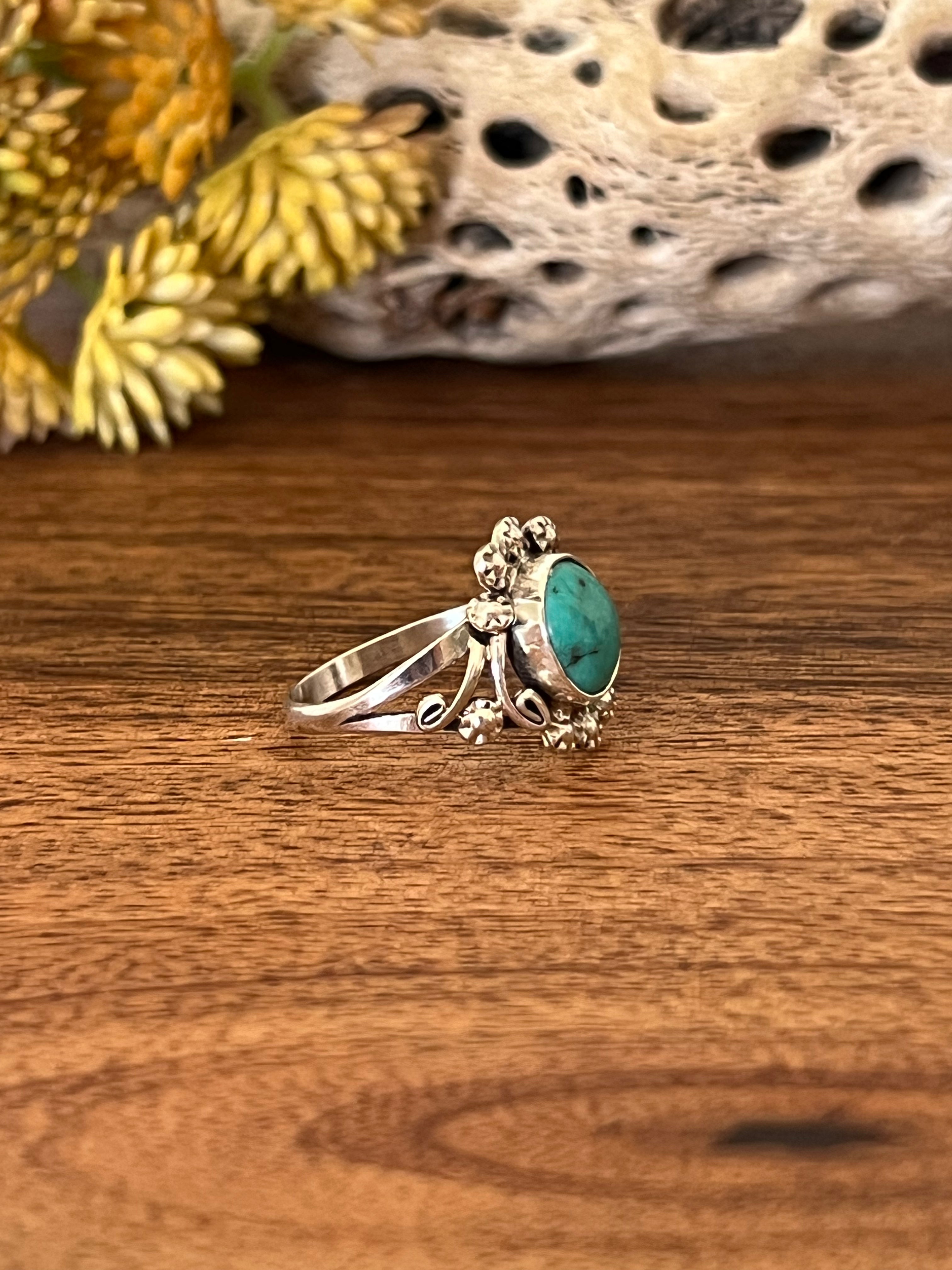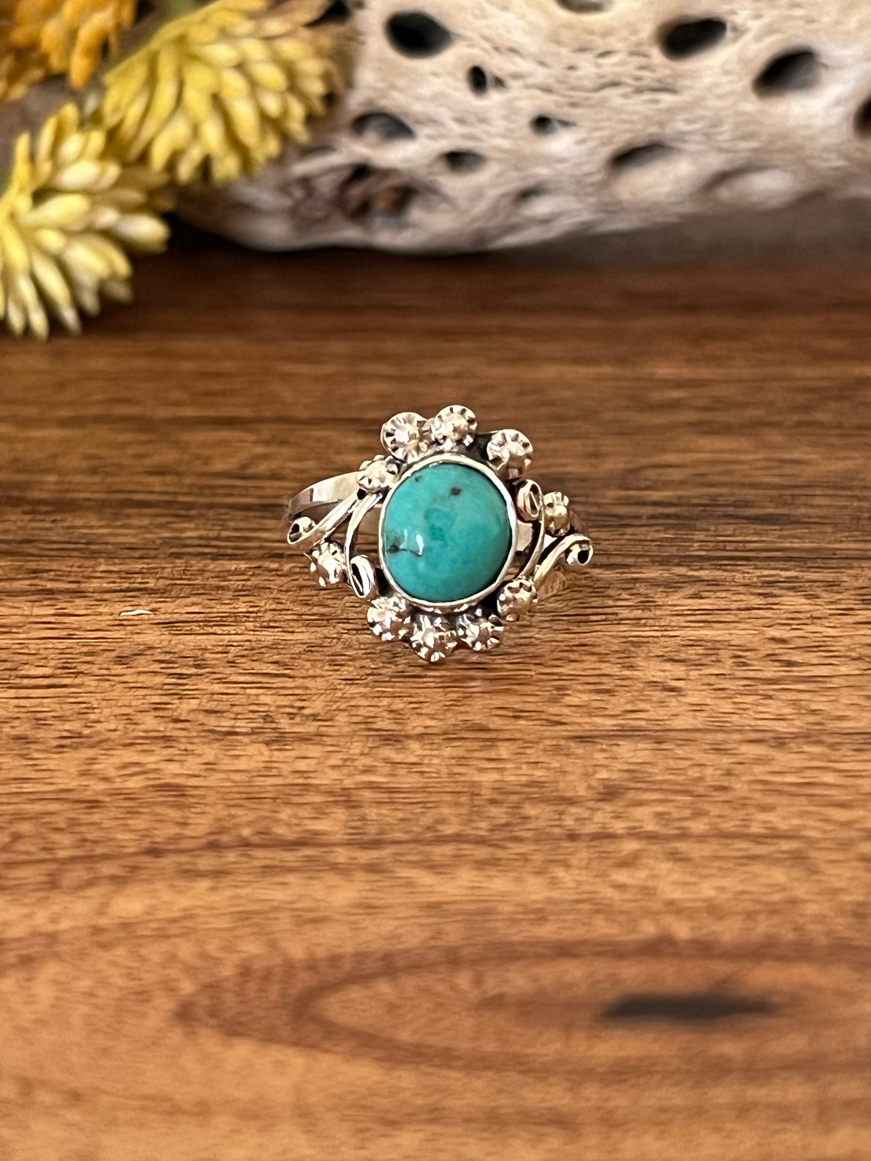 Navajo Made Kingman Turquoise & Sterling Silver Ring Size 9