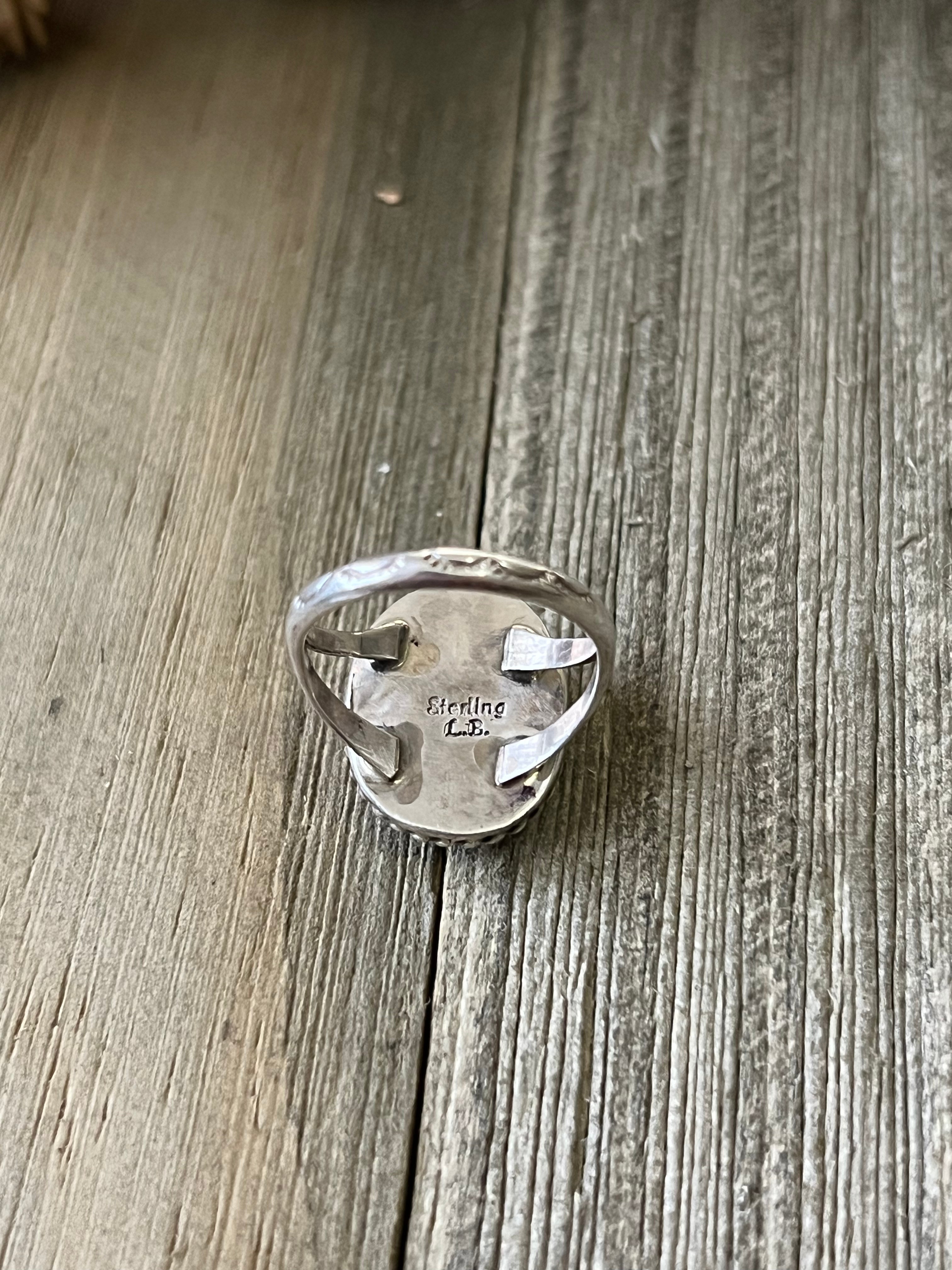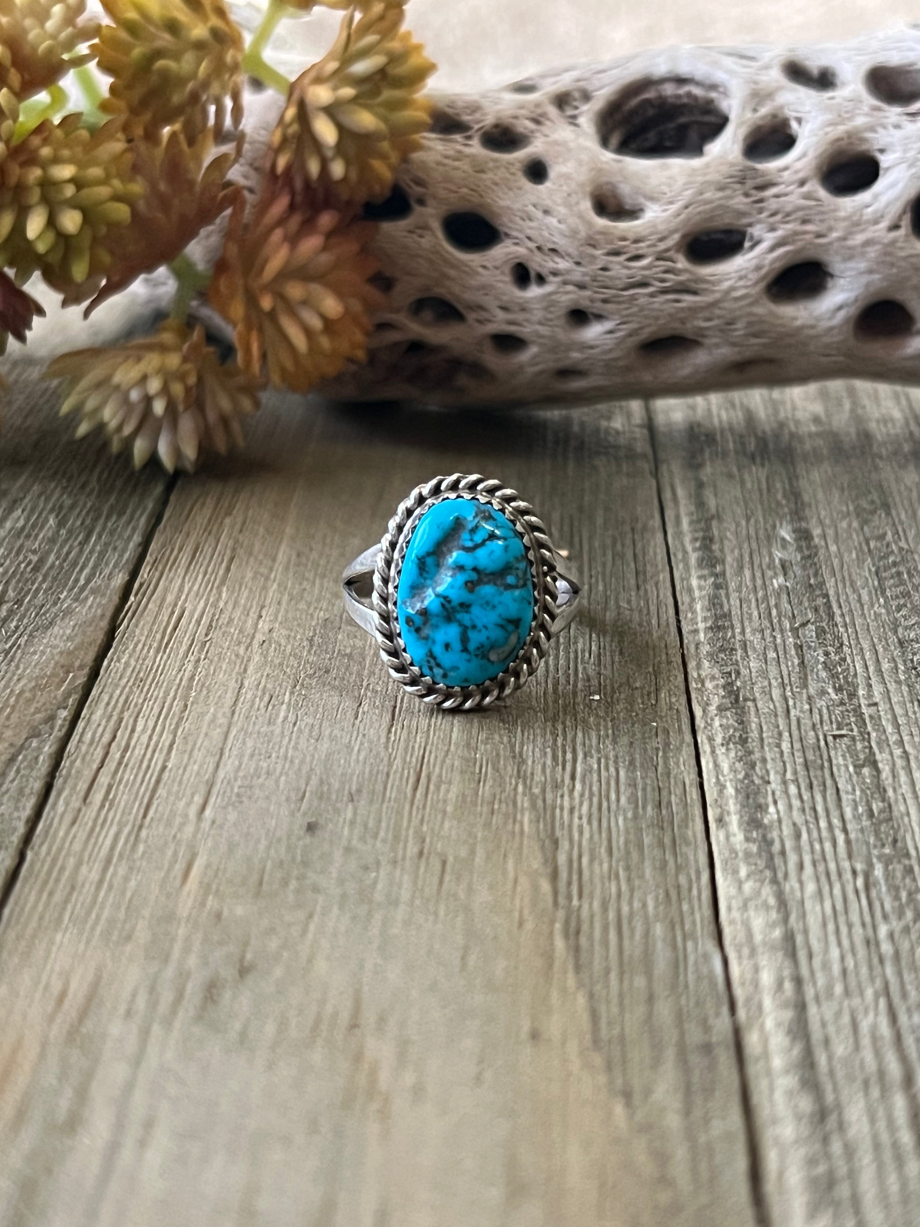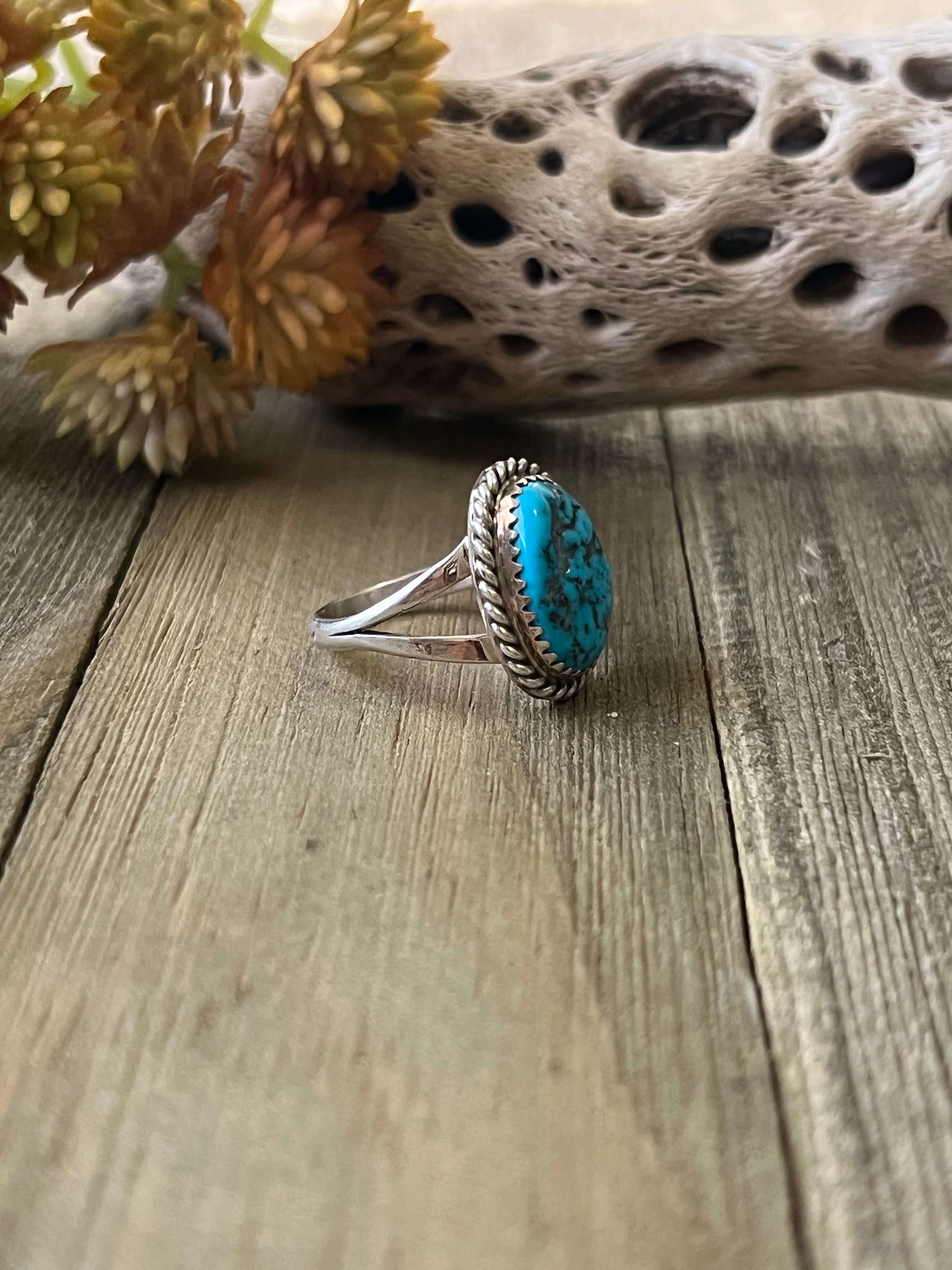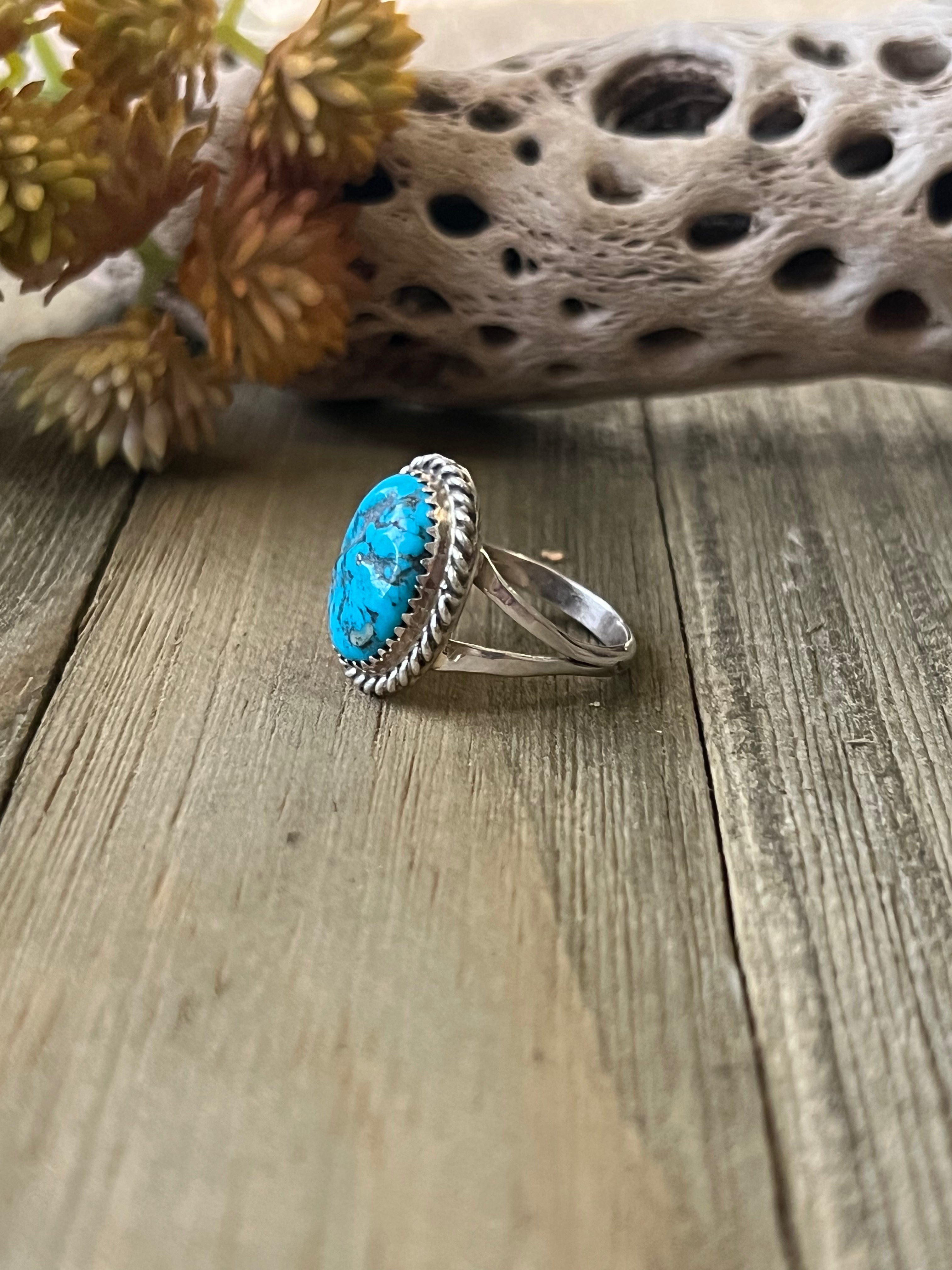 Navajo Made Kingman Turquoise & Sterling Silver Ring Size 8