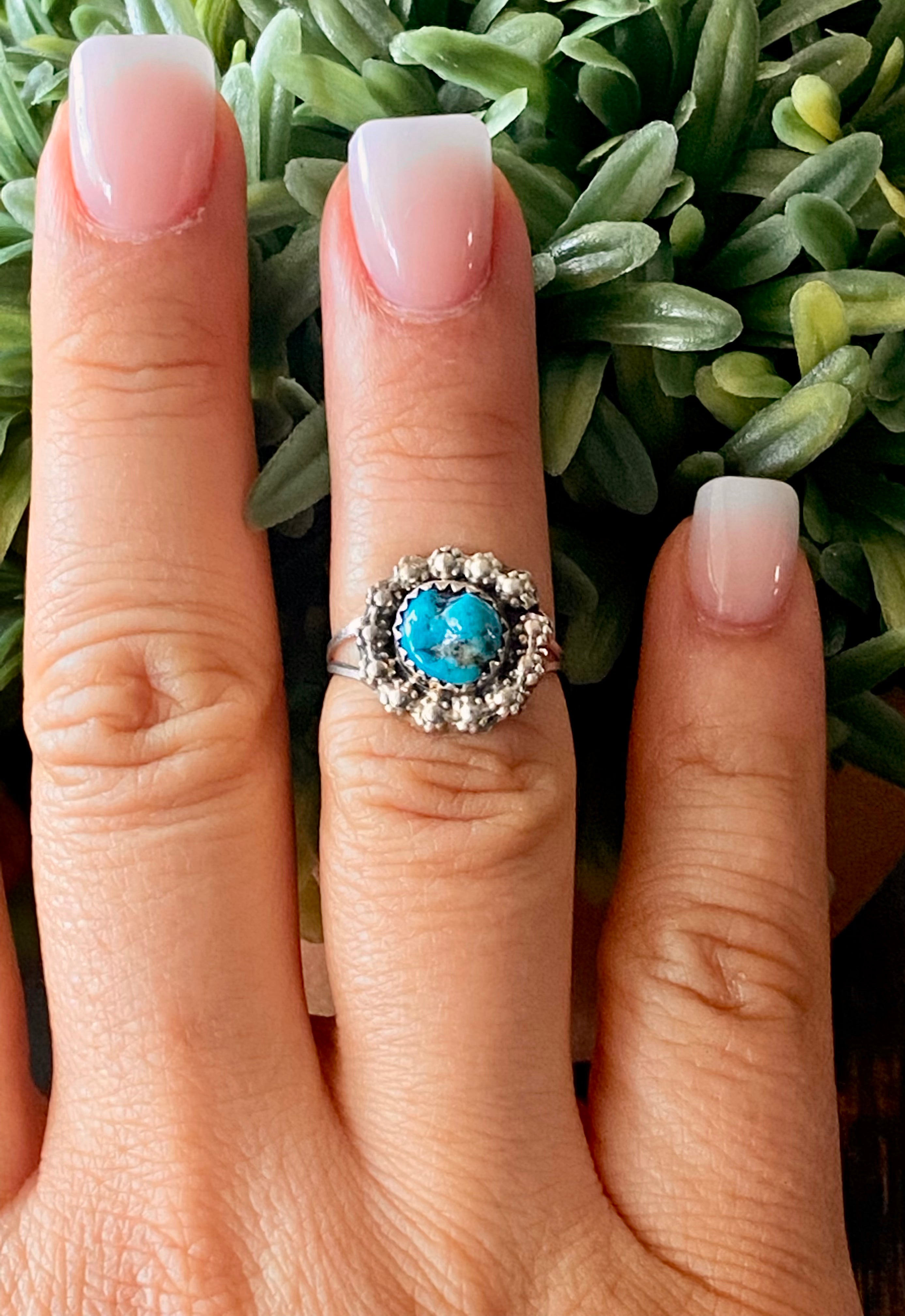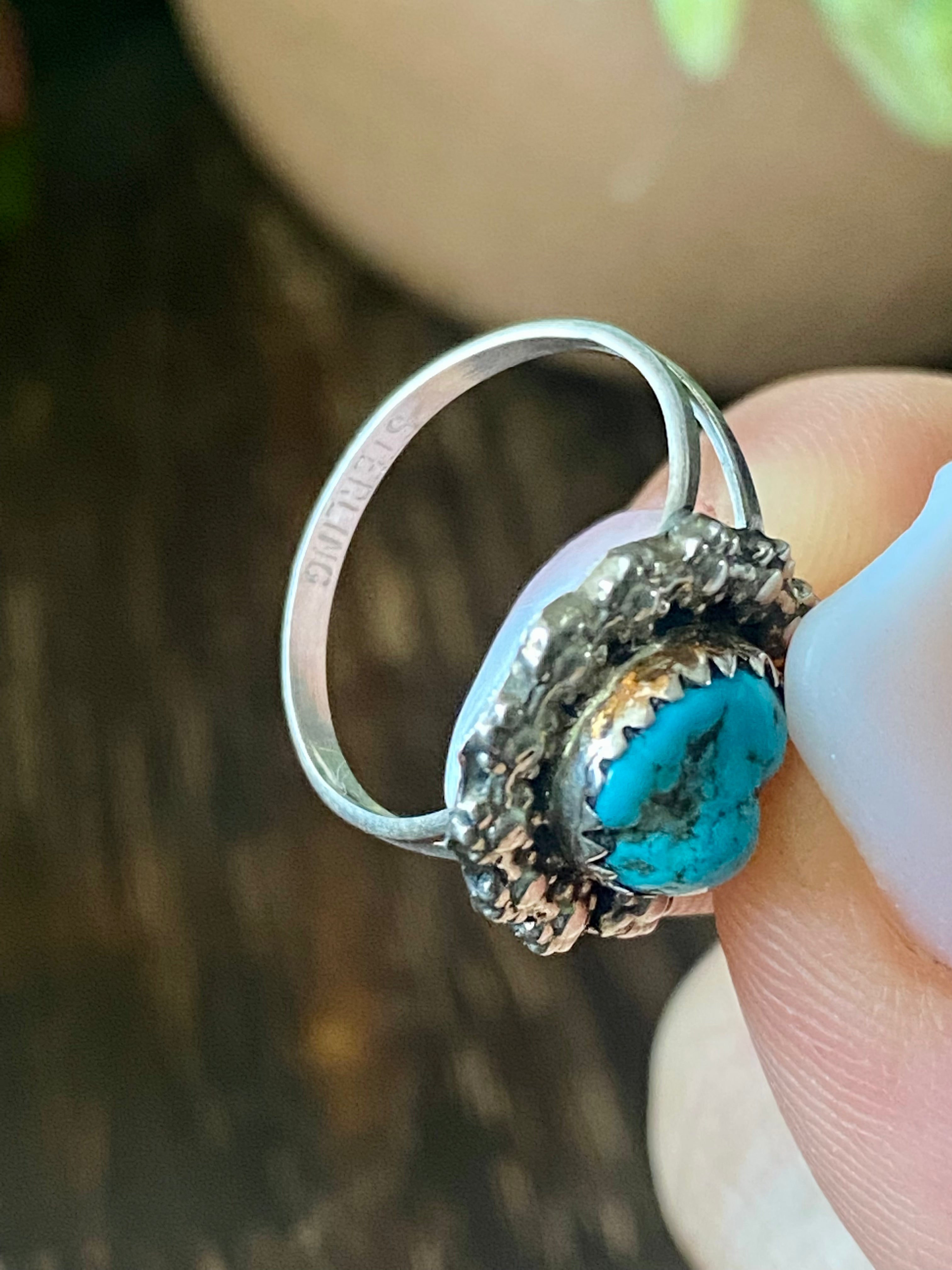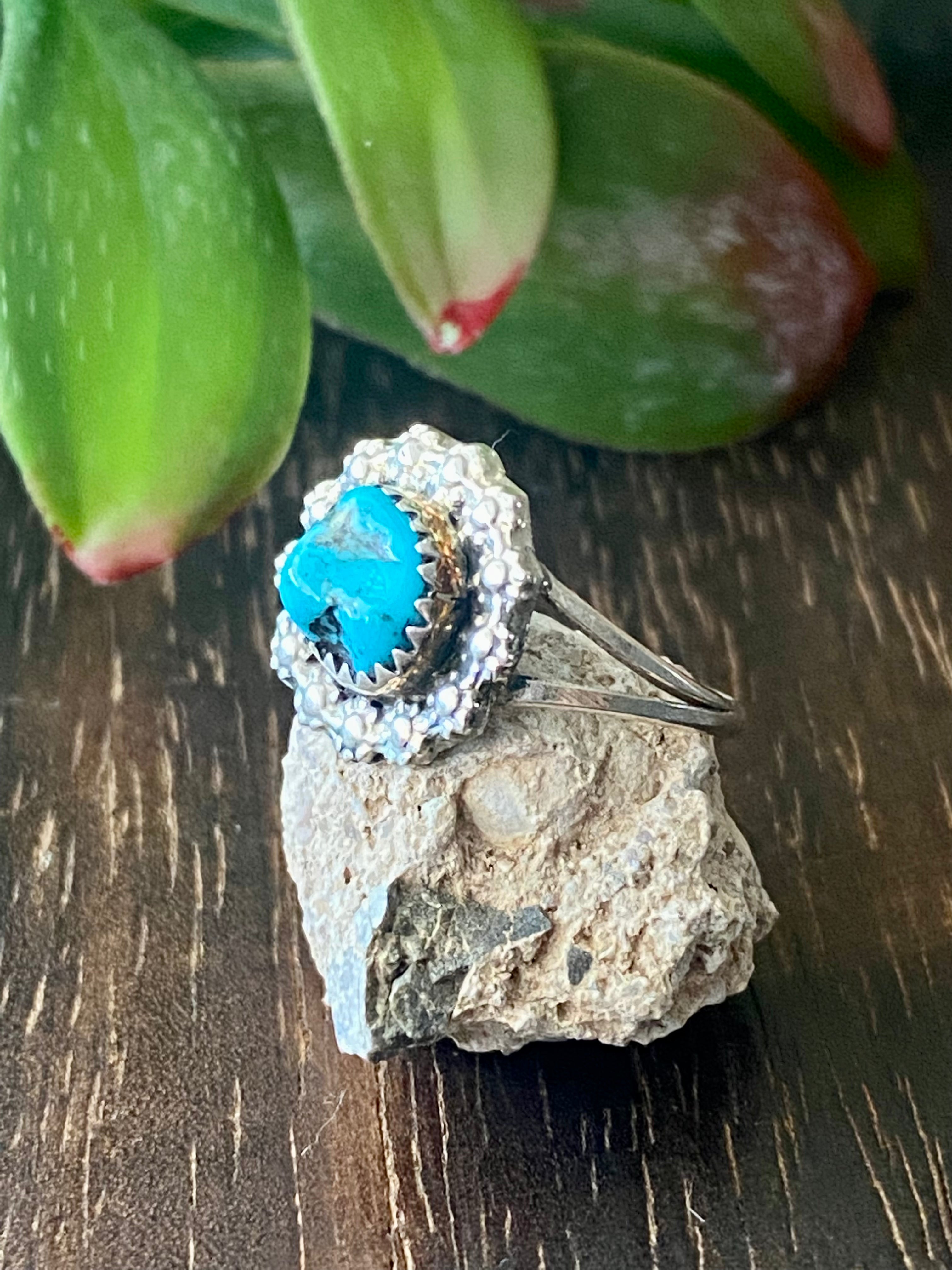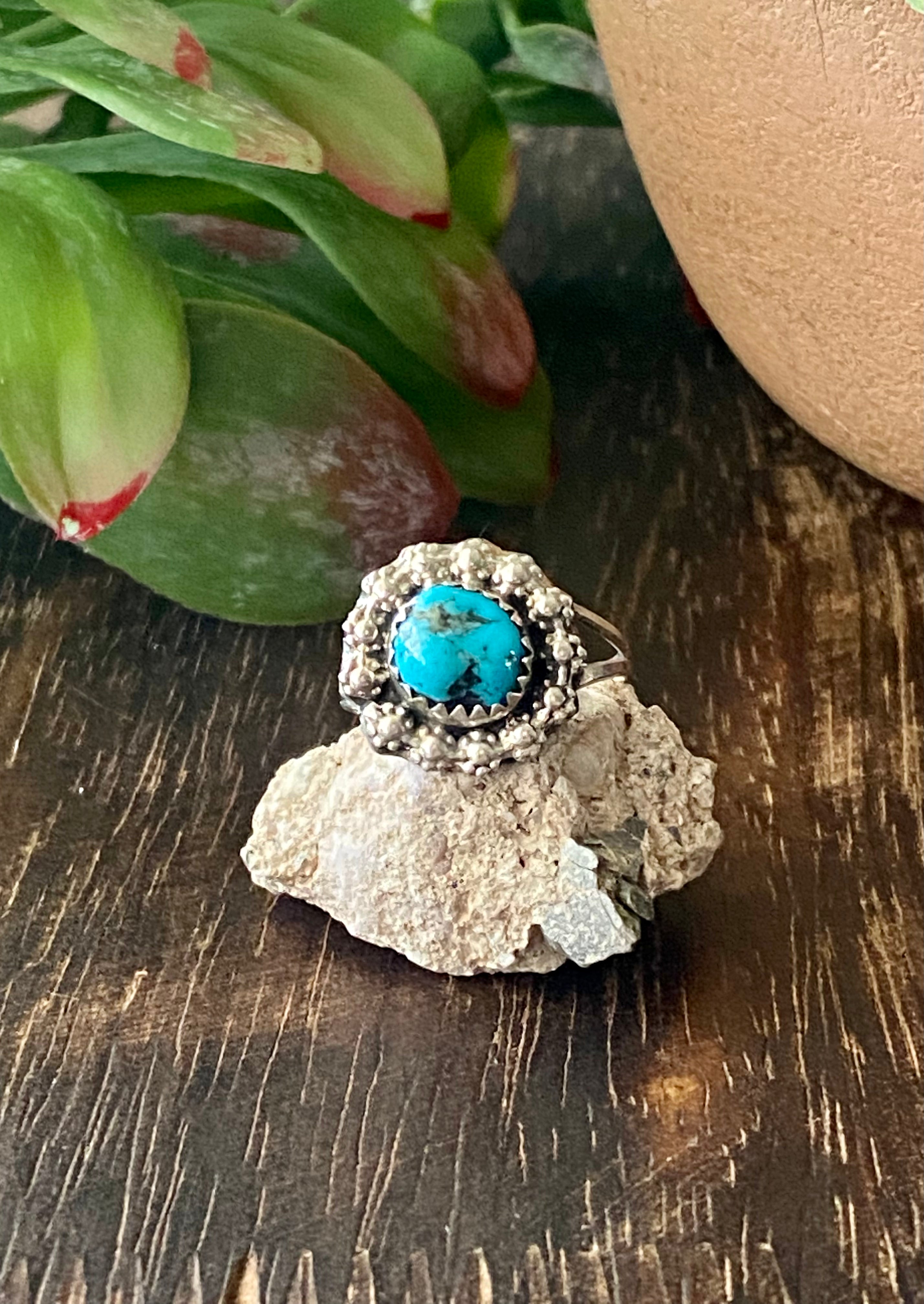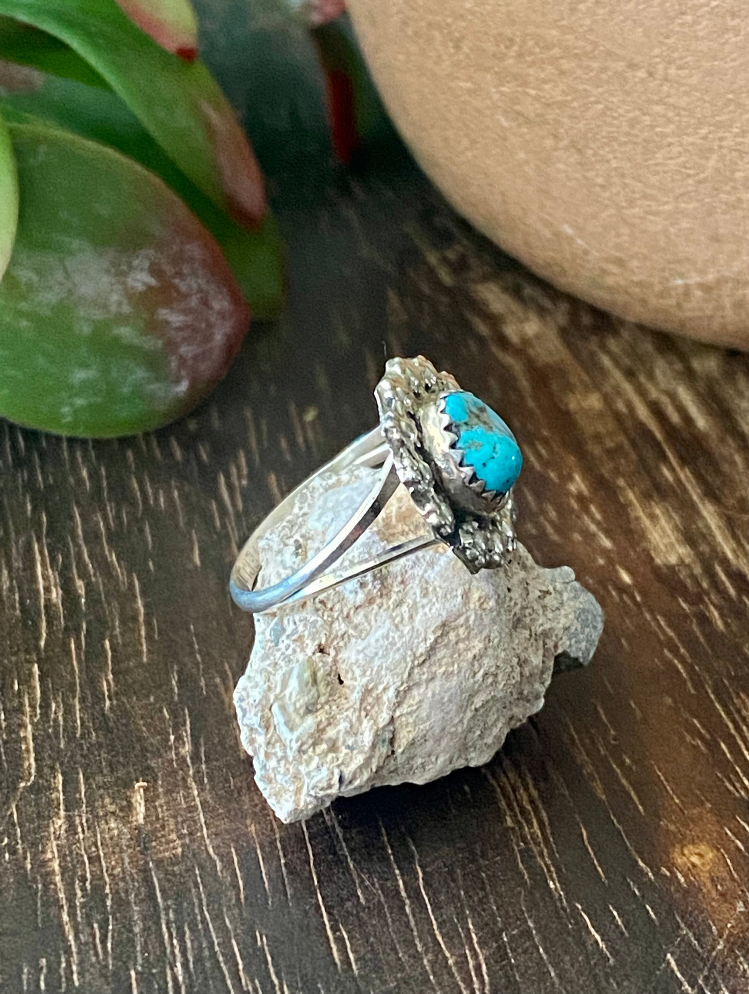 Navajo Made Kingman Turquoise & Sterling Silver Ring Size 5.25