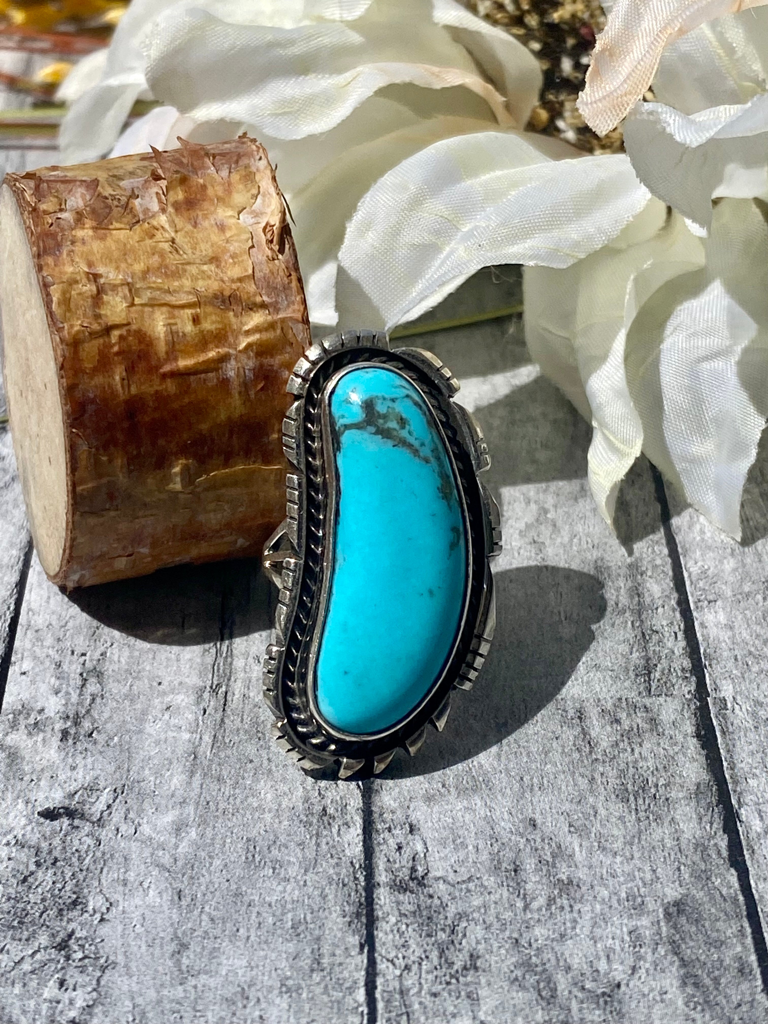 Navajo Made Kingman Turquoise & Sterling Silver Ring Size 5.75