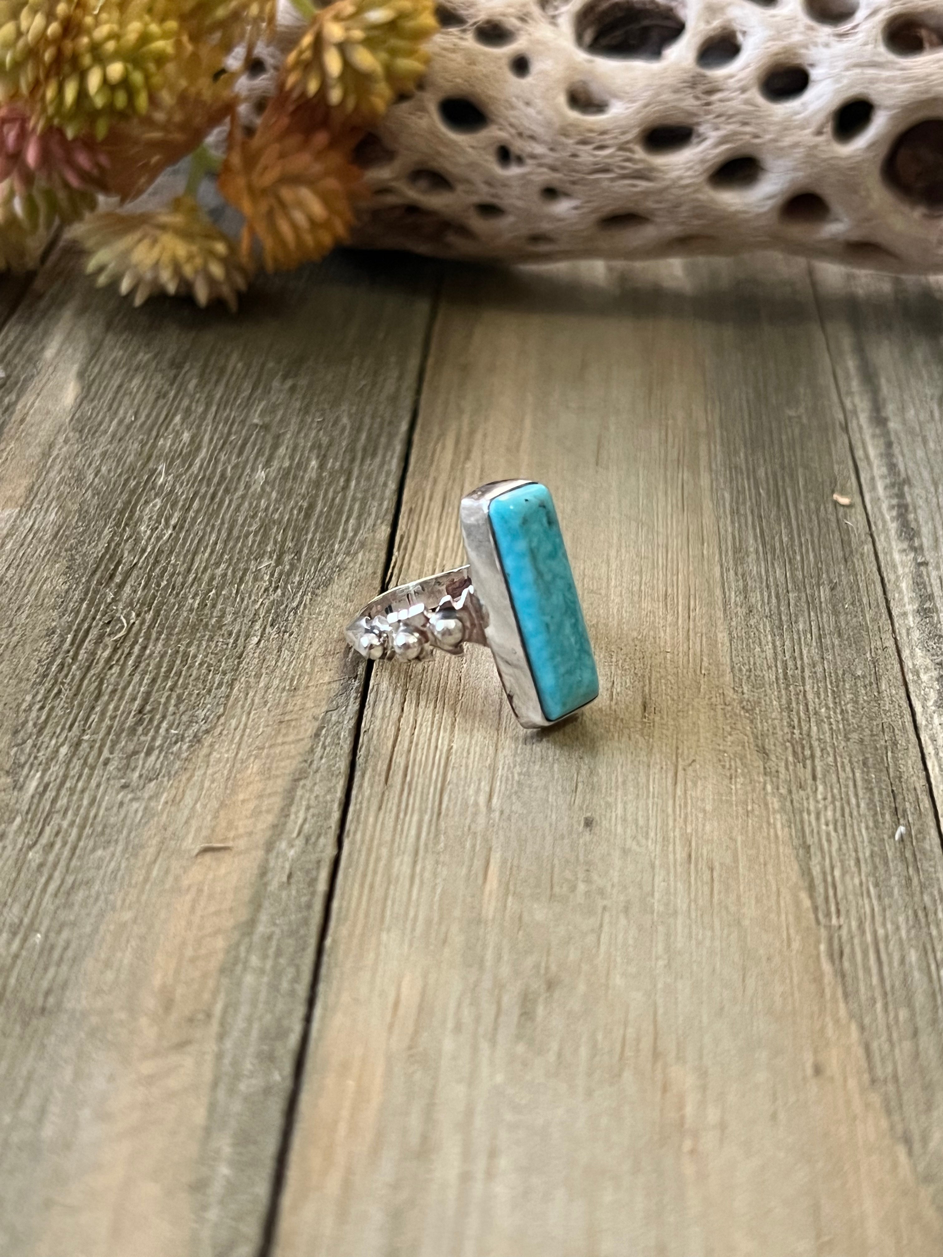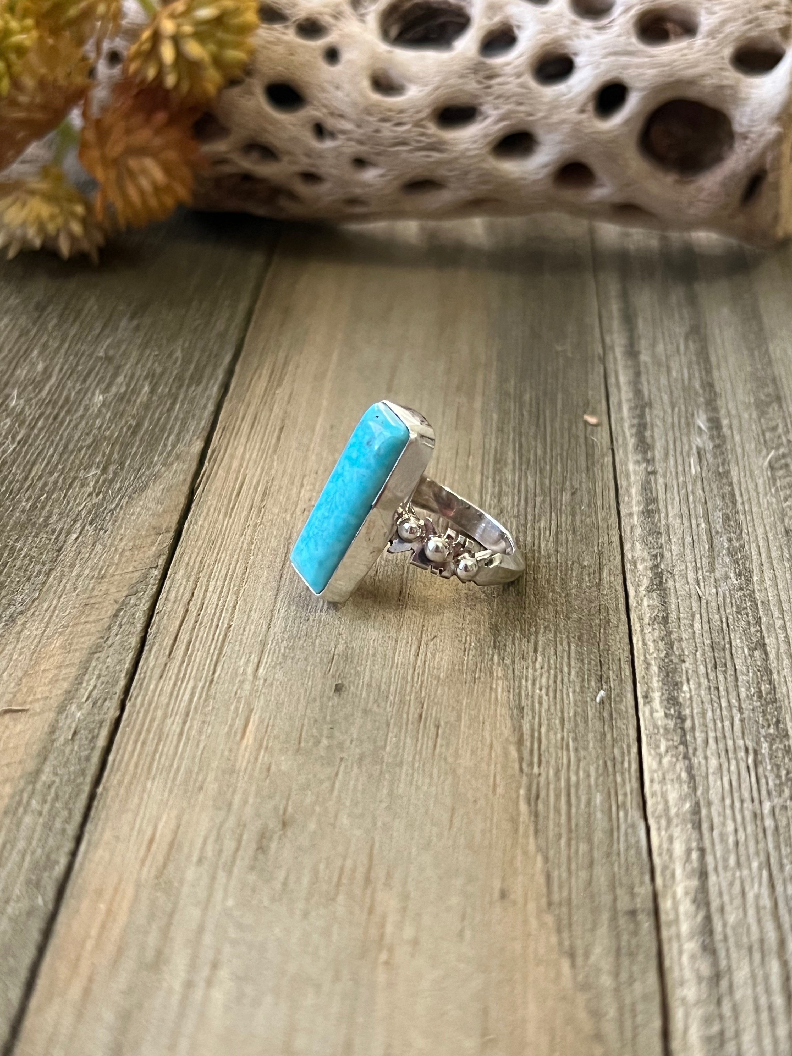 Navajo Made Kingman Turquoise & Sterling Silver Ring Size 5.75