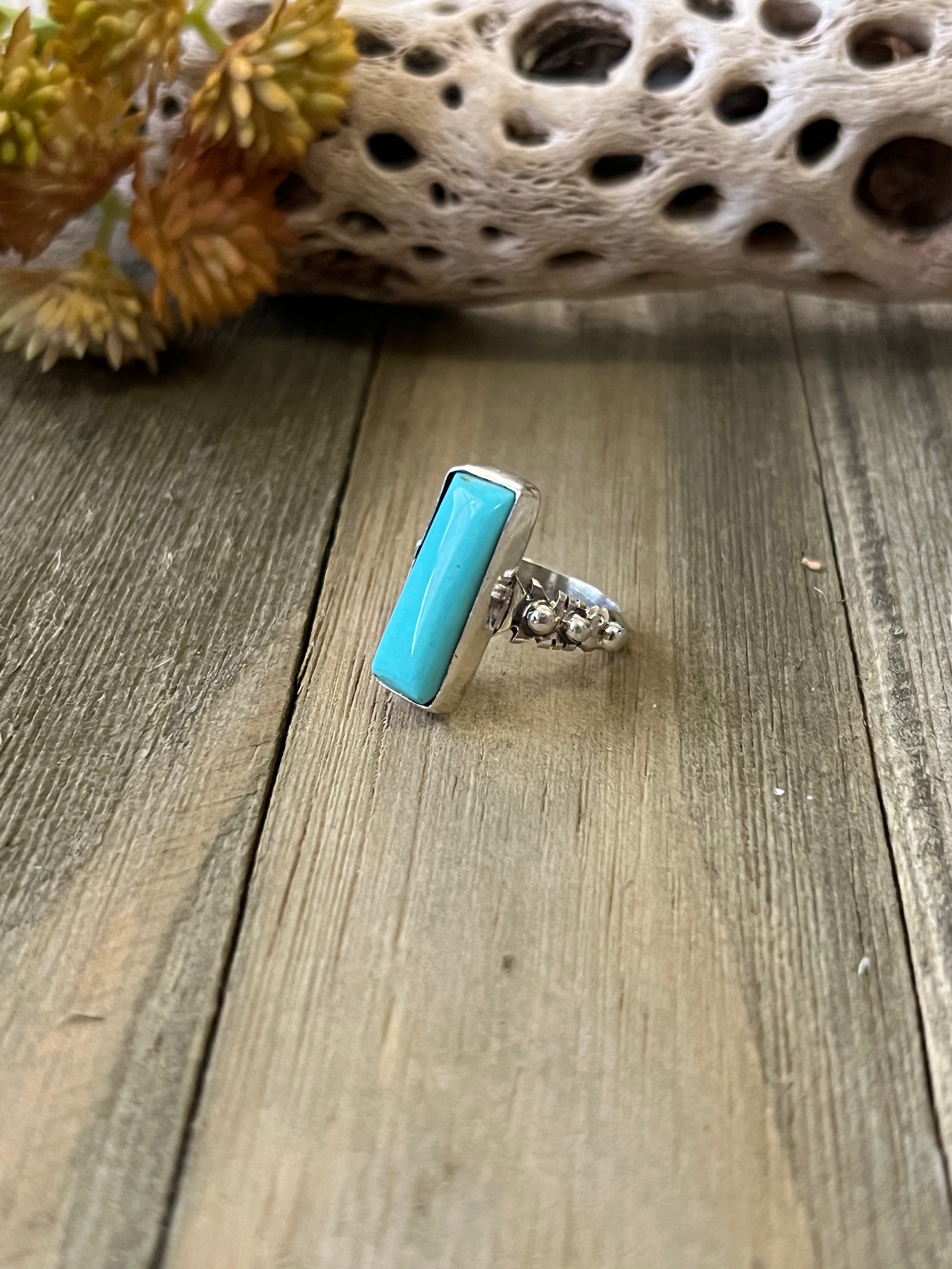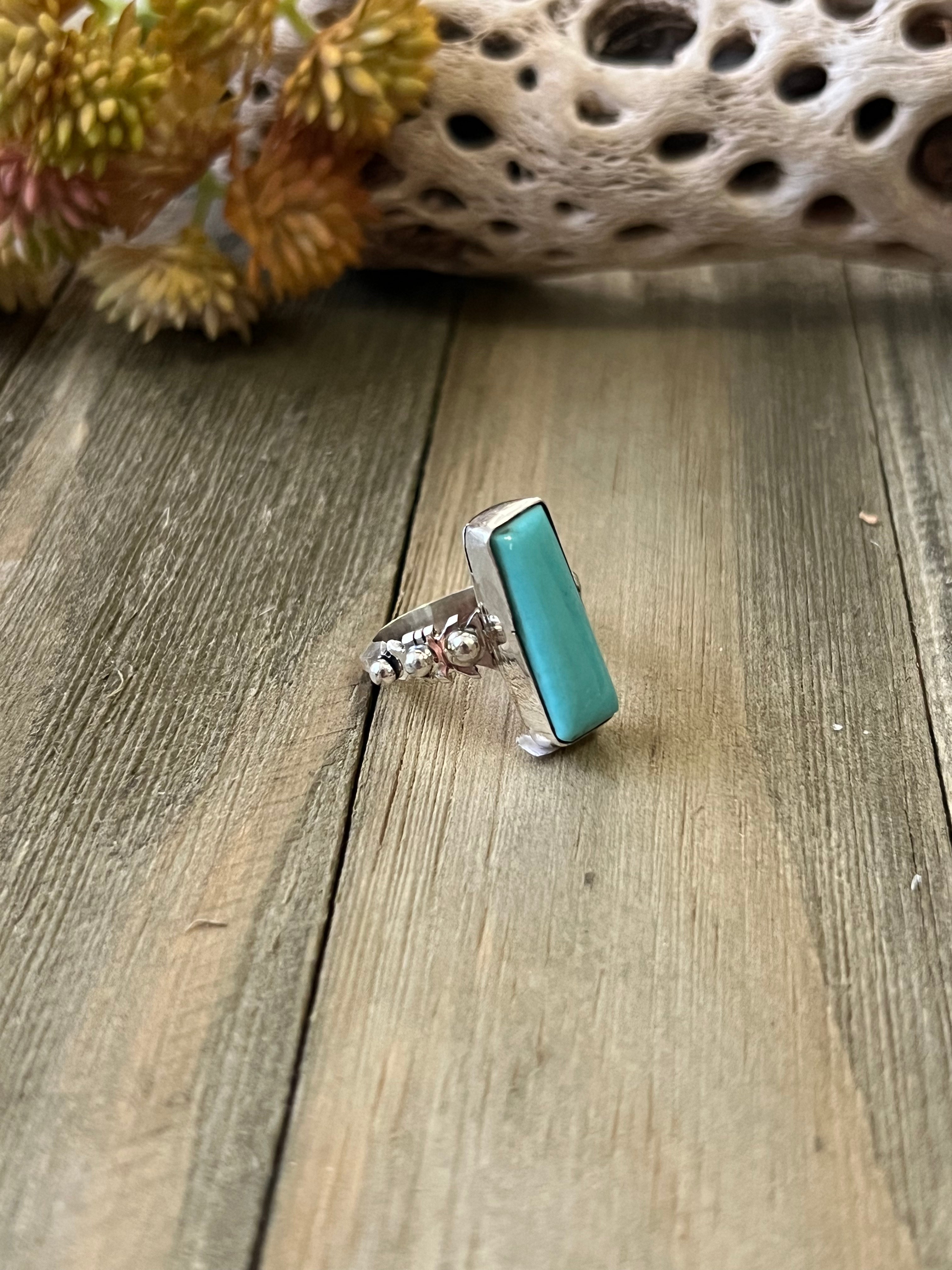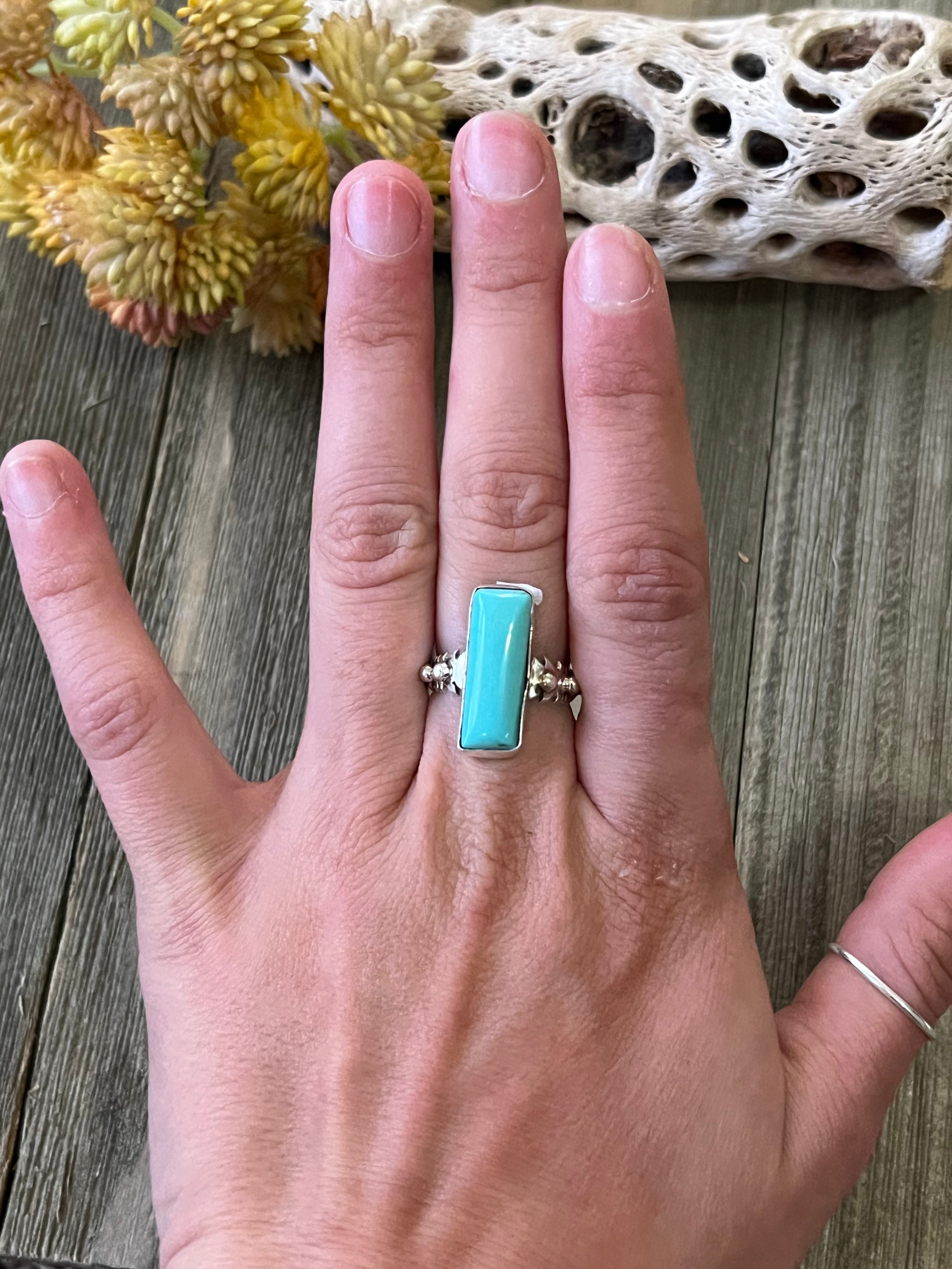 Navajo Made Kingman Turquoise & Sterling Silver Ring Size 5.75