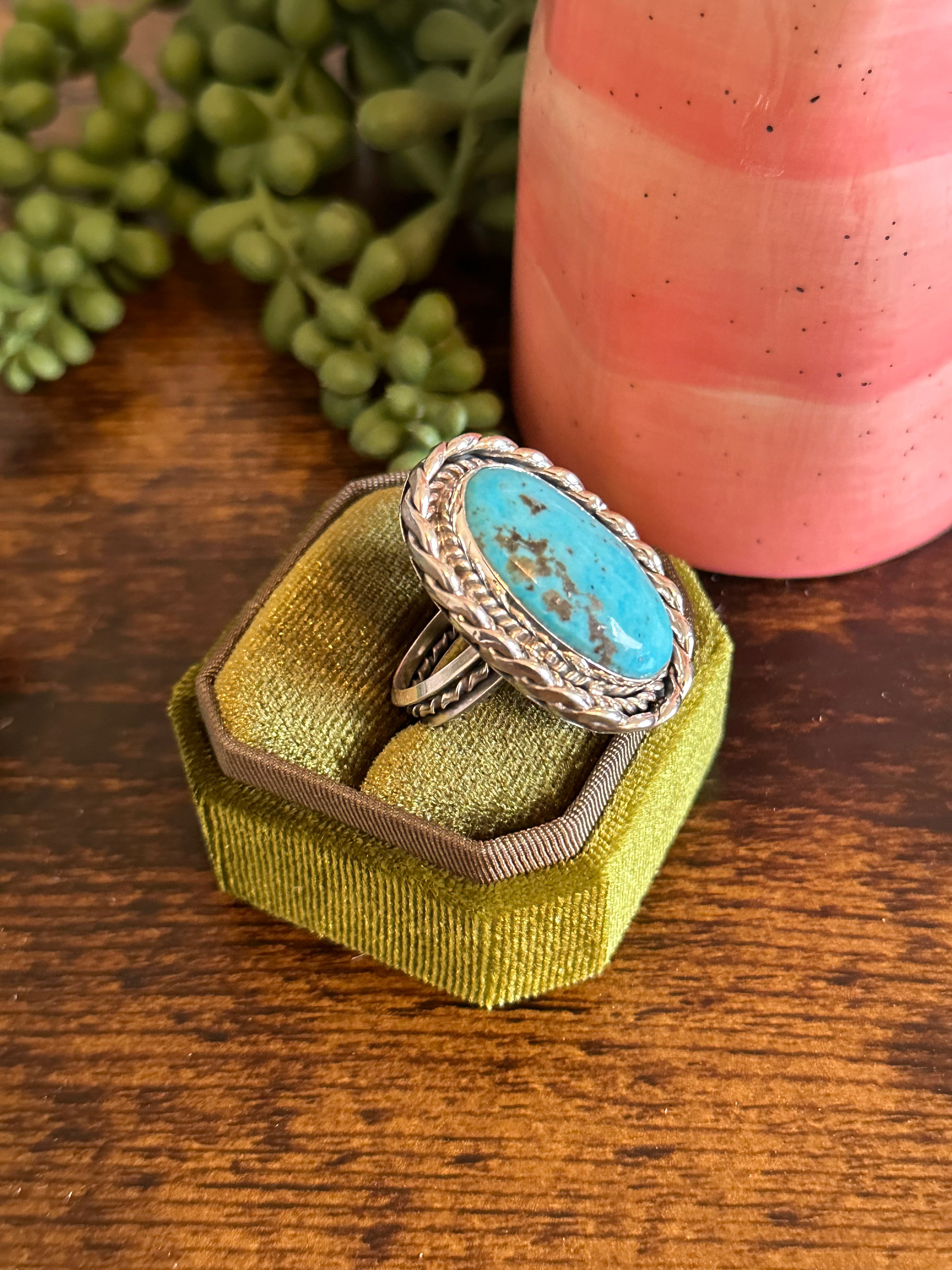 Navajo Made Kingman Turquoise & Sterling Silver Ring Size 9