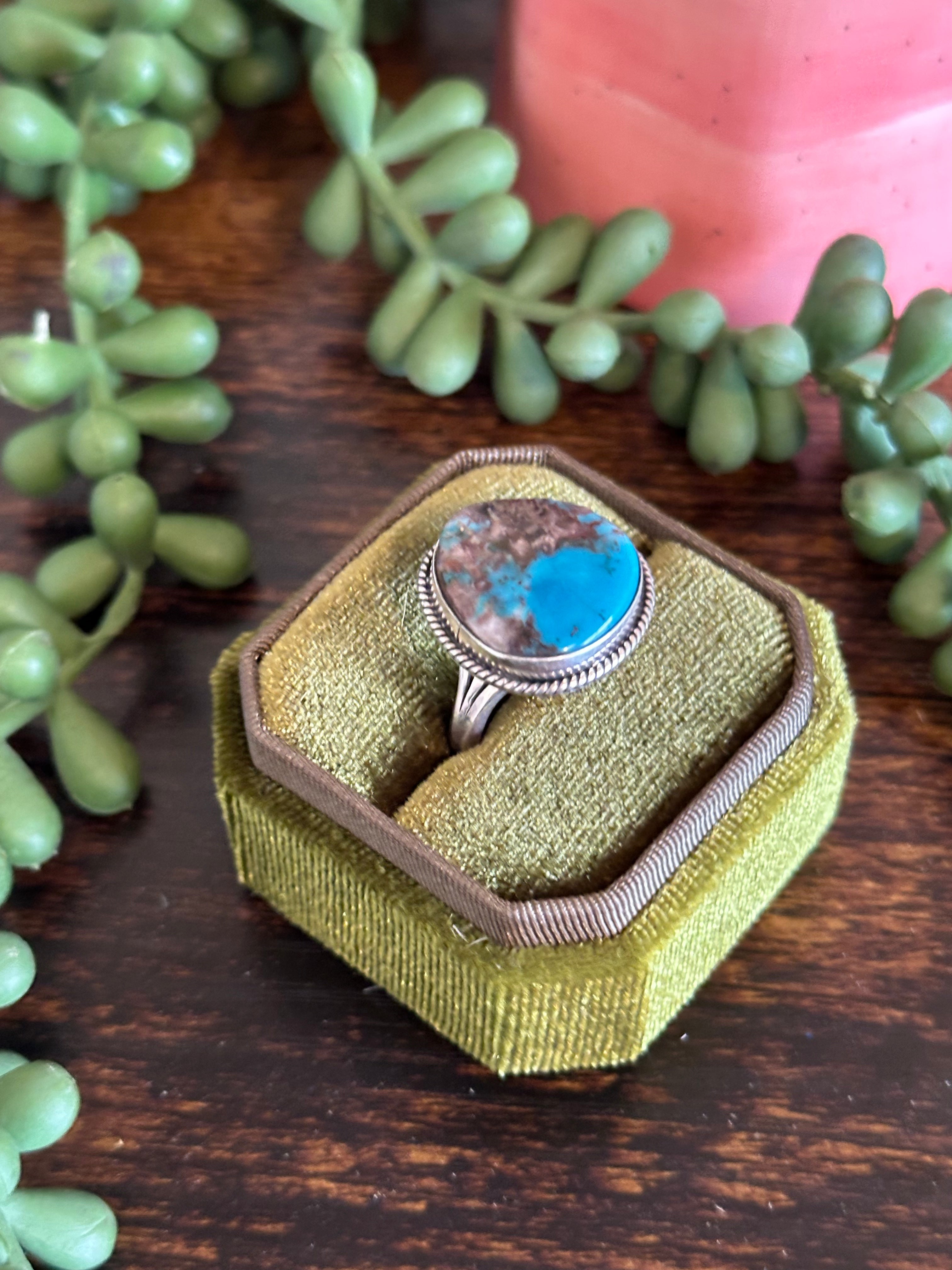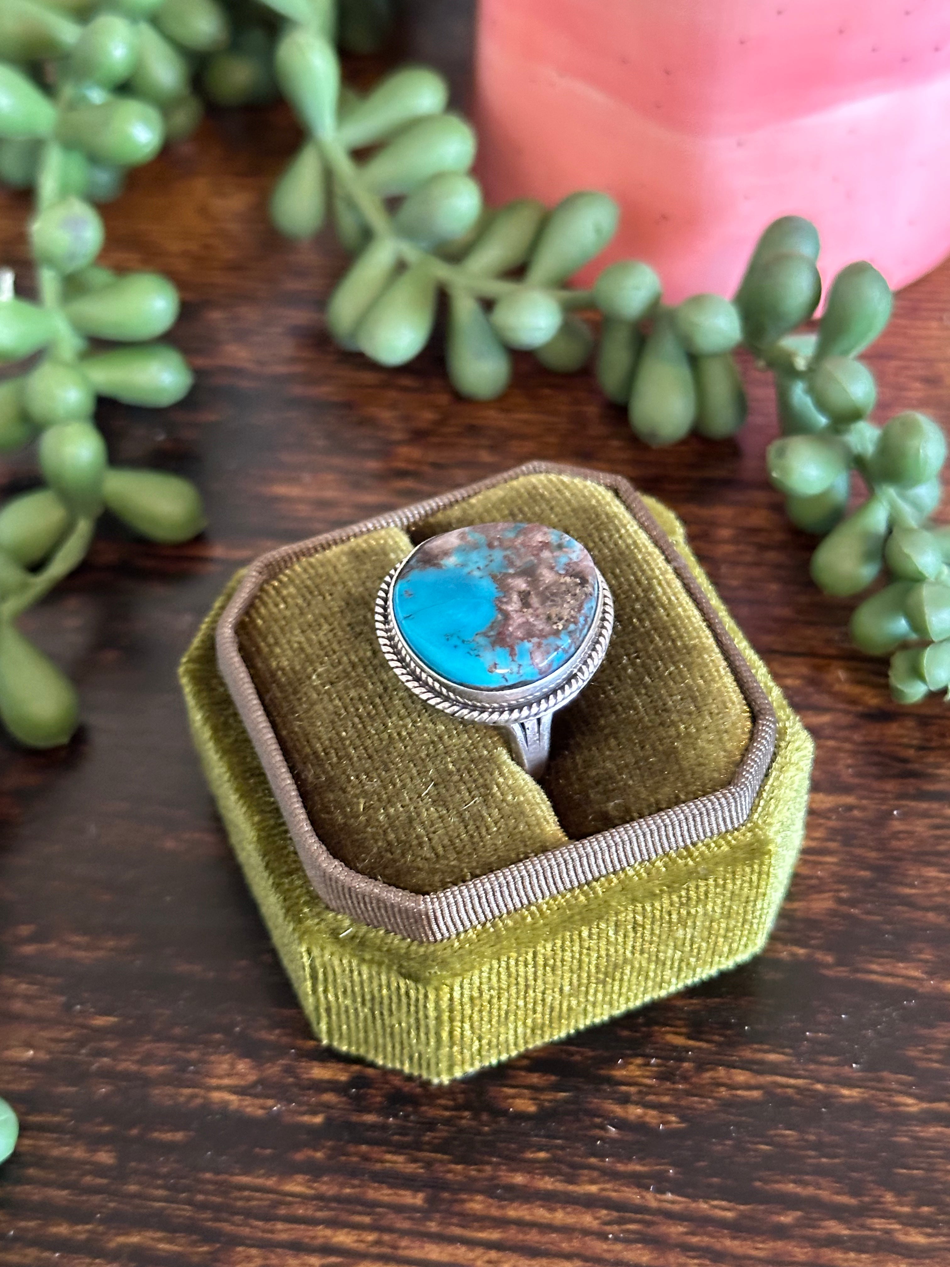 Navajo Made Kingman Turquoise & Sterling Silver Ring Size 6.75