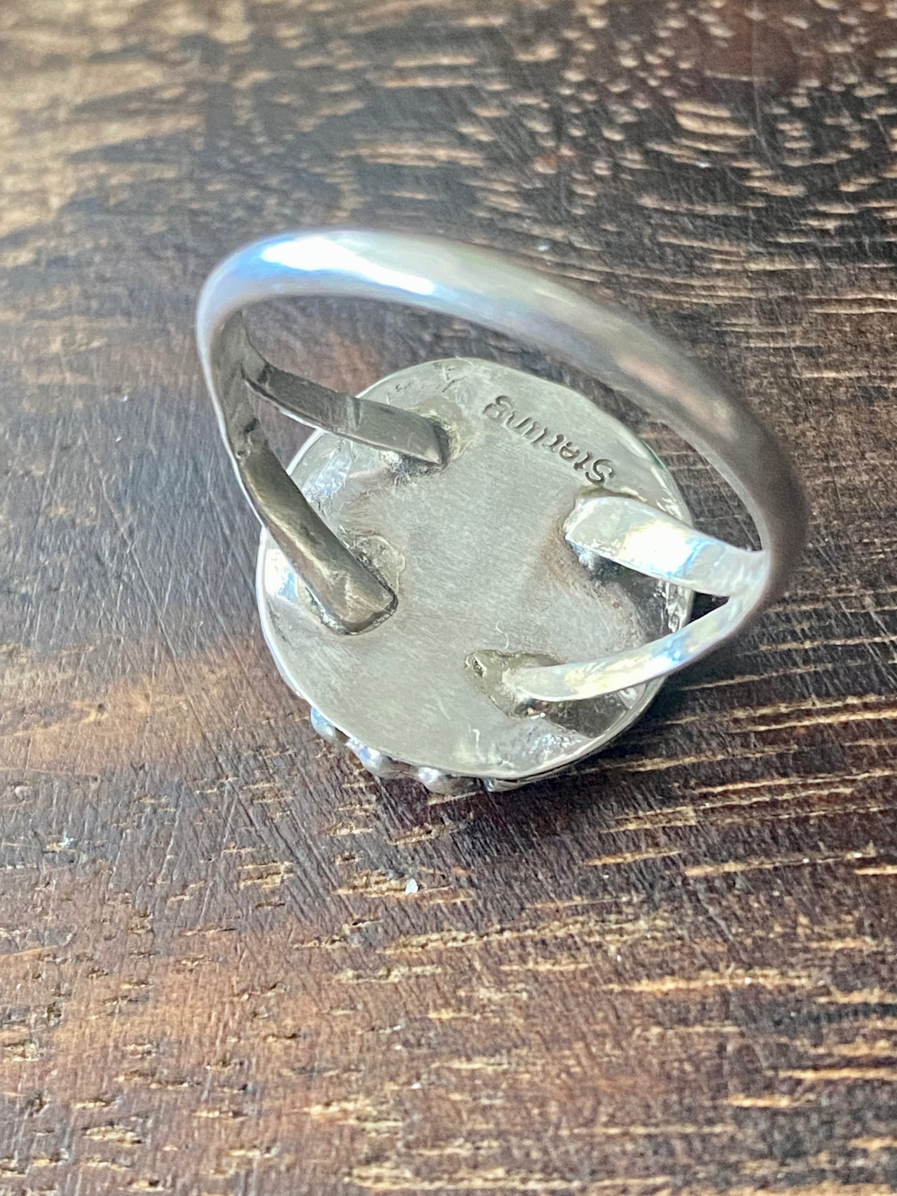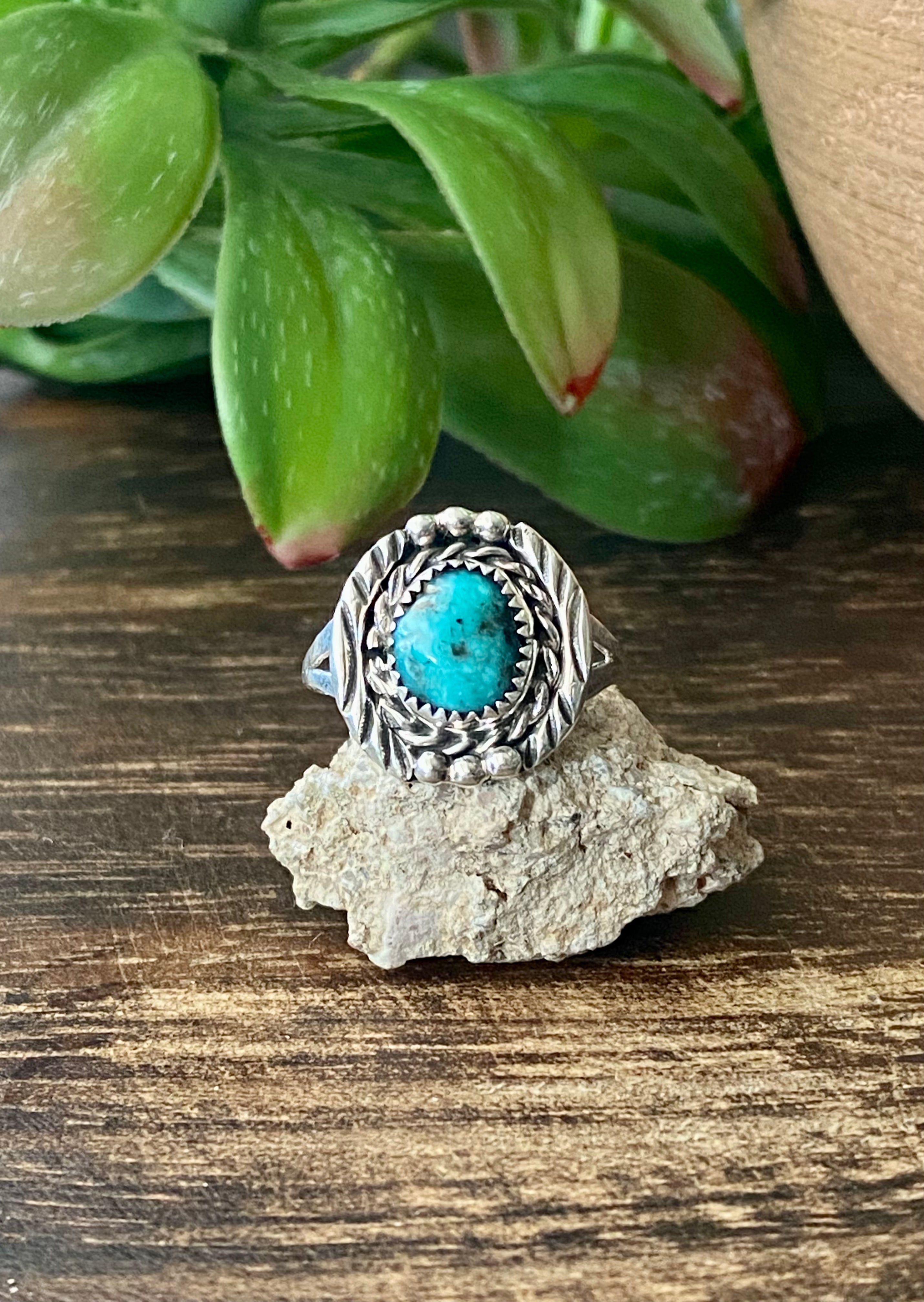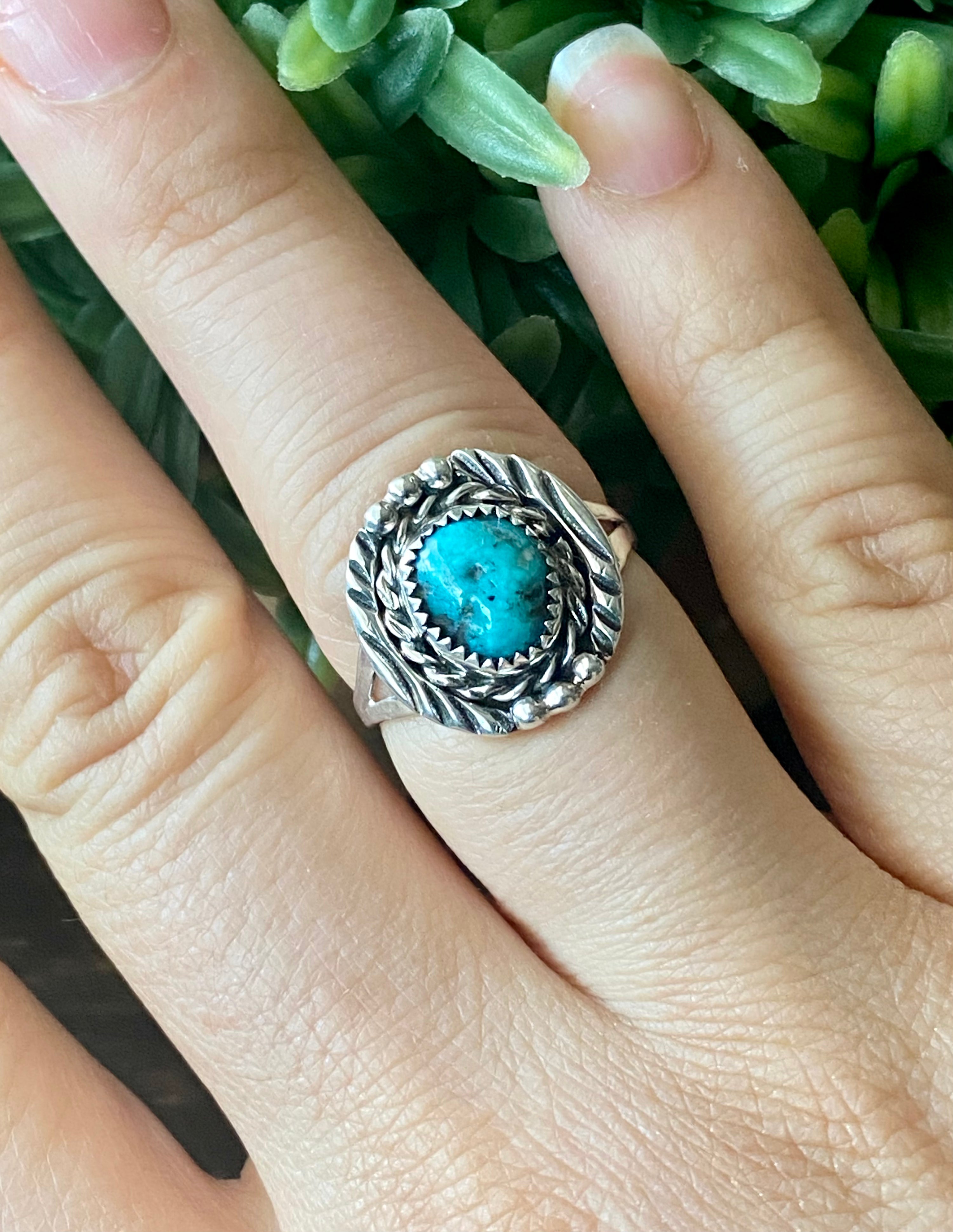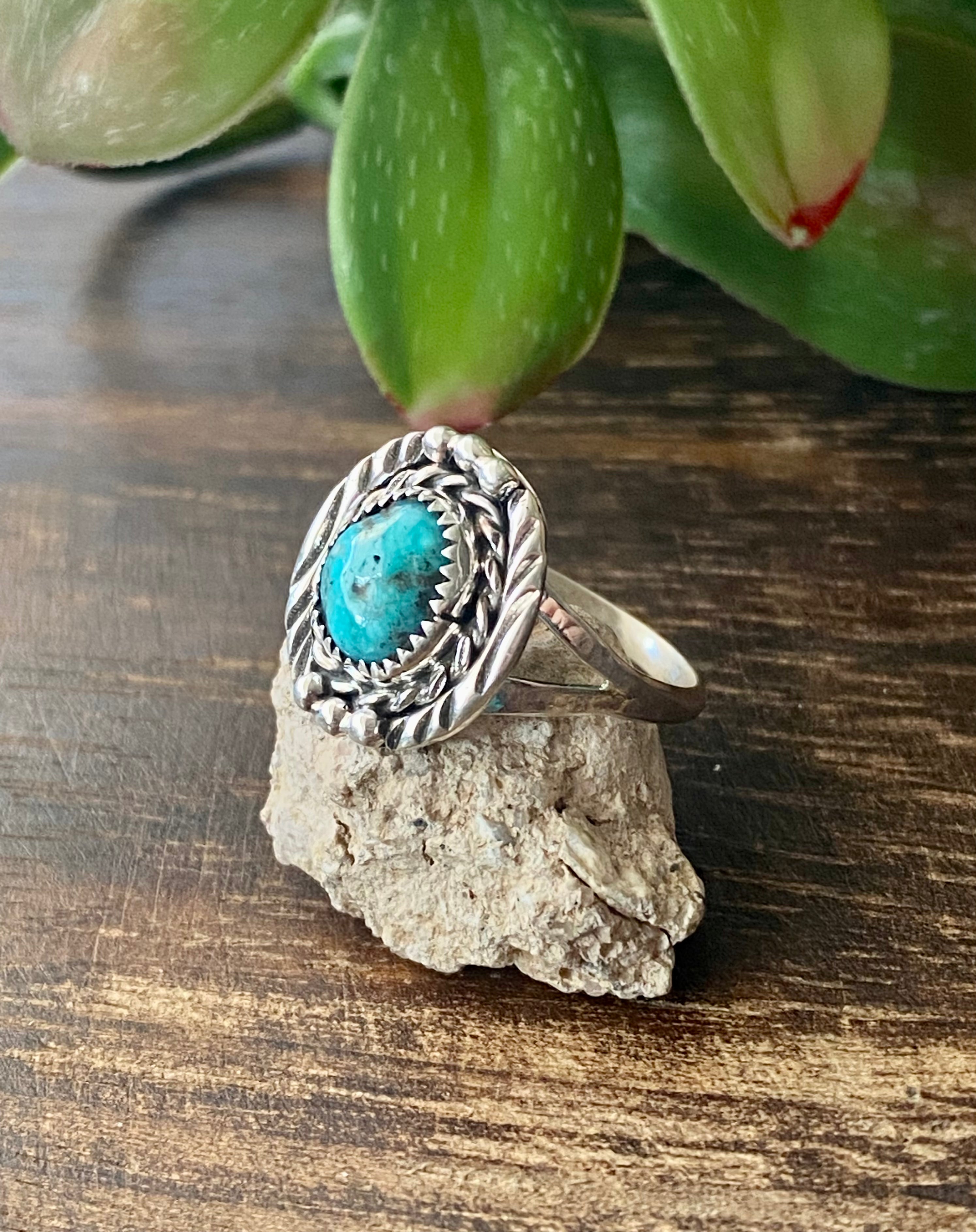 Navajo Made Kingman Turquoise & Sterling Silver Ring Size 7.5