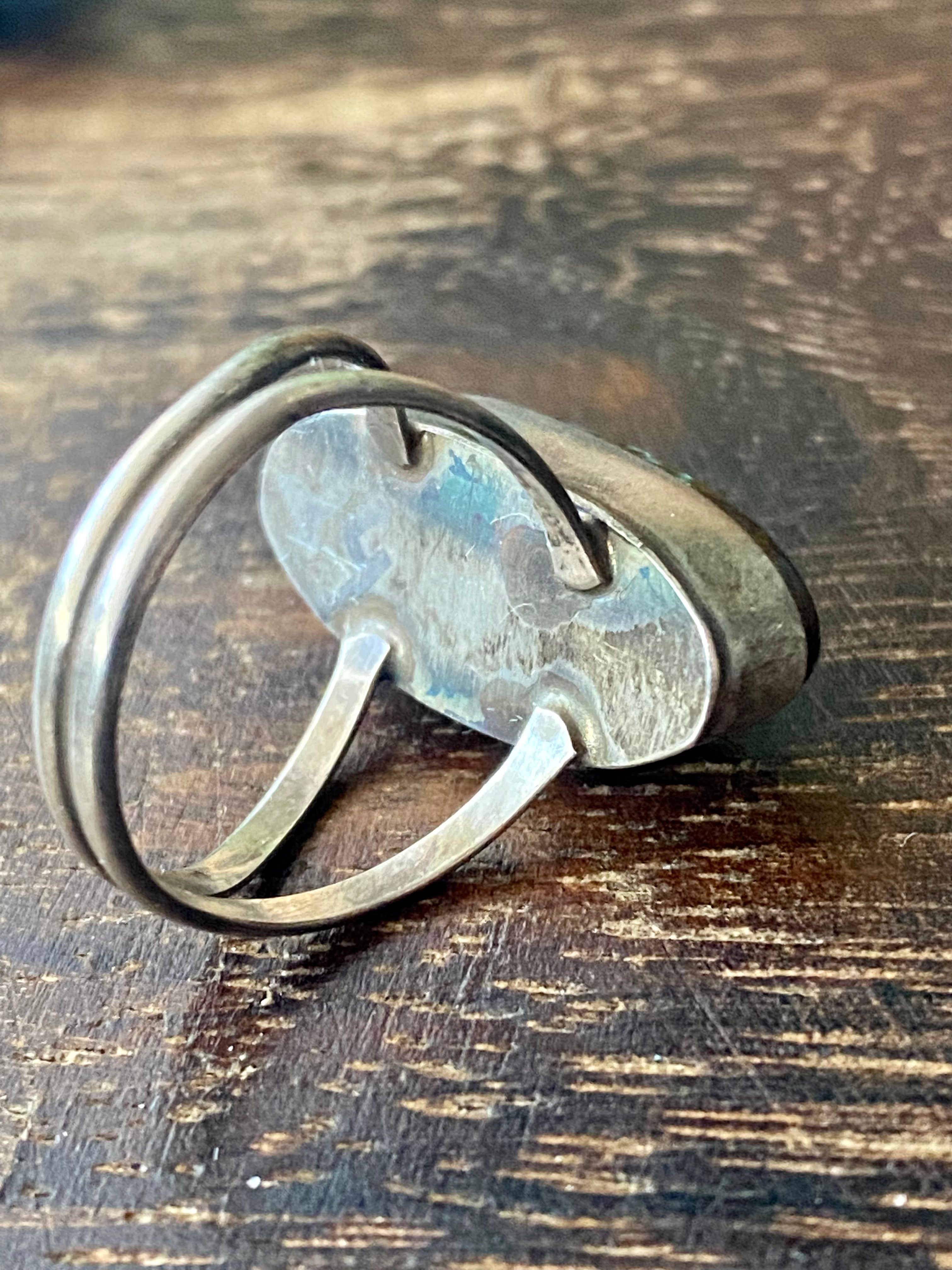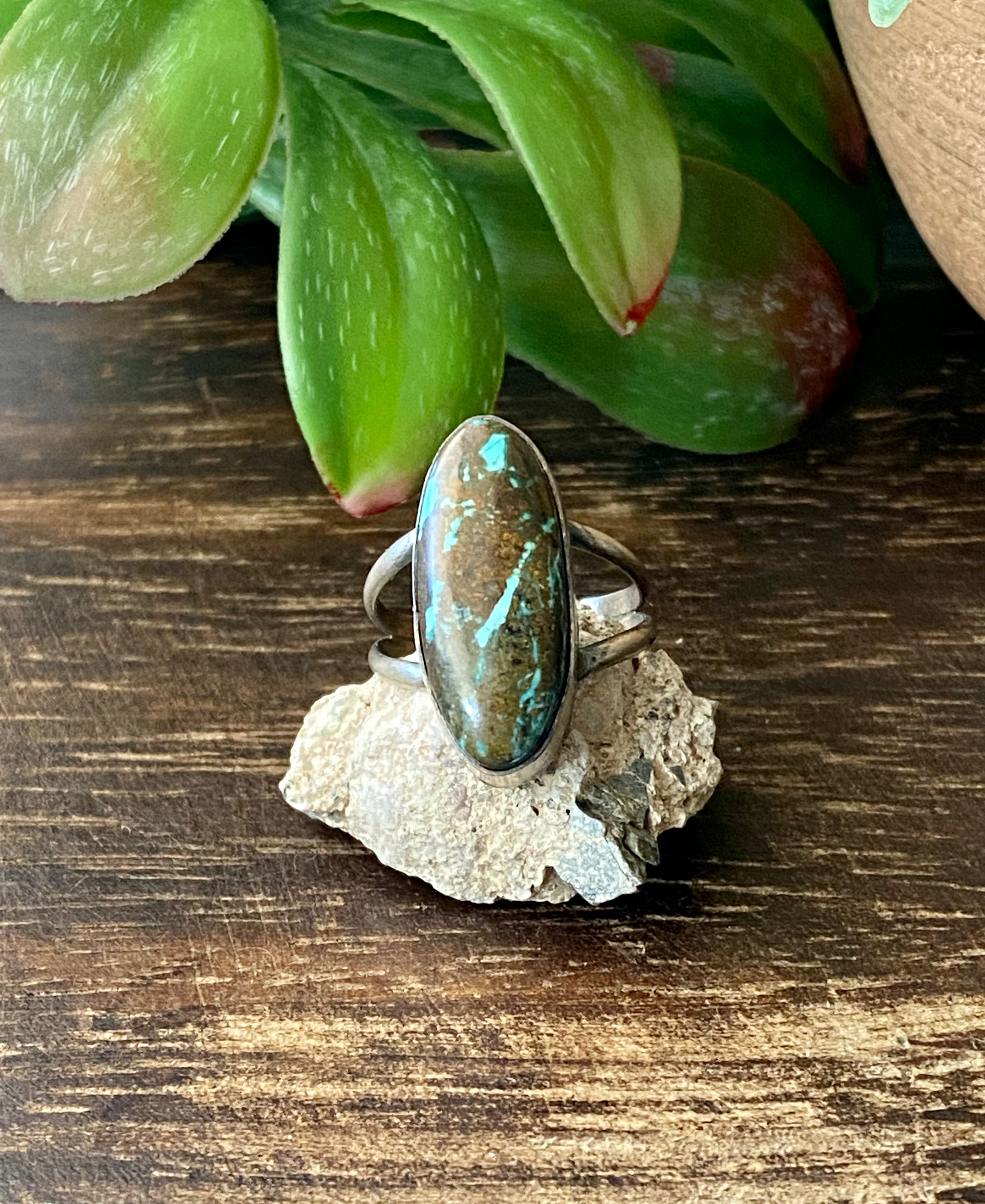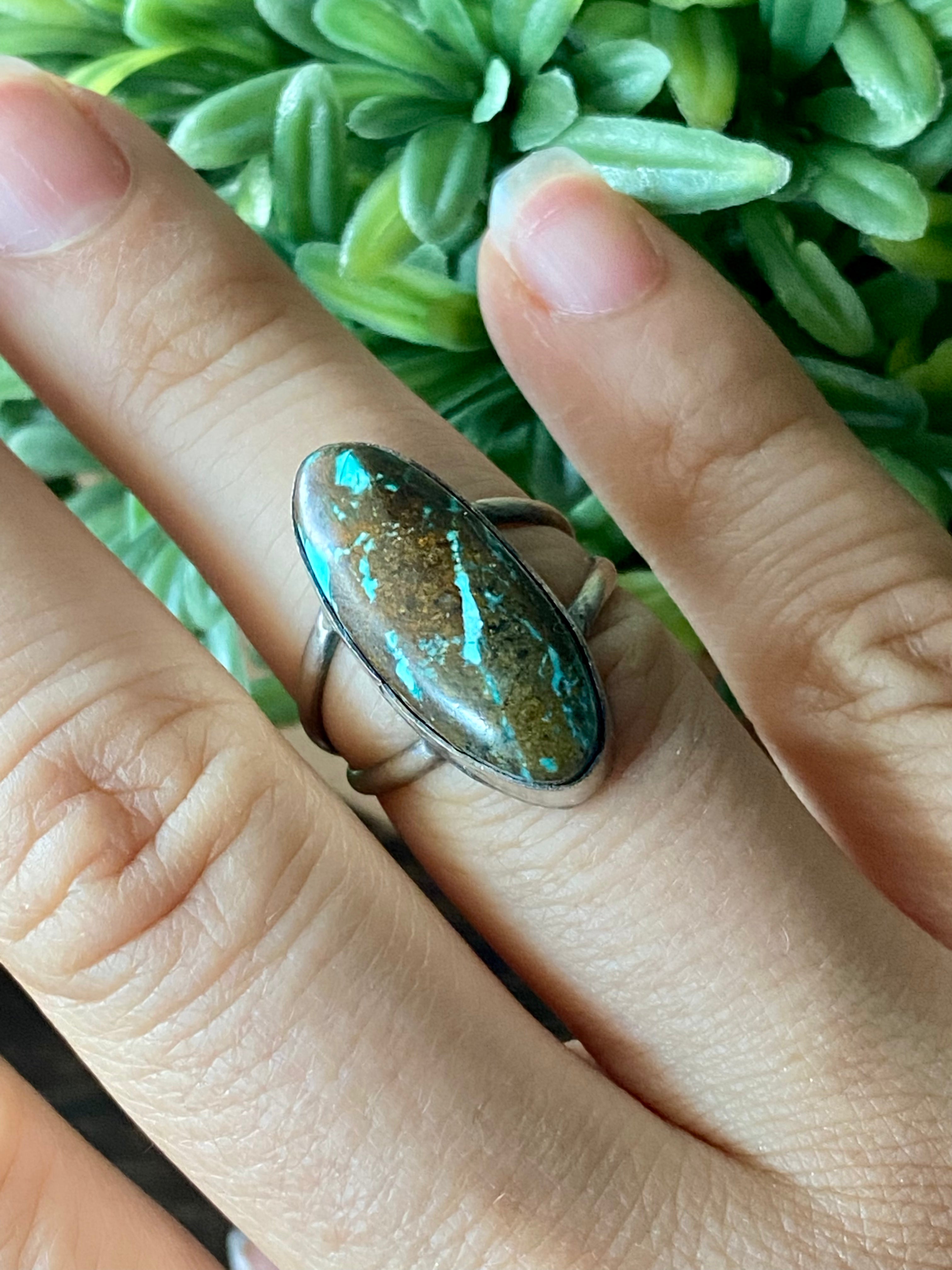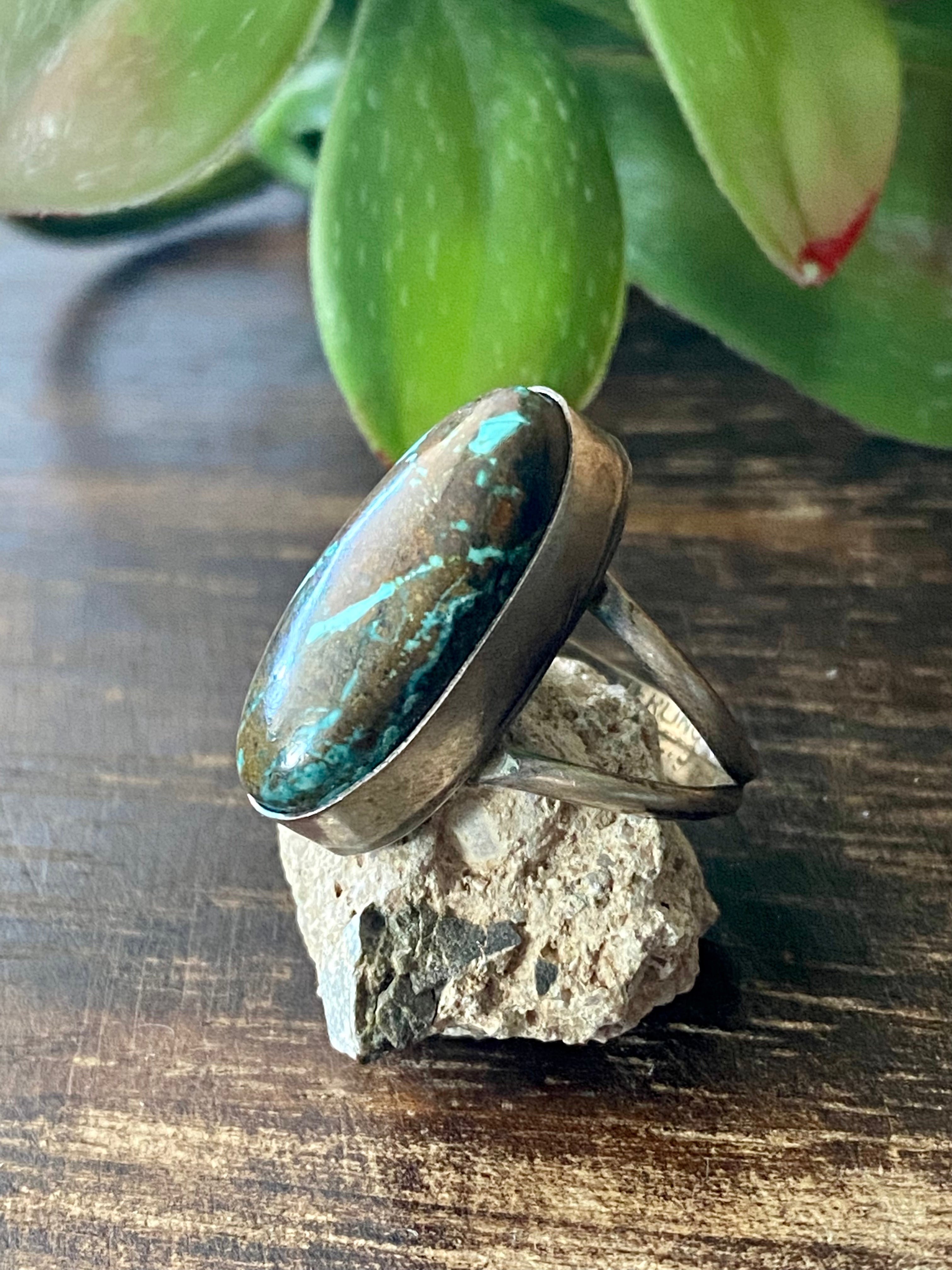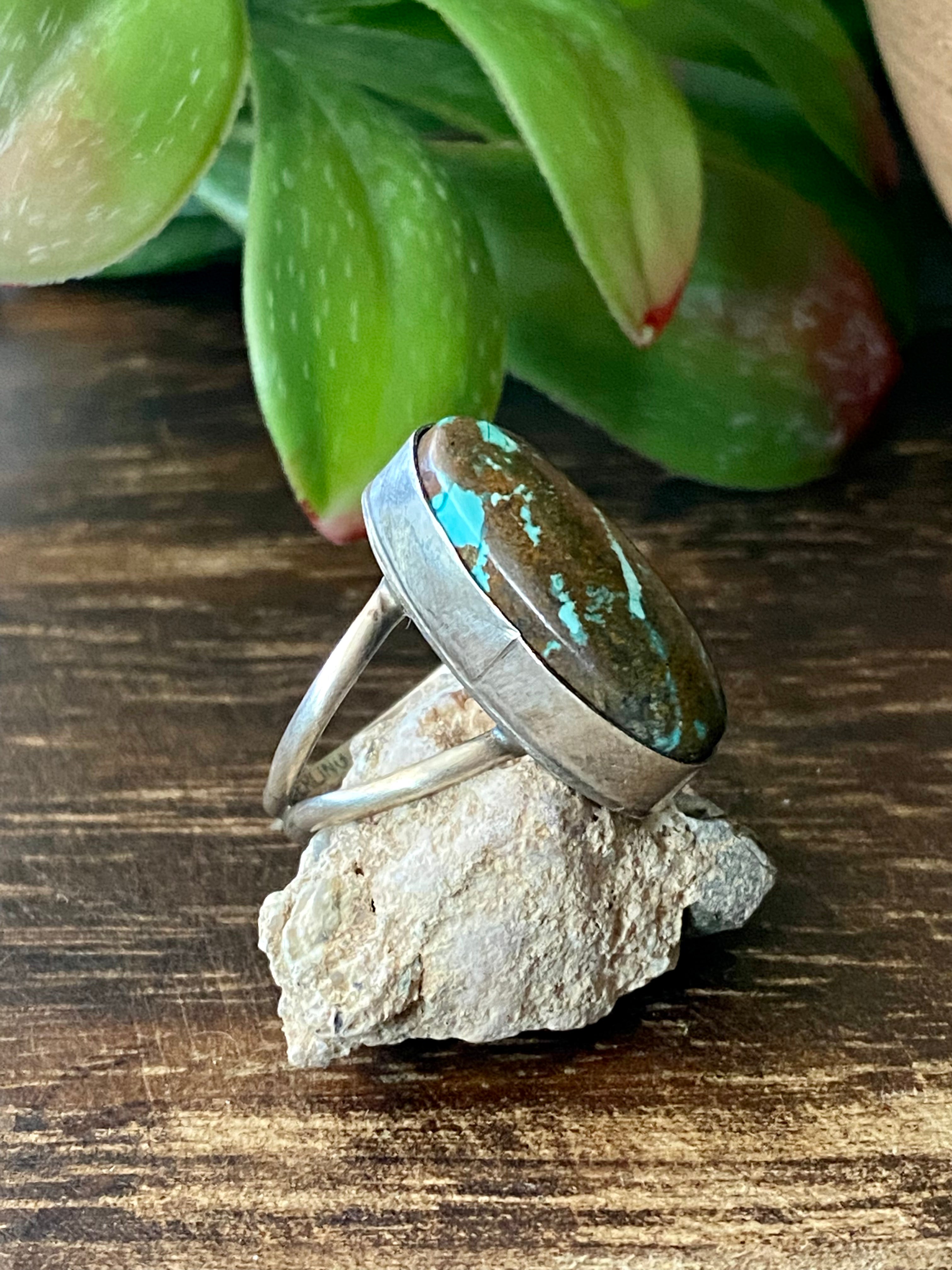 Navajo Made Kingman Turquoise & Sterling Silver Ring Size 7.25