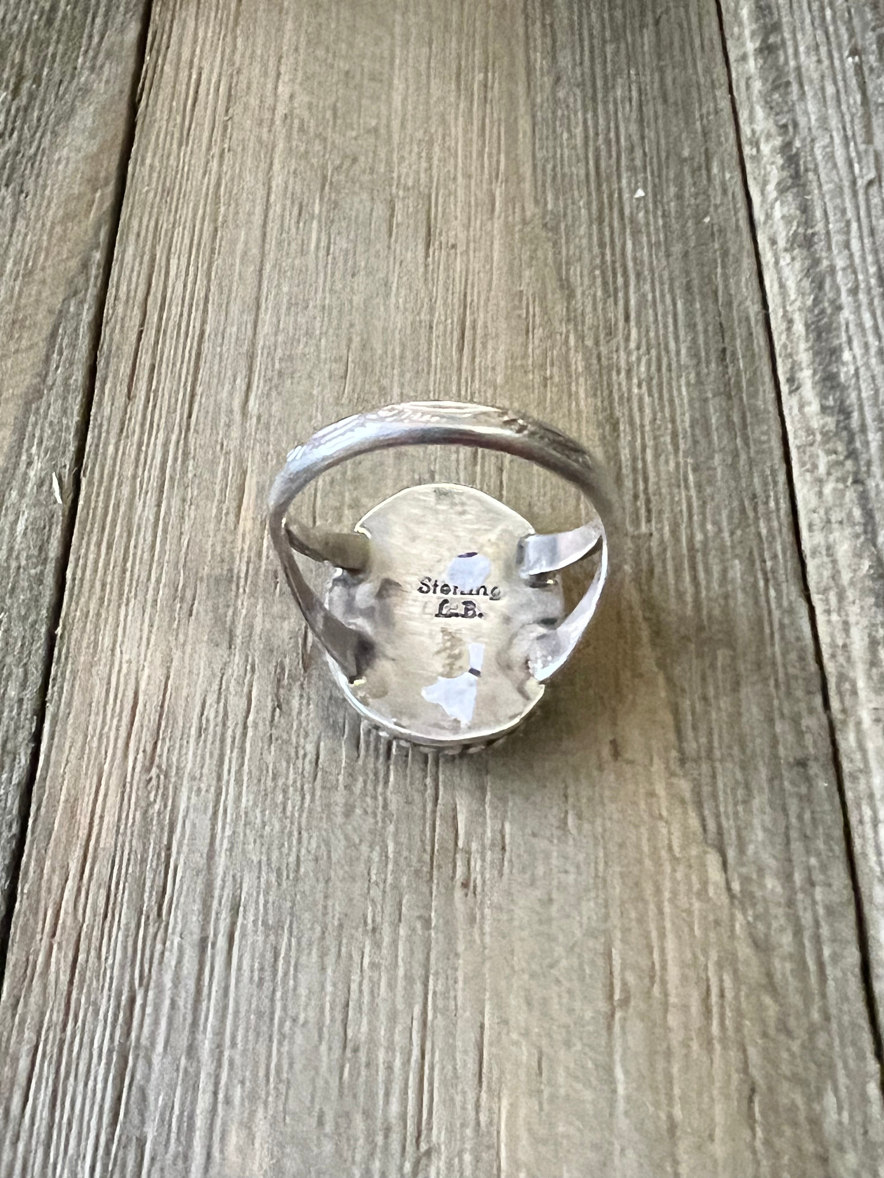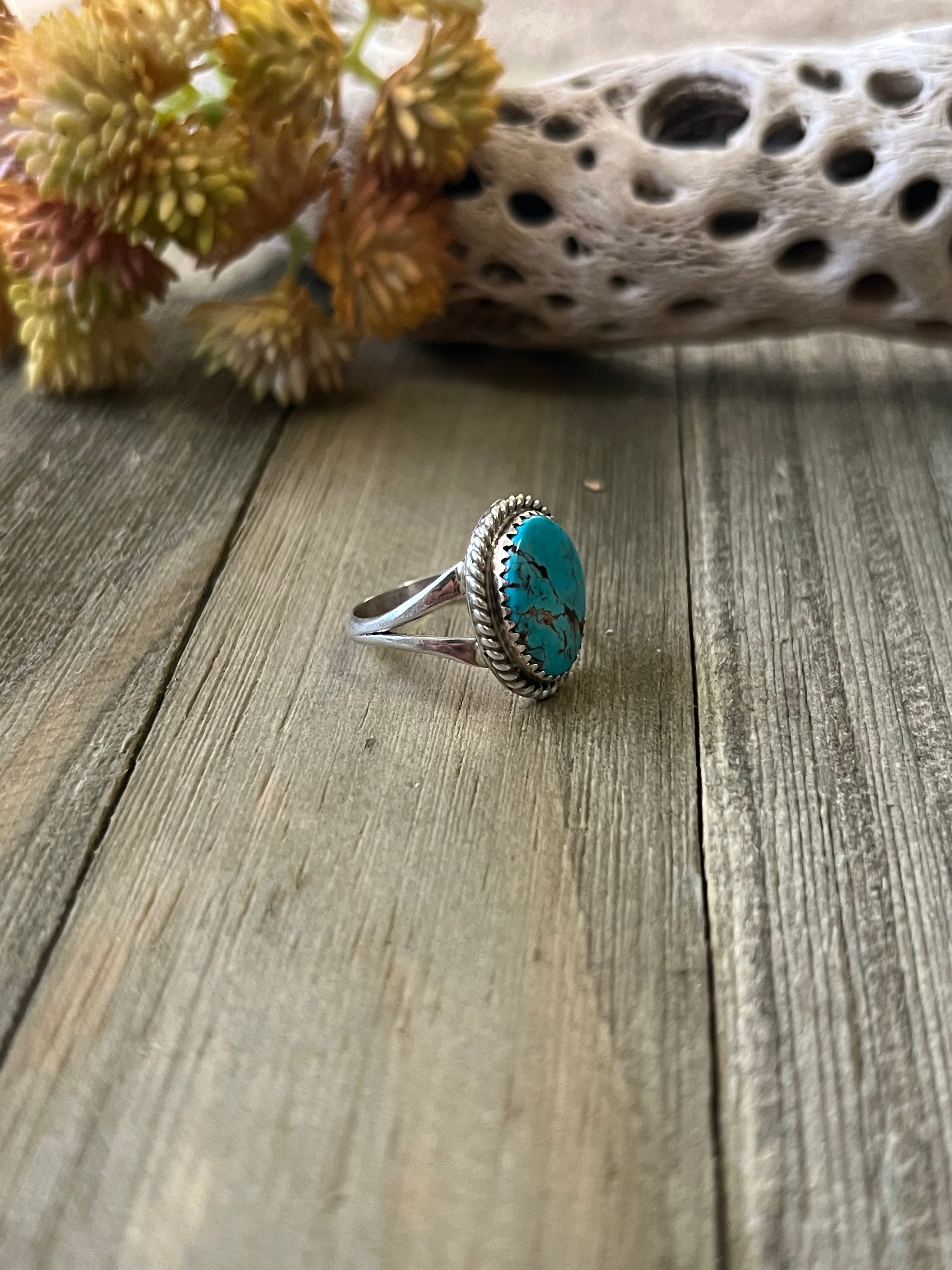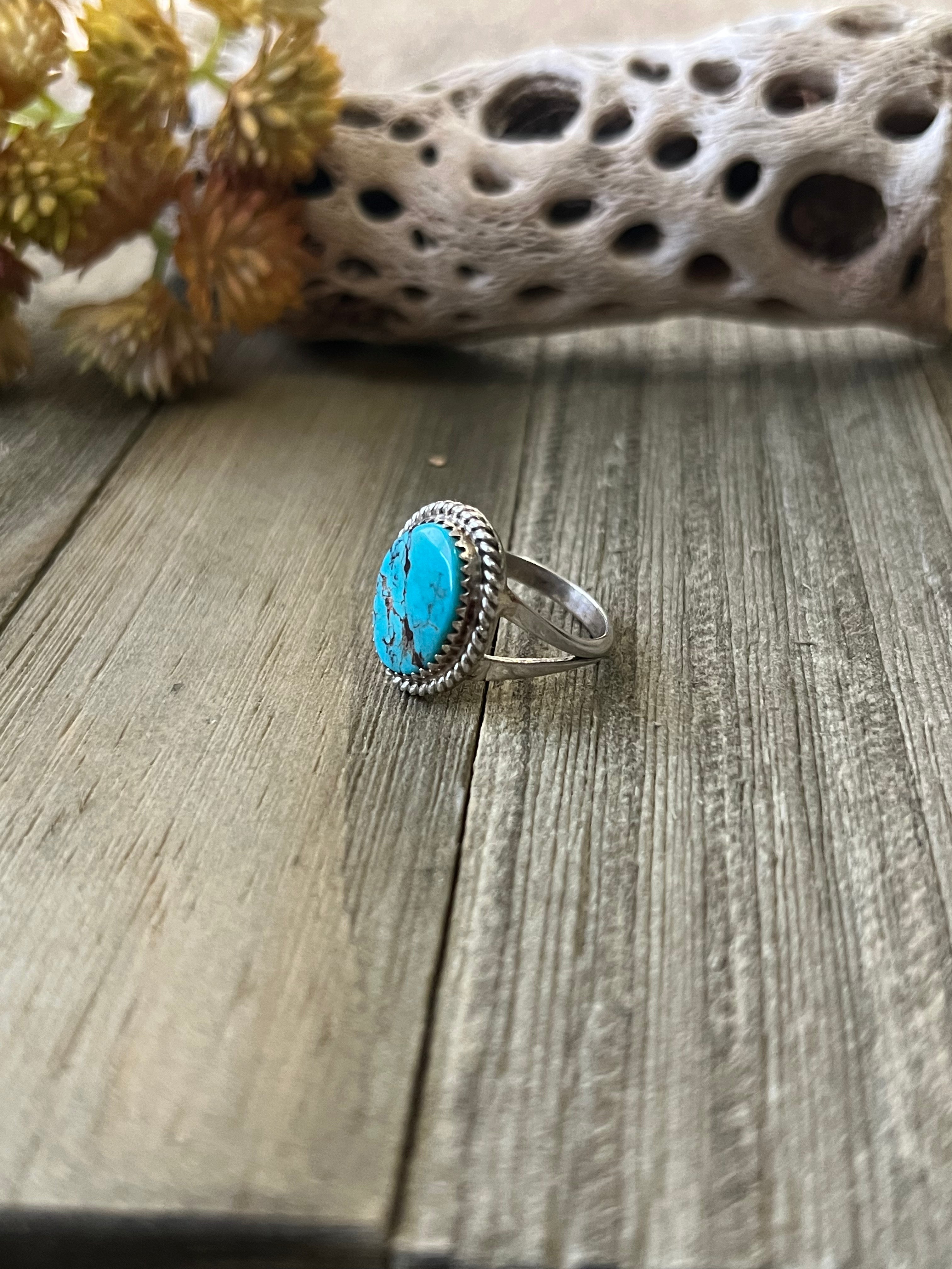 Navajo Made Kingman Turquoise & Sterling Silver Ring Size 7.25