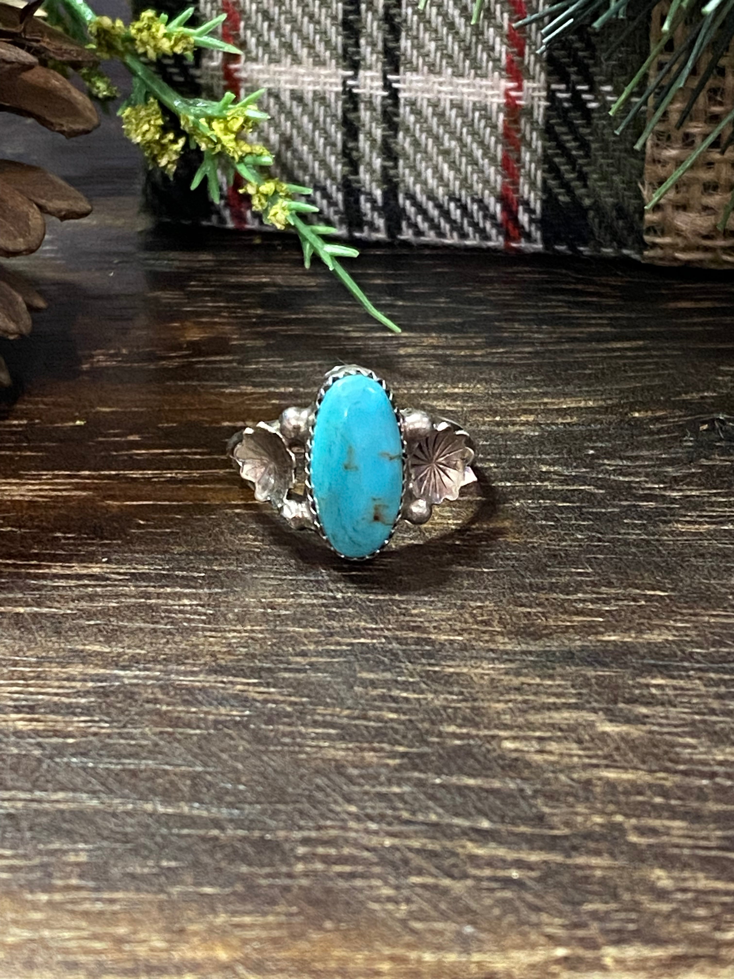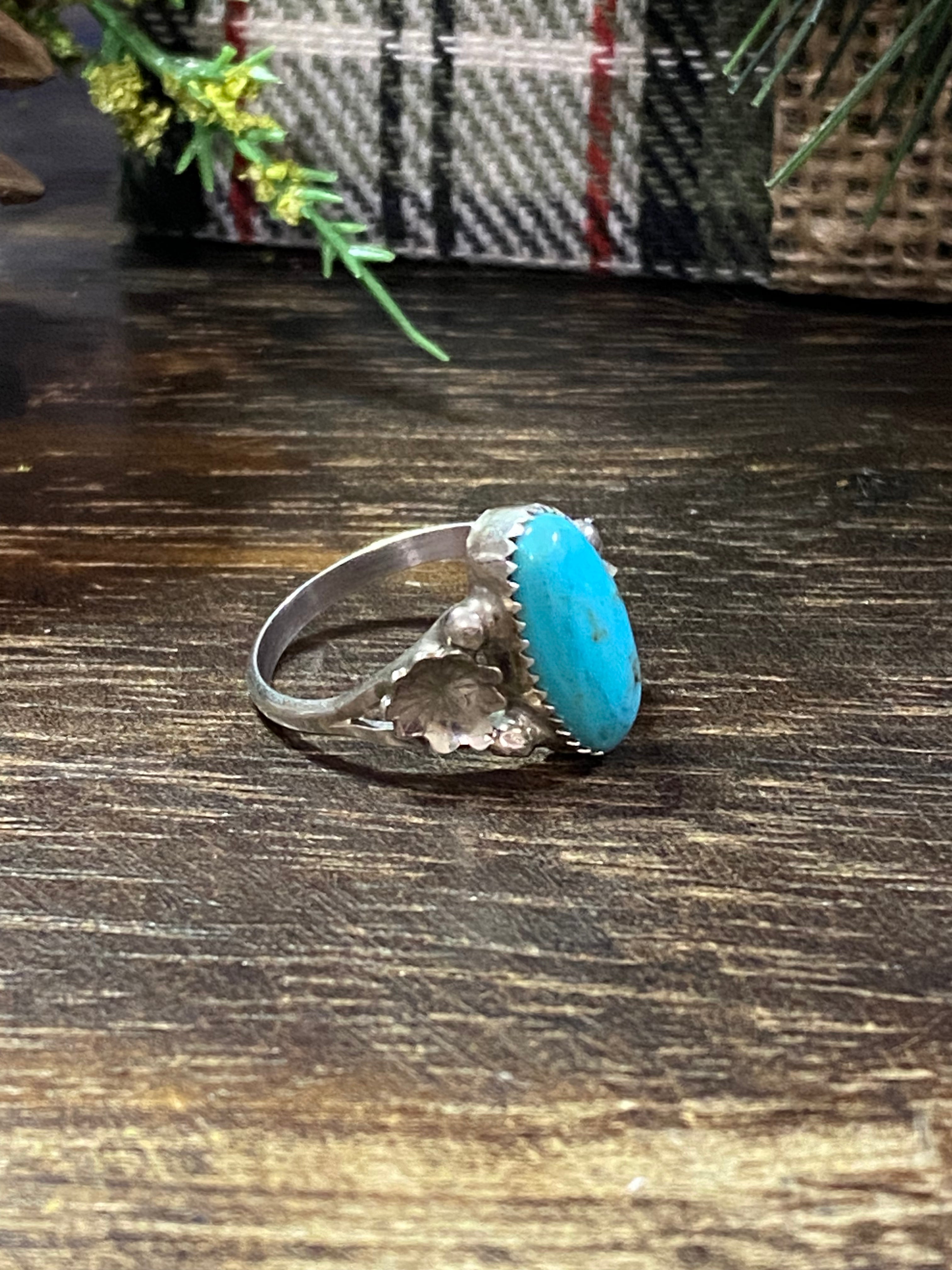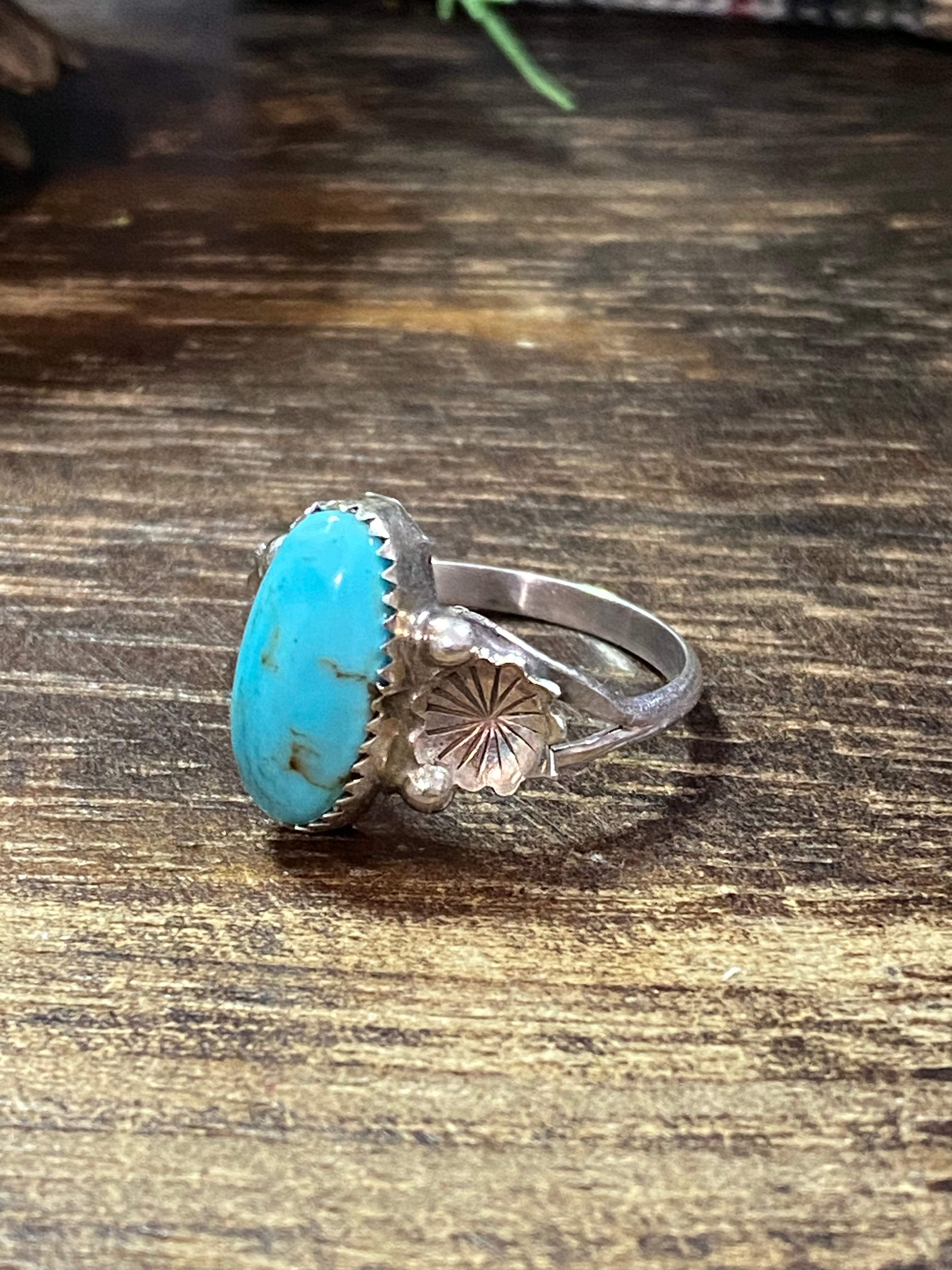 Navajo Made Kingman Turquoise & Sterling Silver Ring Size 7.5