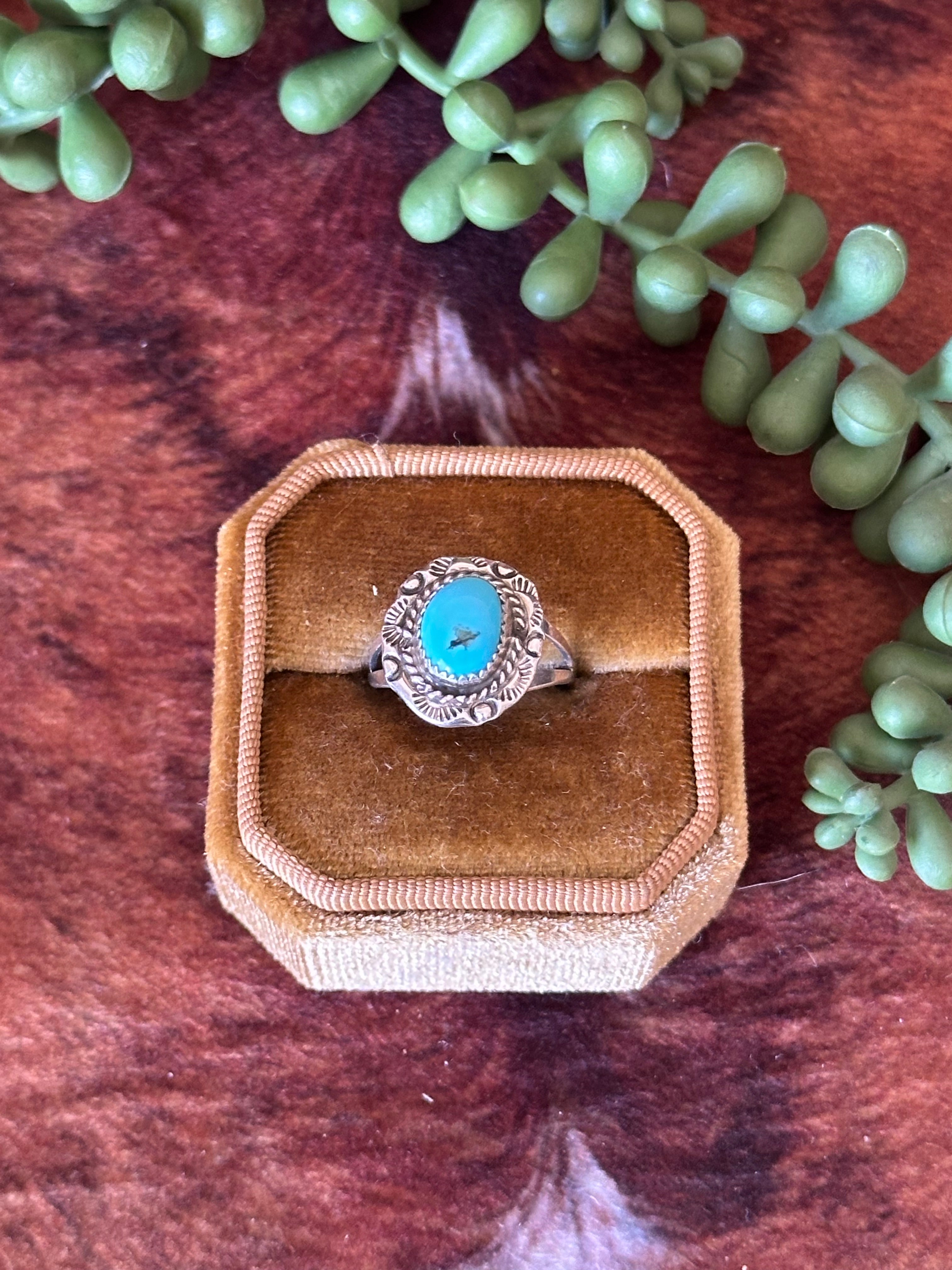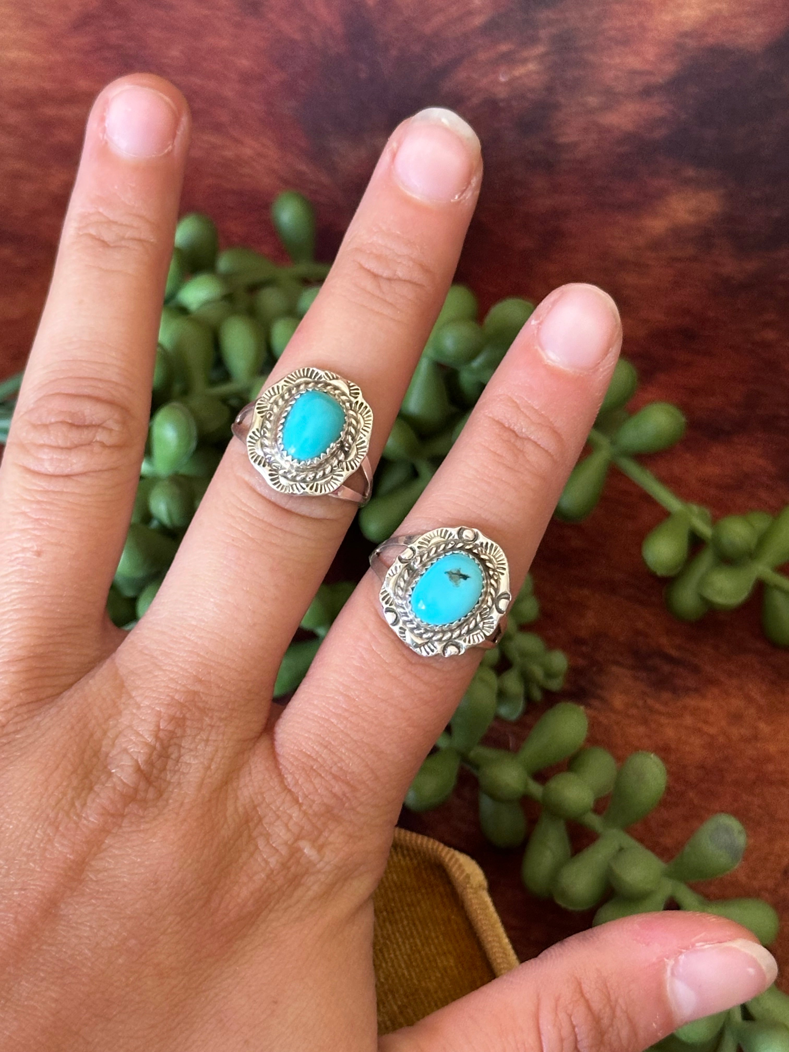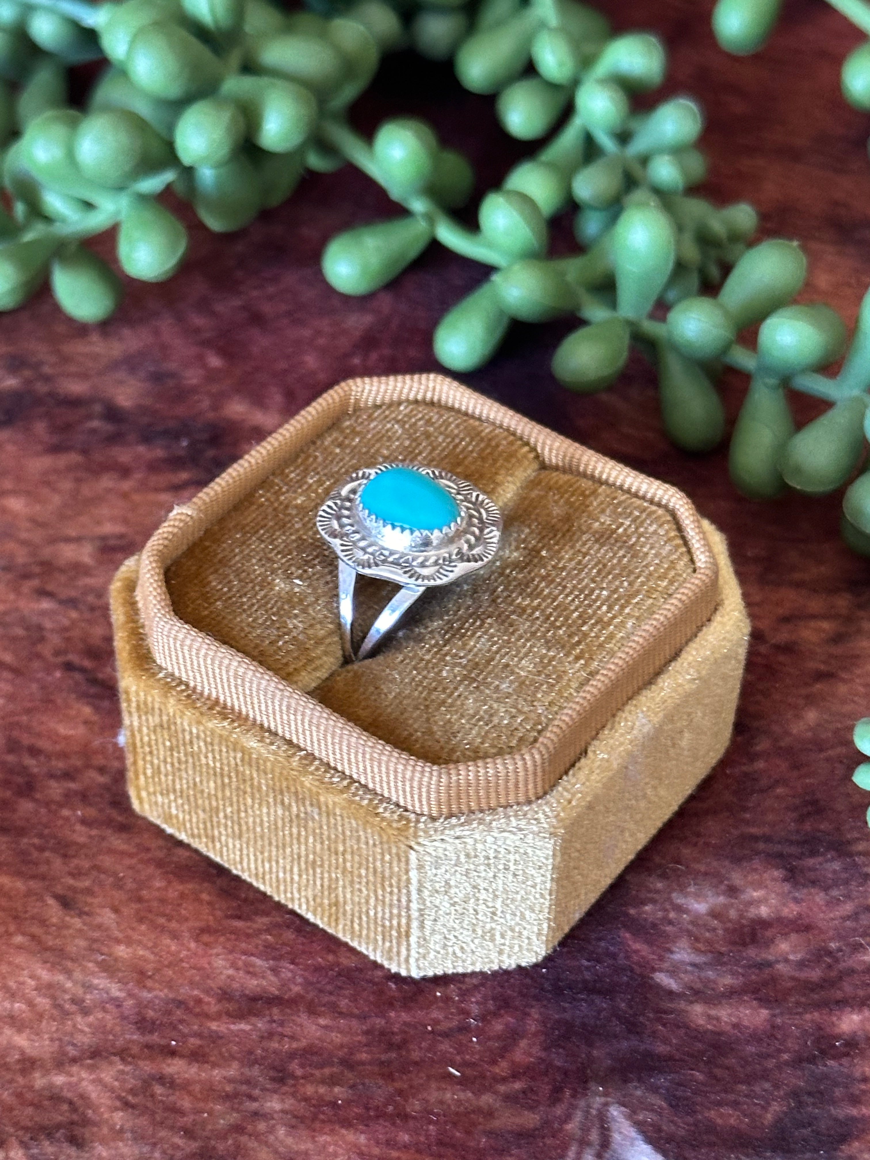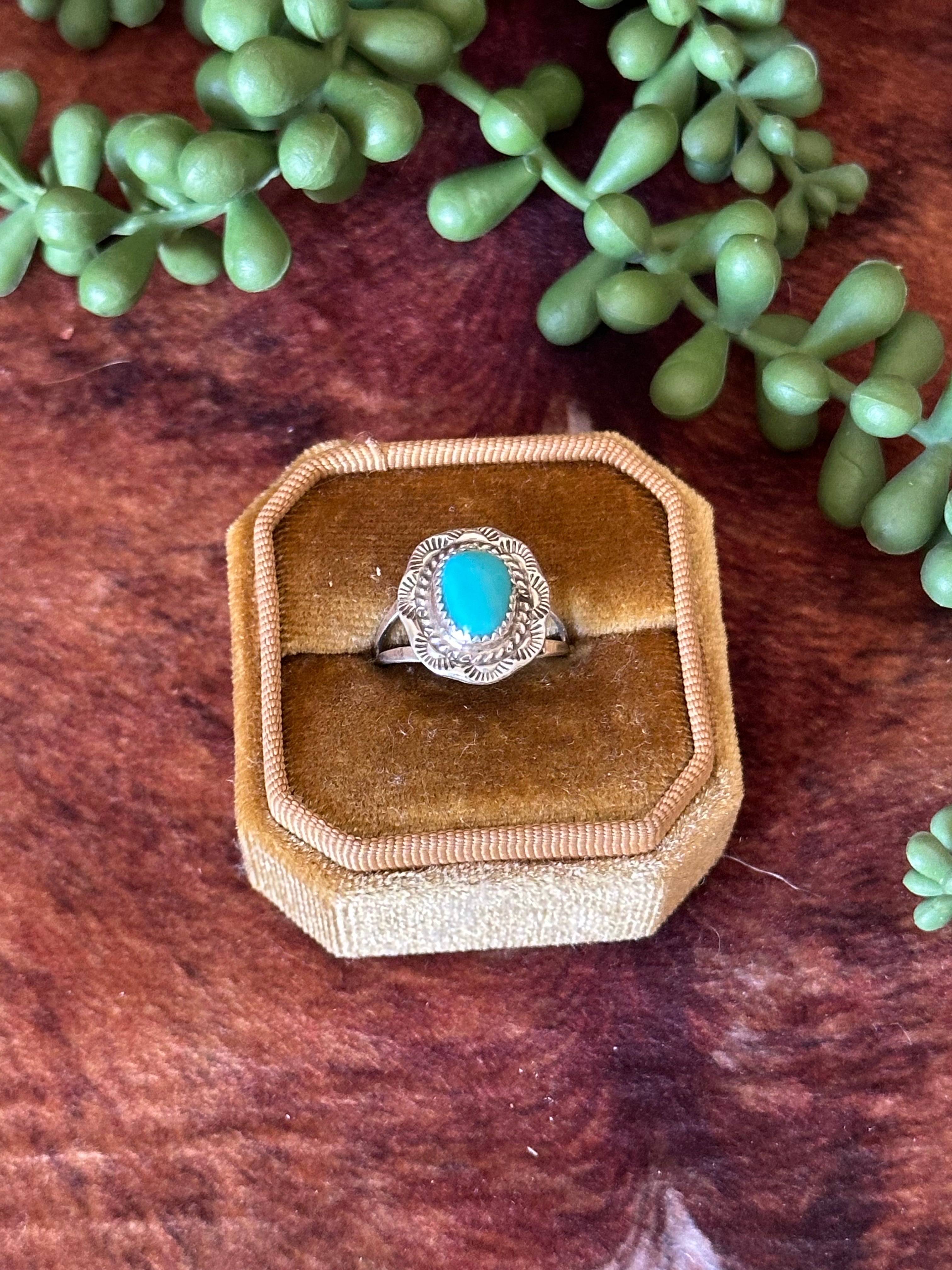 Navajo Made Kingman Turquoise & Sterling Silver Ring Size 7.5