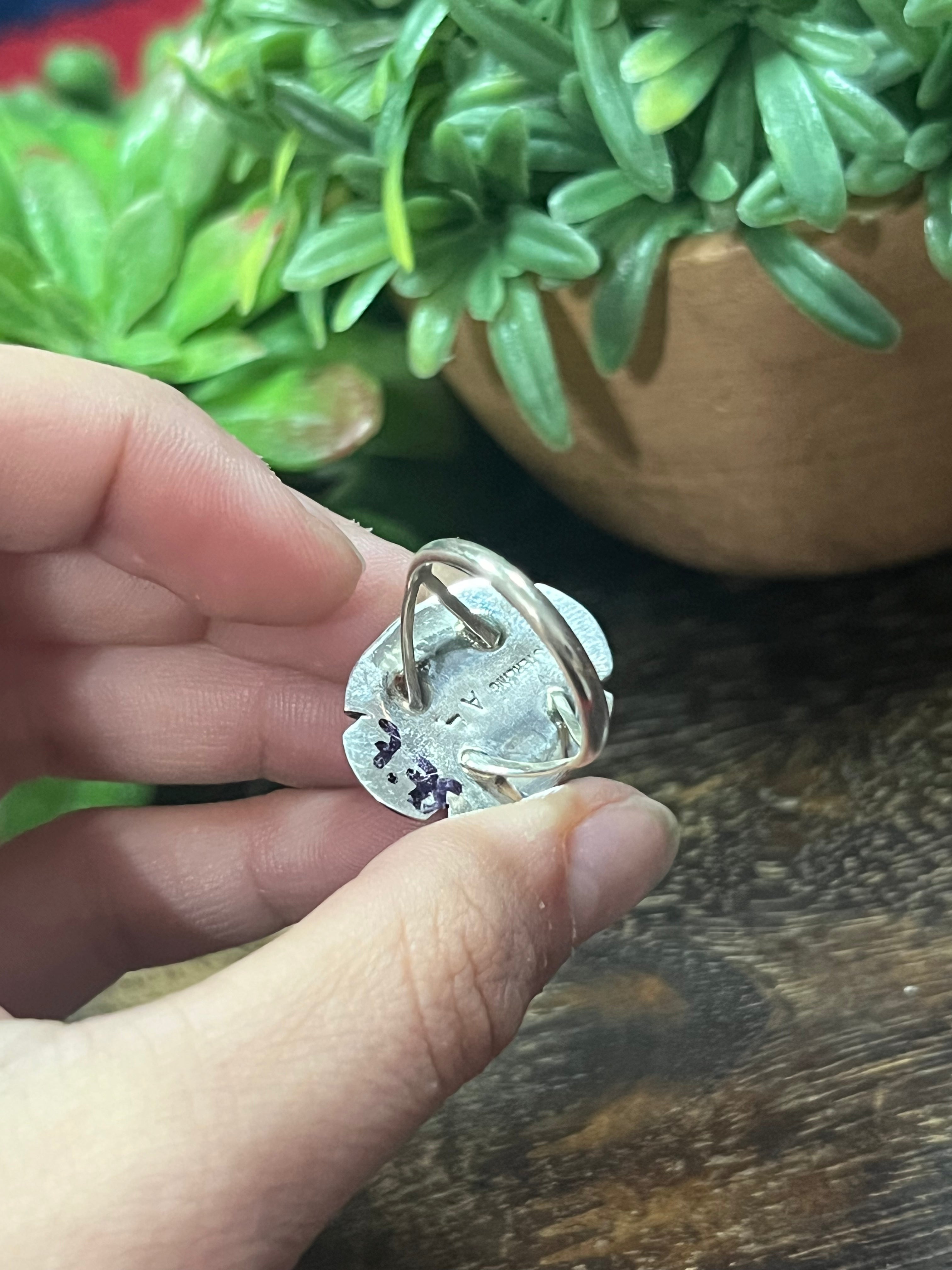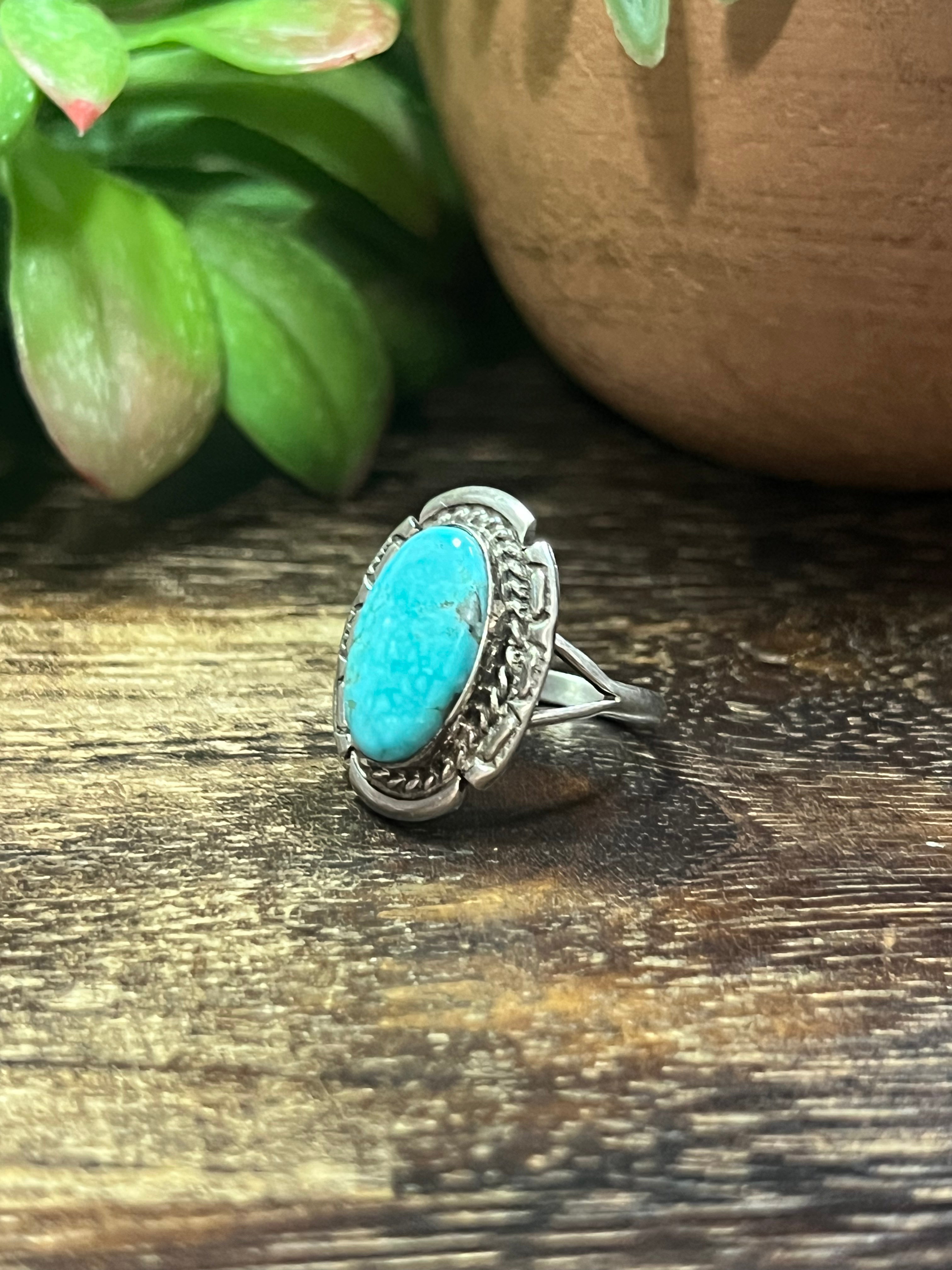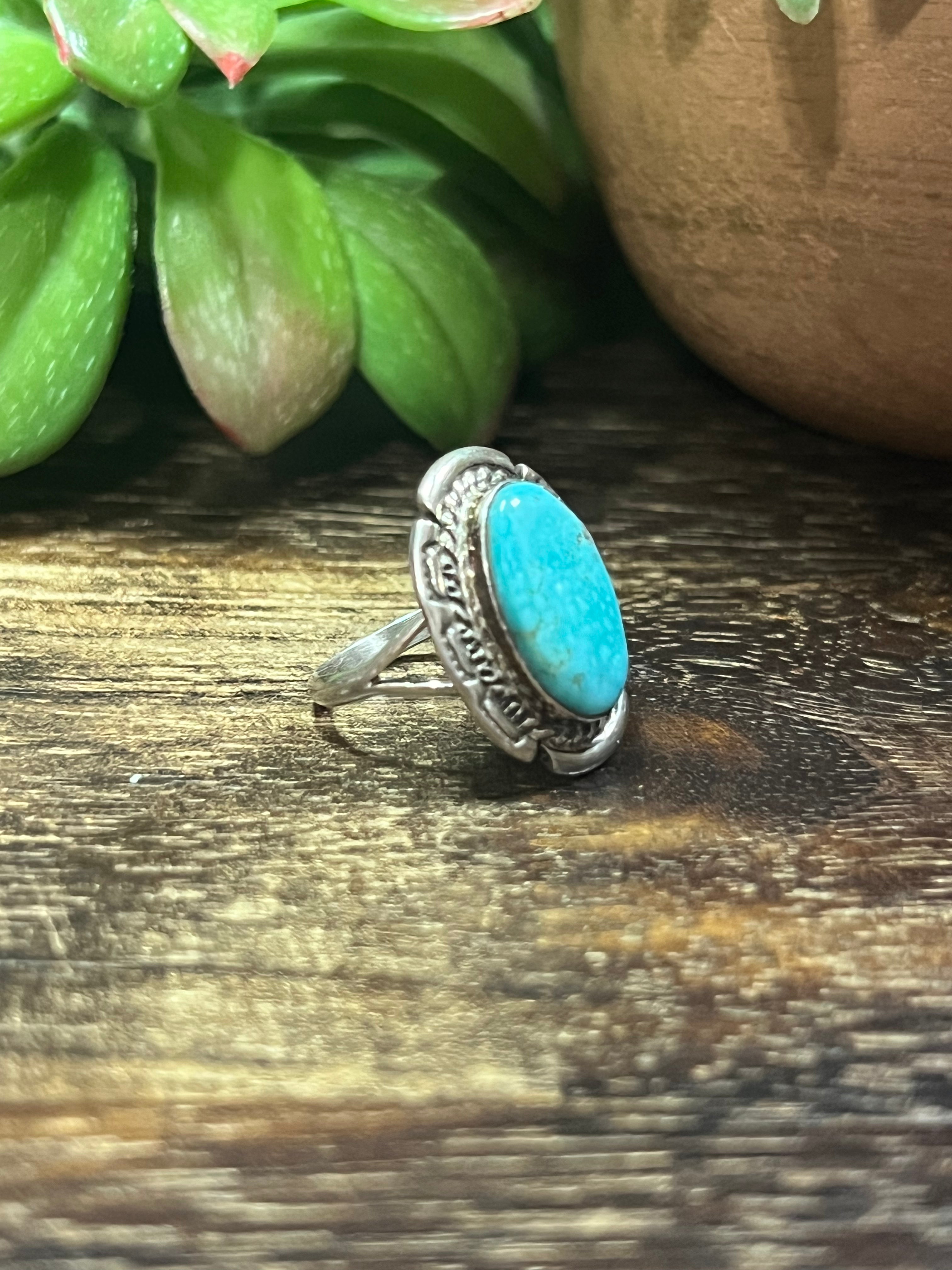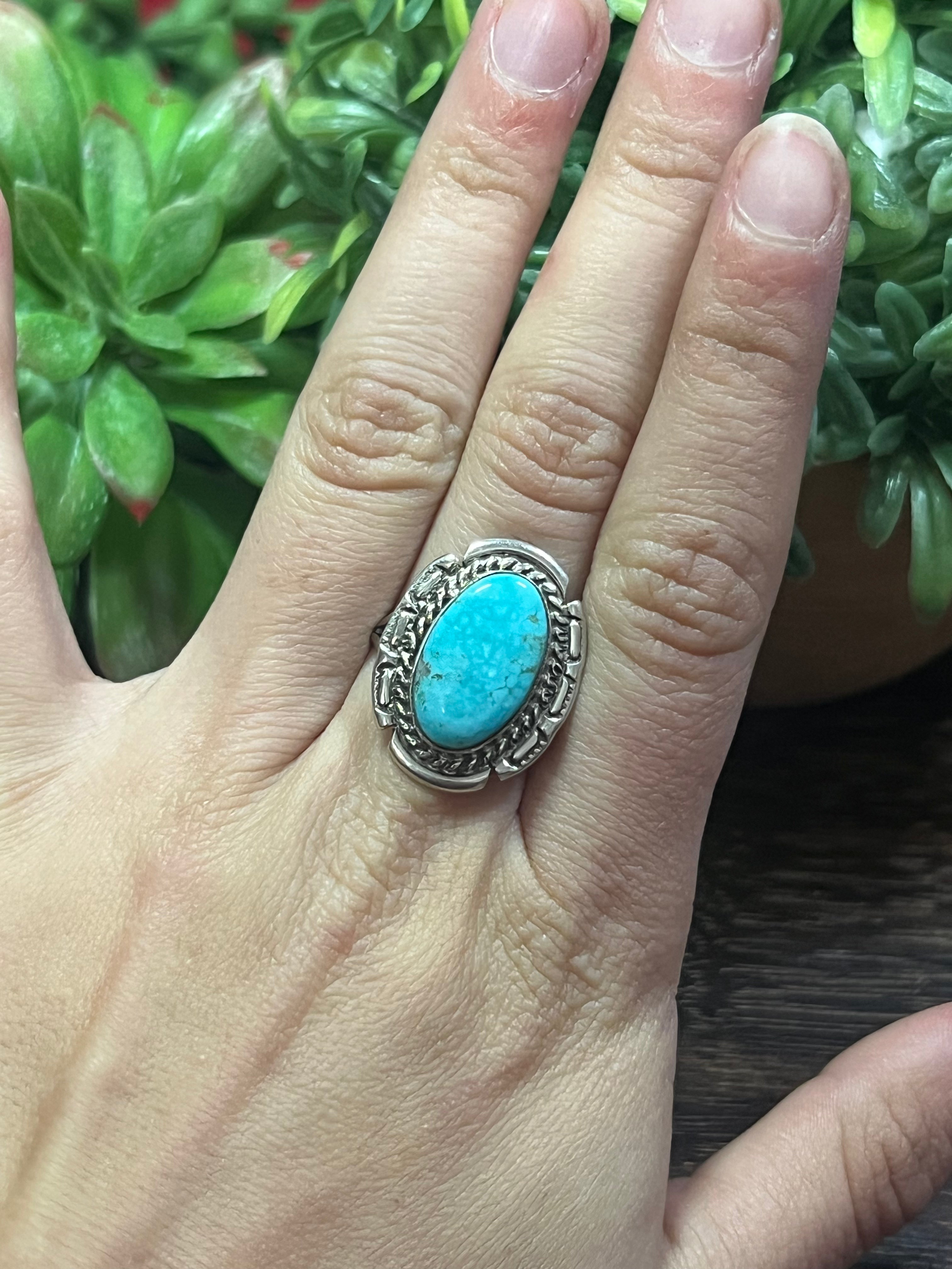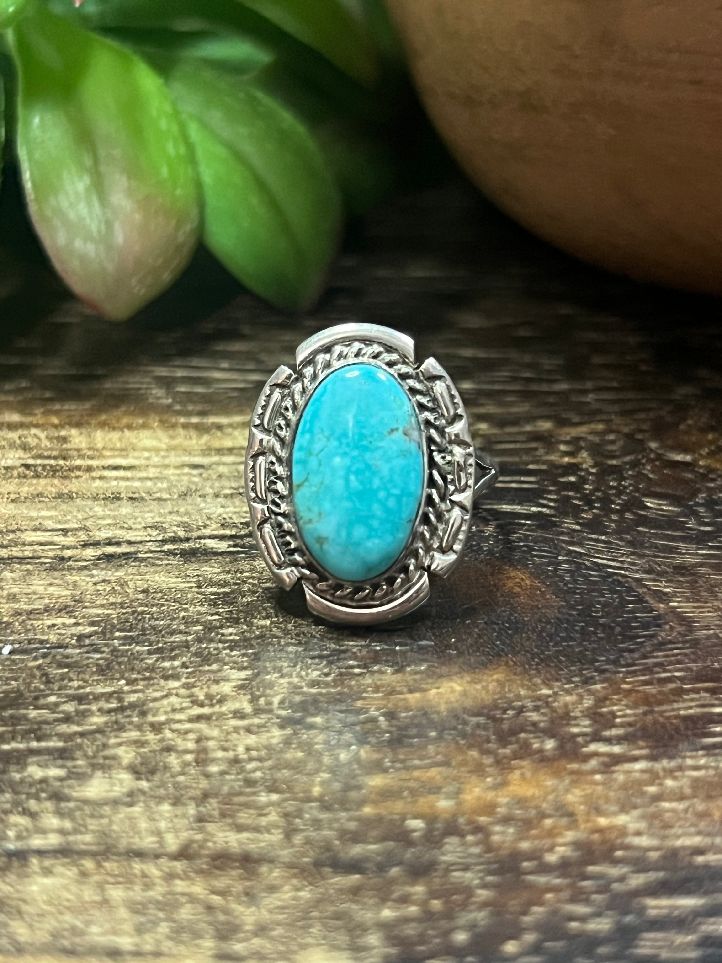 Navajo Made Kingman Turquoise & Sterling Silver Ring Size 7.75
