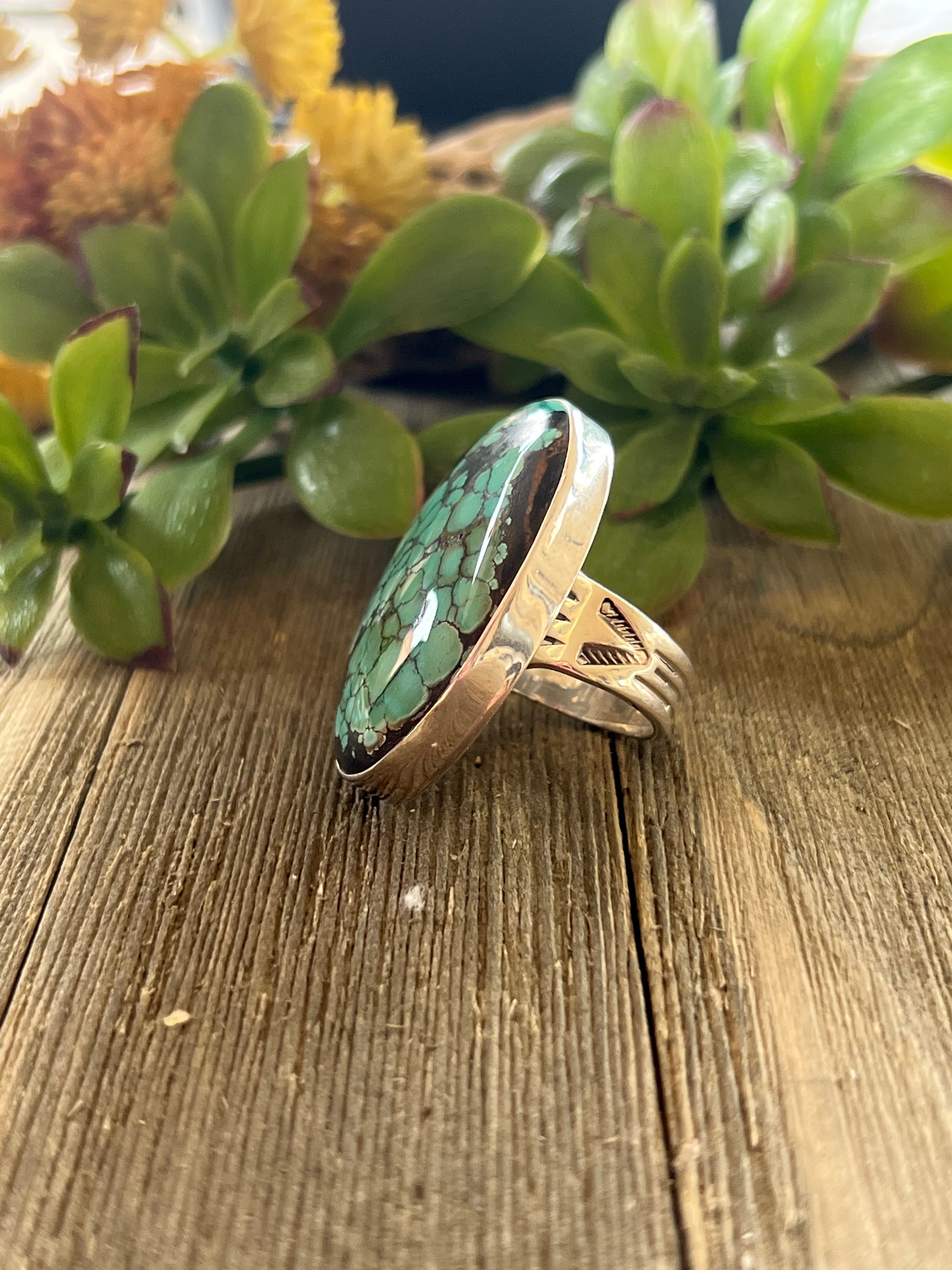 Navajo Made Kingman Turquoise & Sterling Silver Ring Size 7.75