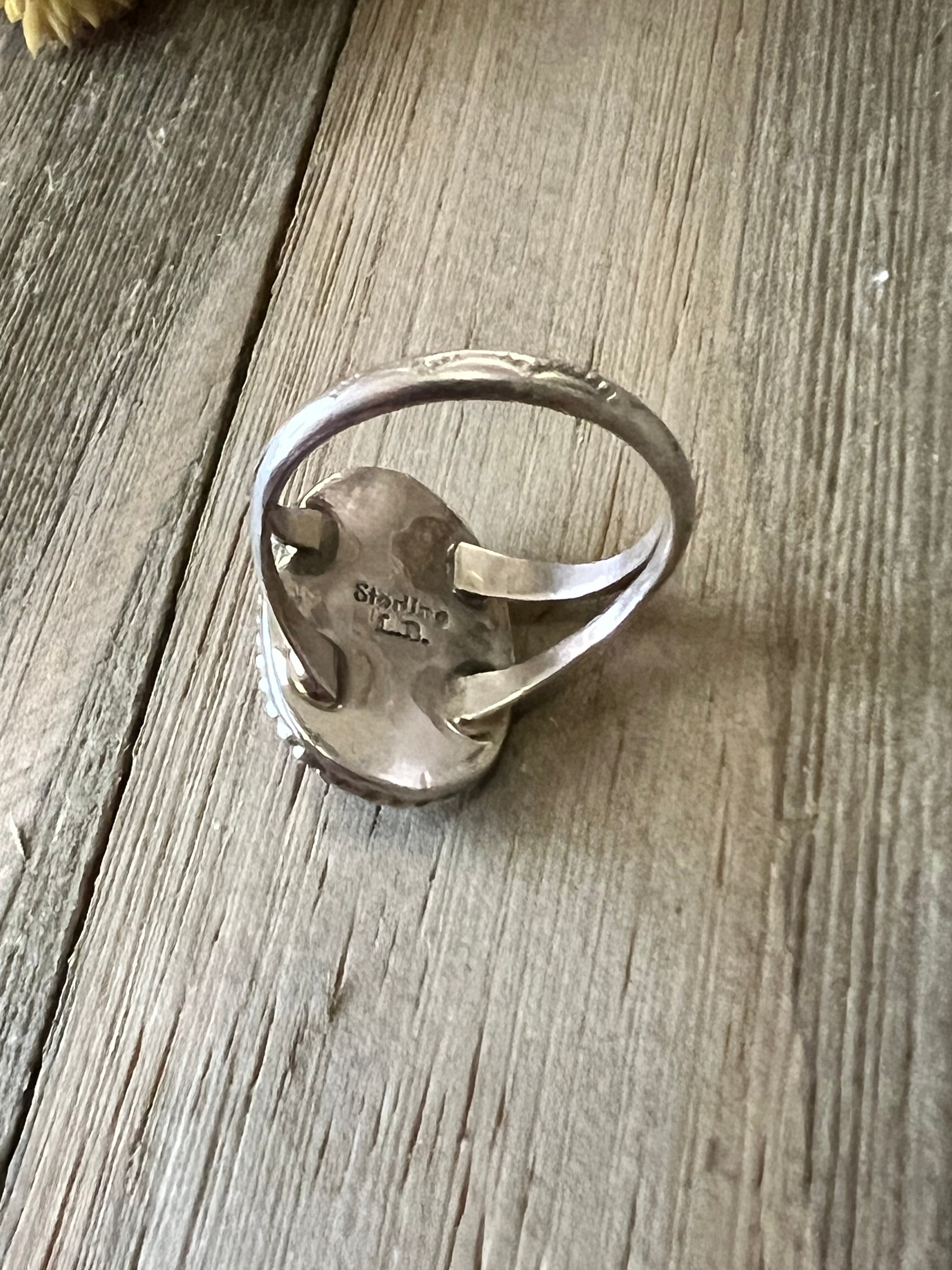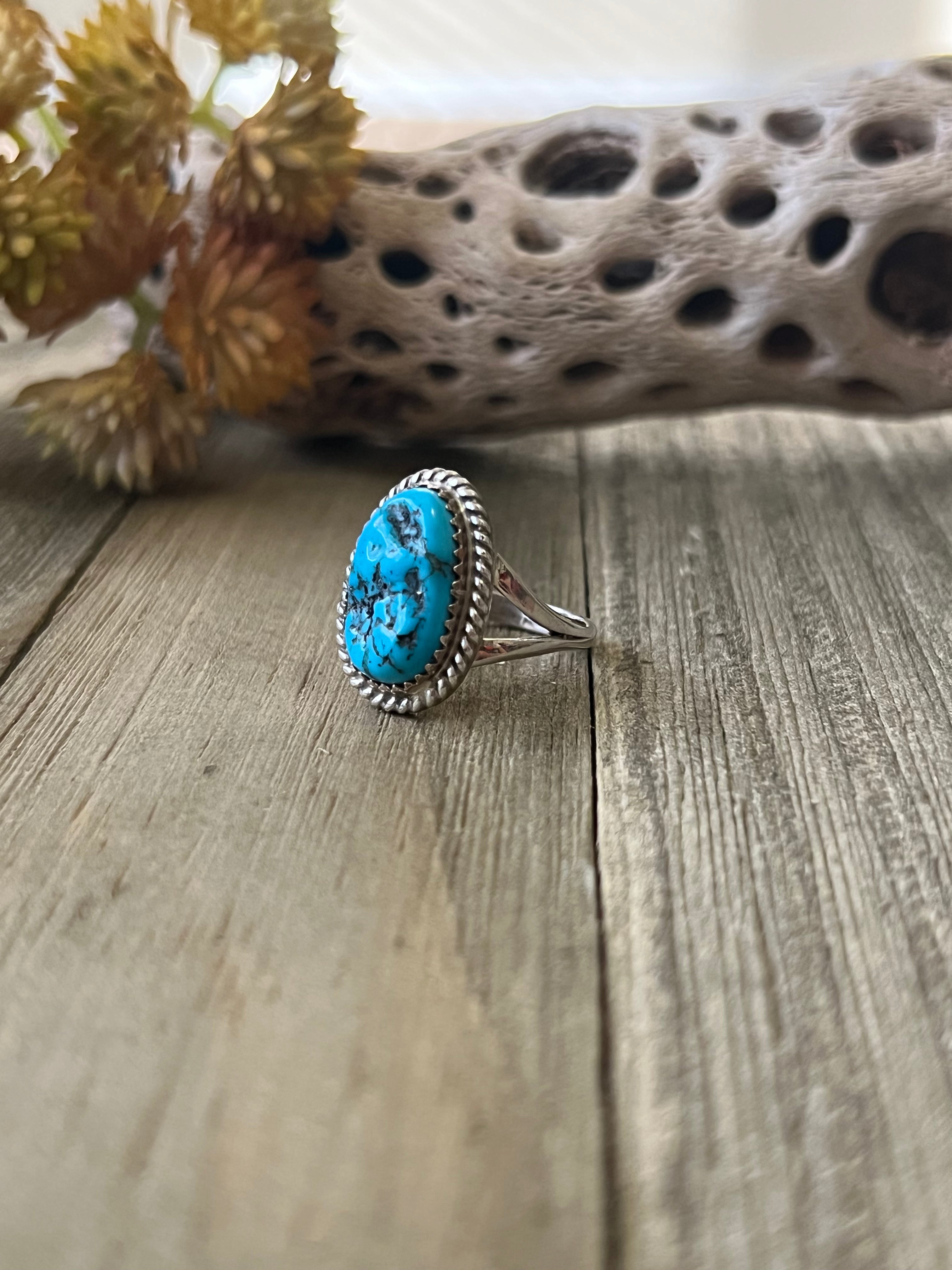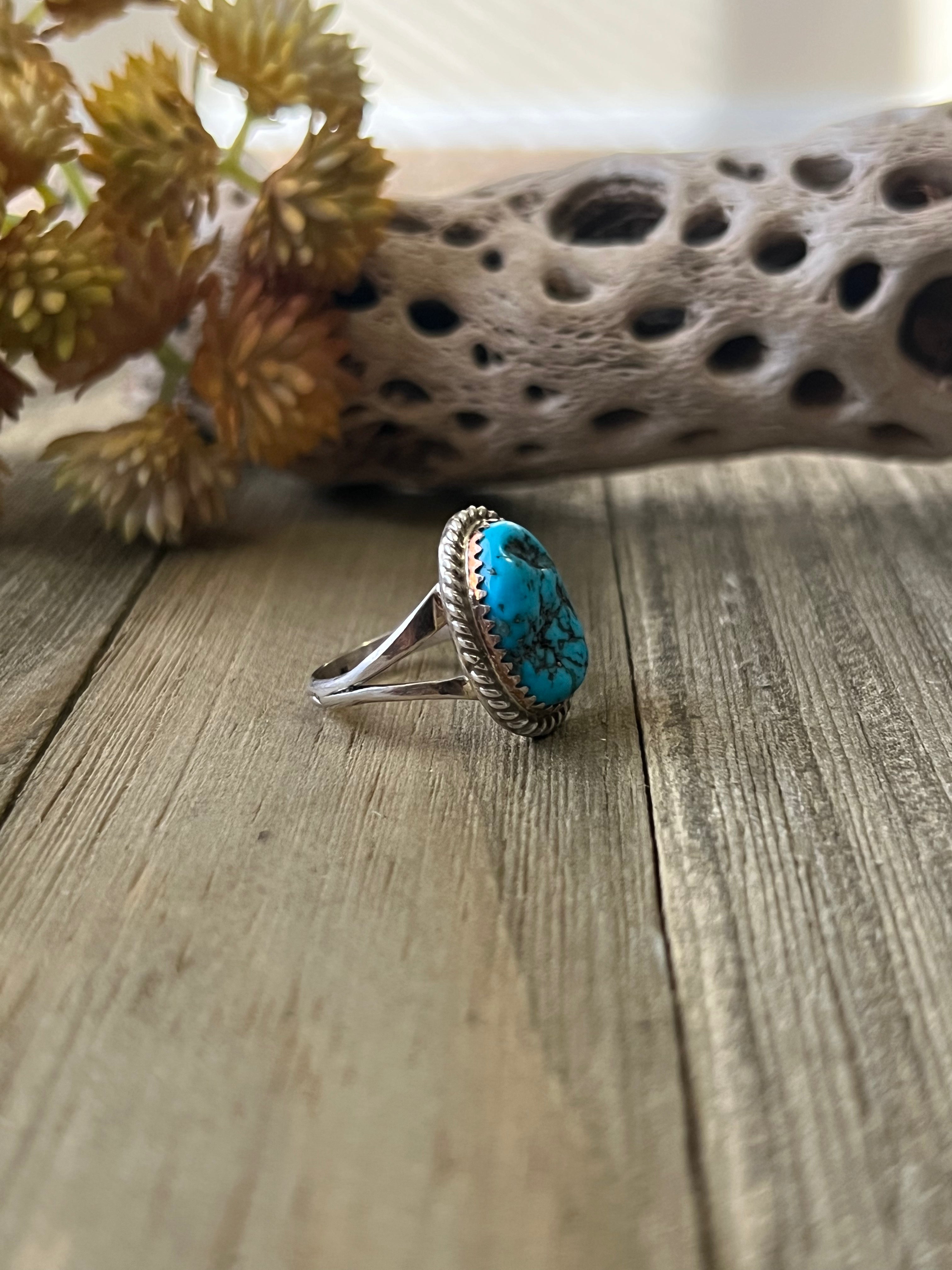Navajo Made Kingman Turquoise & Sterling Silver Ring Size 7.75