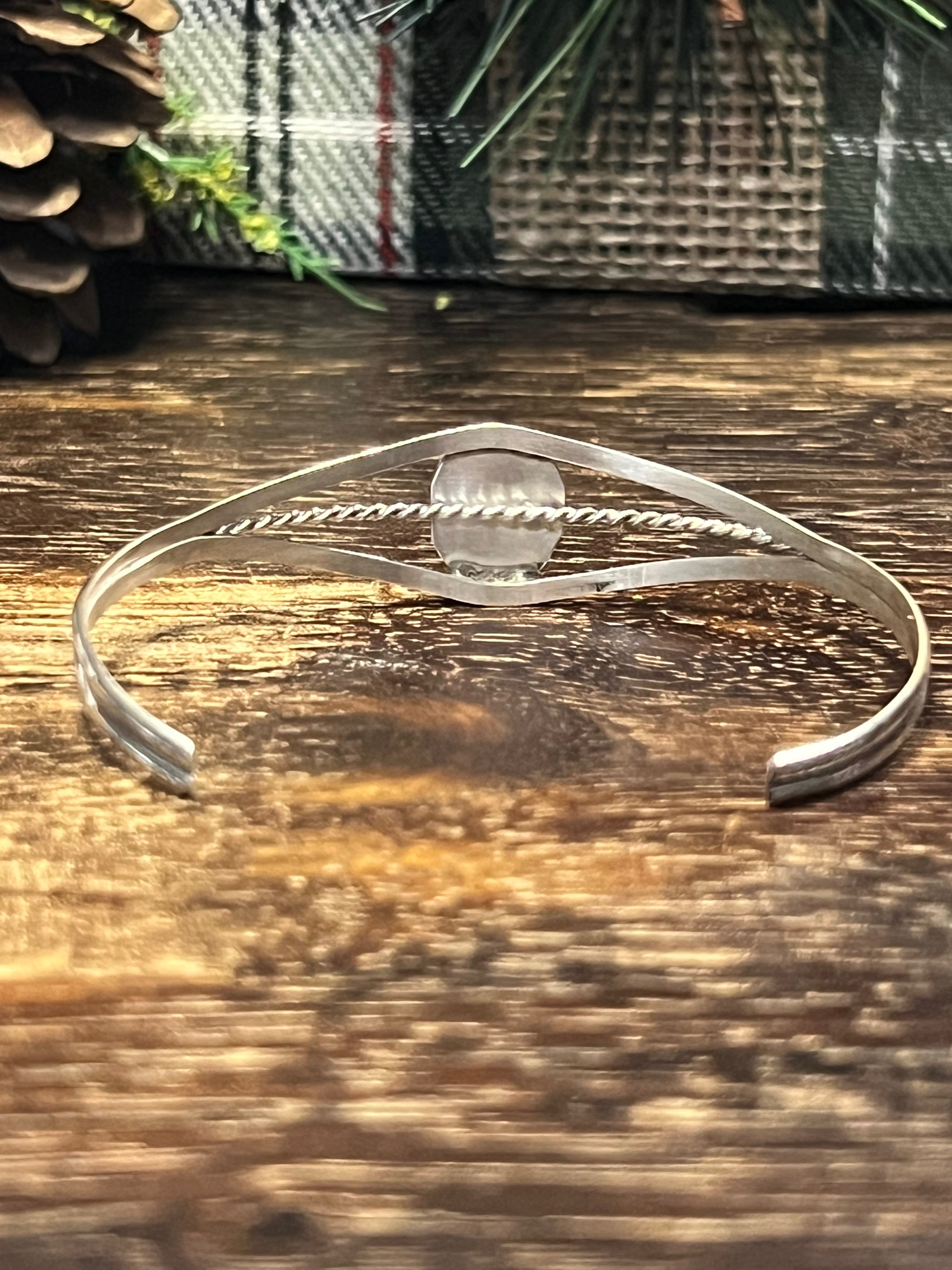Navajo Made Kingman Turquoise & Sterling Silver Shadowbox Cuff Bracelet