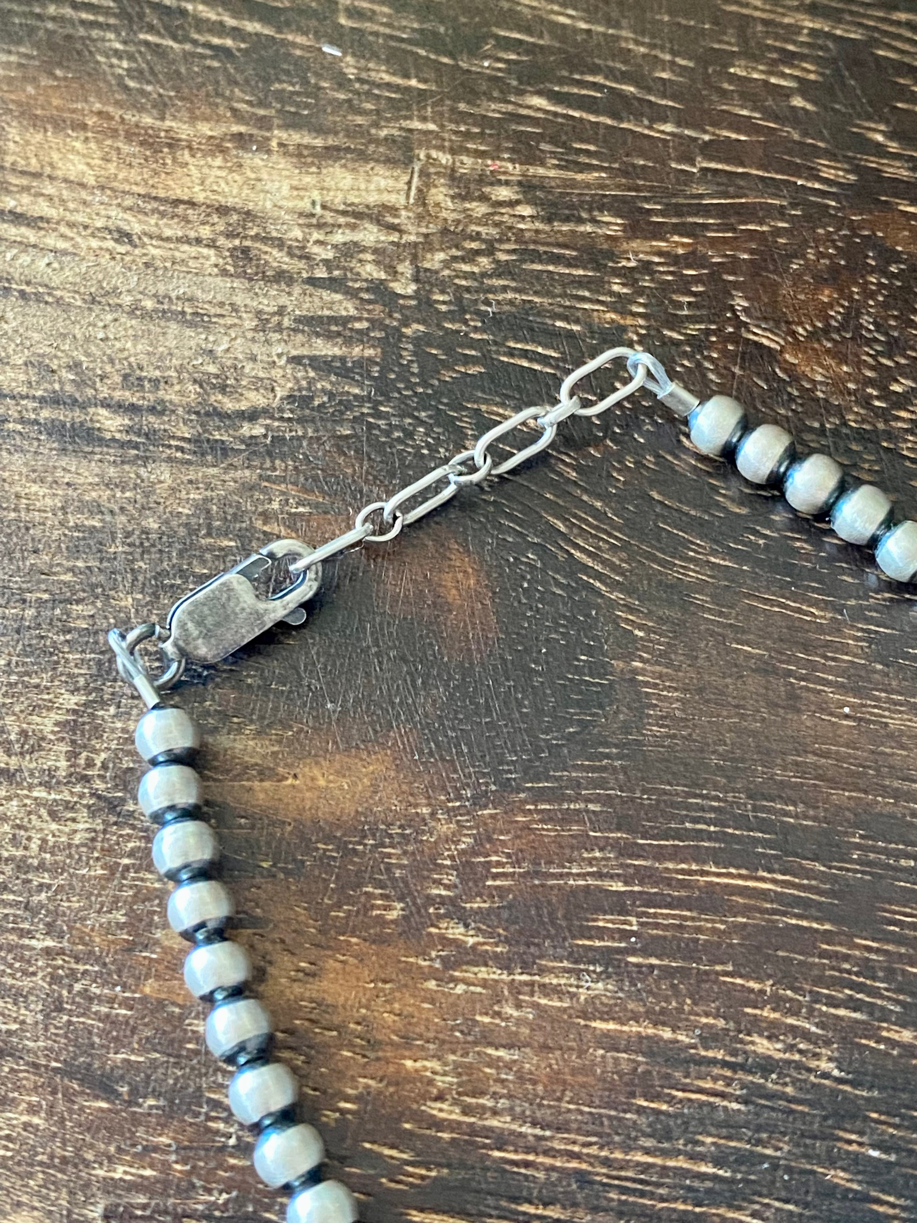 Navajo Made Lapis & Sterling Silver Pearl Bracelet