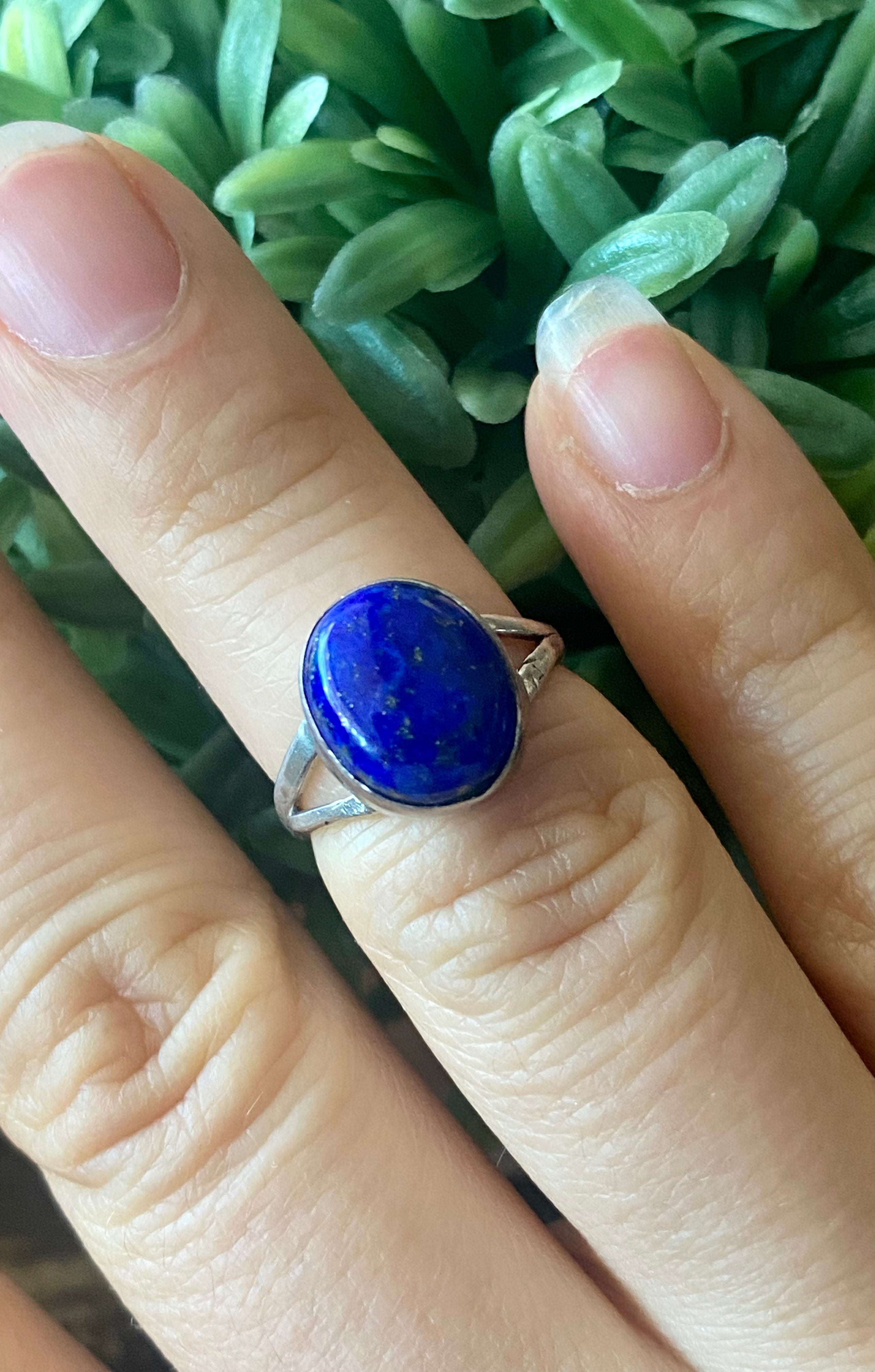 Navajo Made Lapis & Sterling Silver Ring Size 5.5