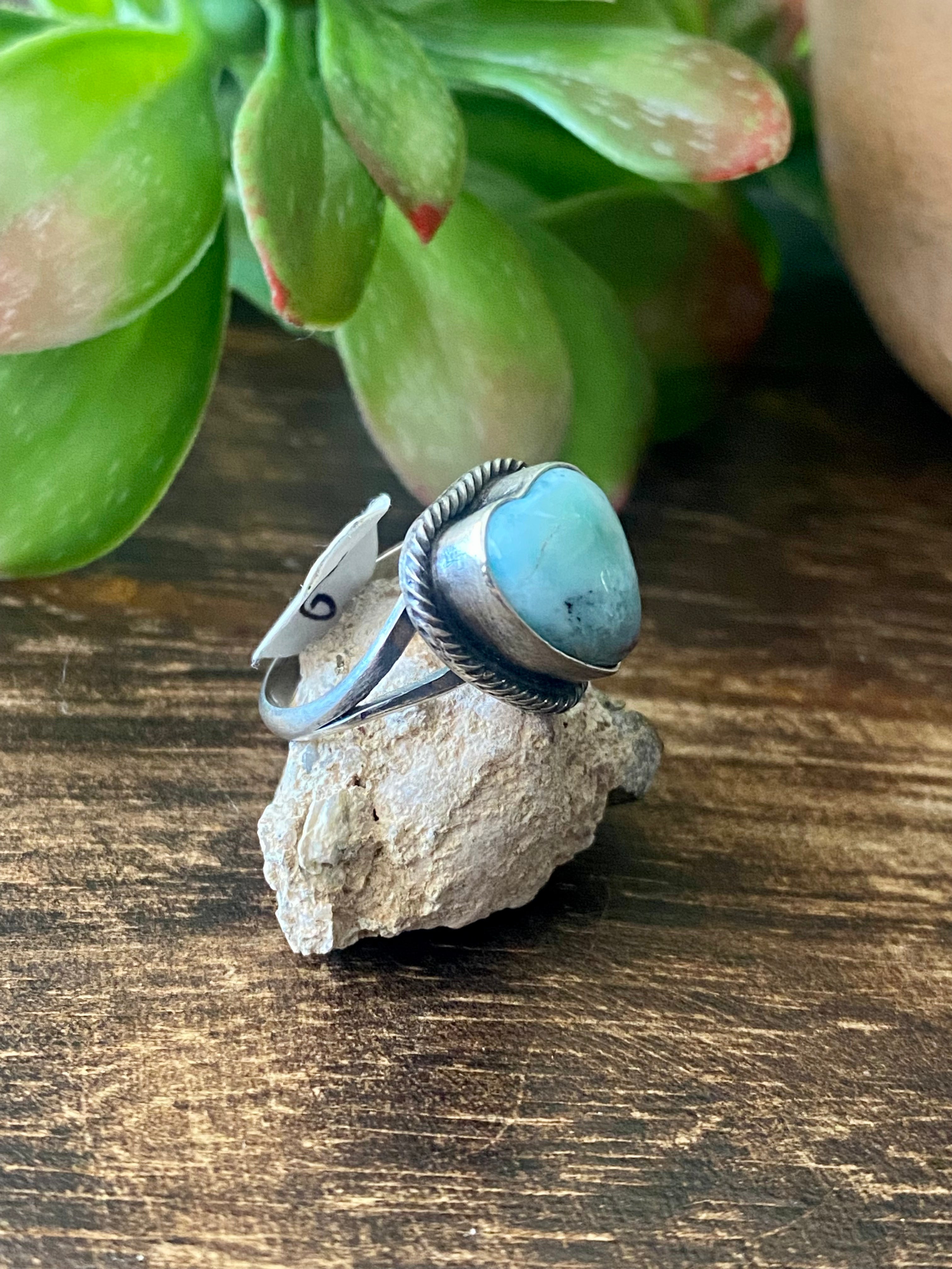 Navajo Made Larimar & Sterling Silver Ring Size 5.75