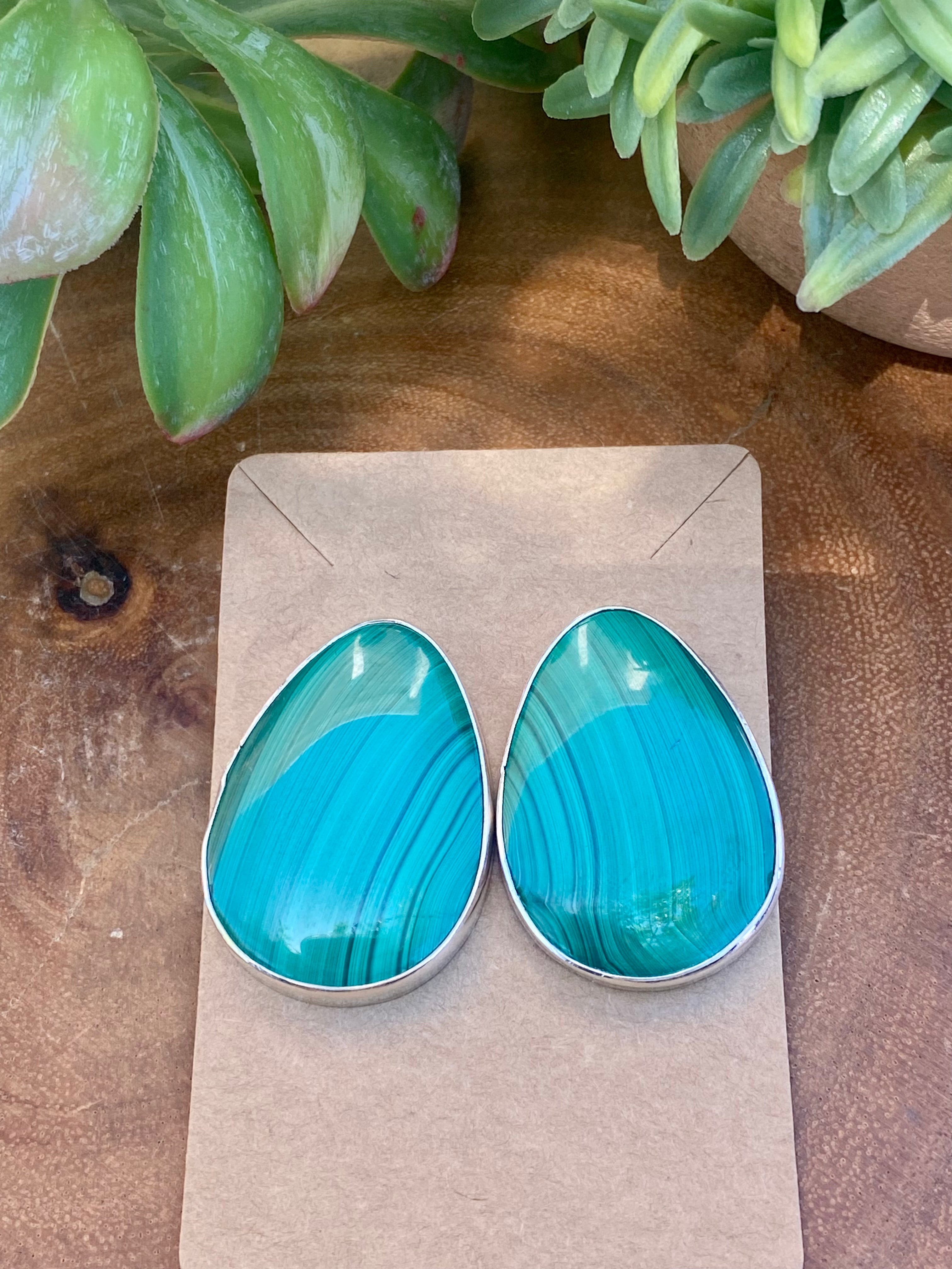 Navajo Made Malachite & Sterling Silver Post Dangle Earrings