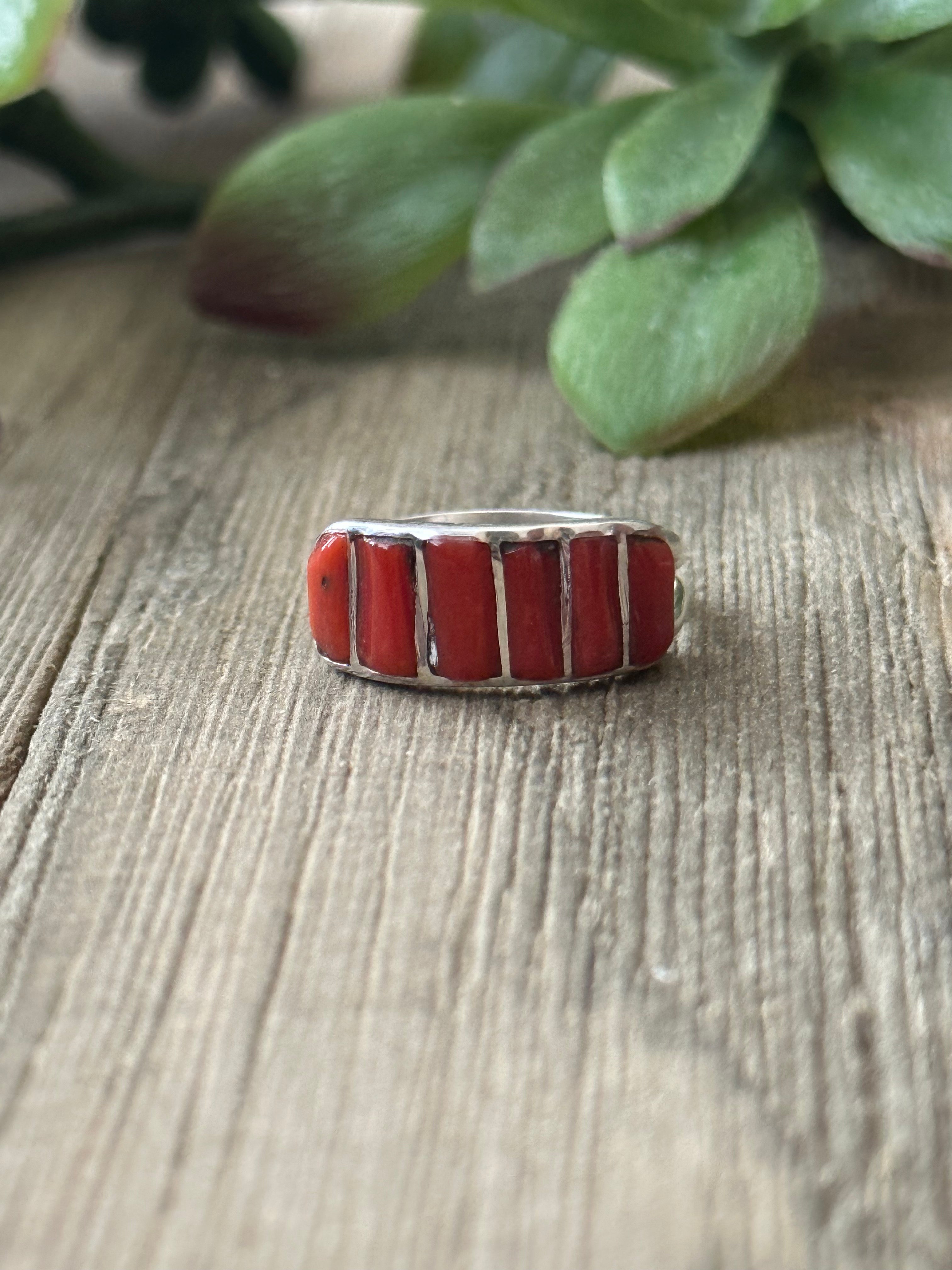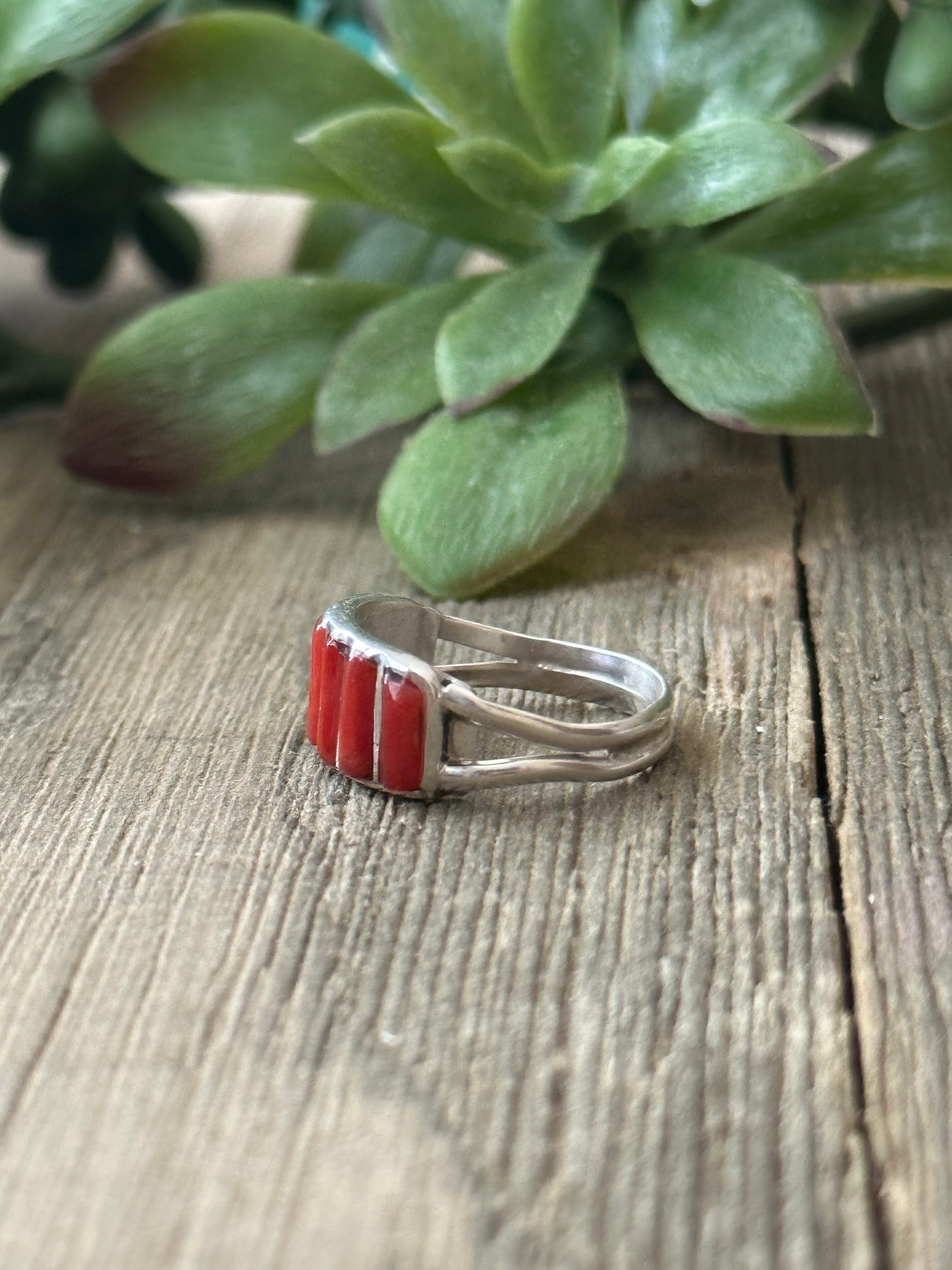 Navajo Made Mediterranean Coral & Sterling Silver Ring