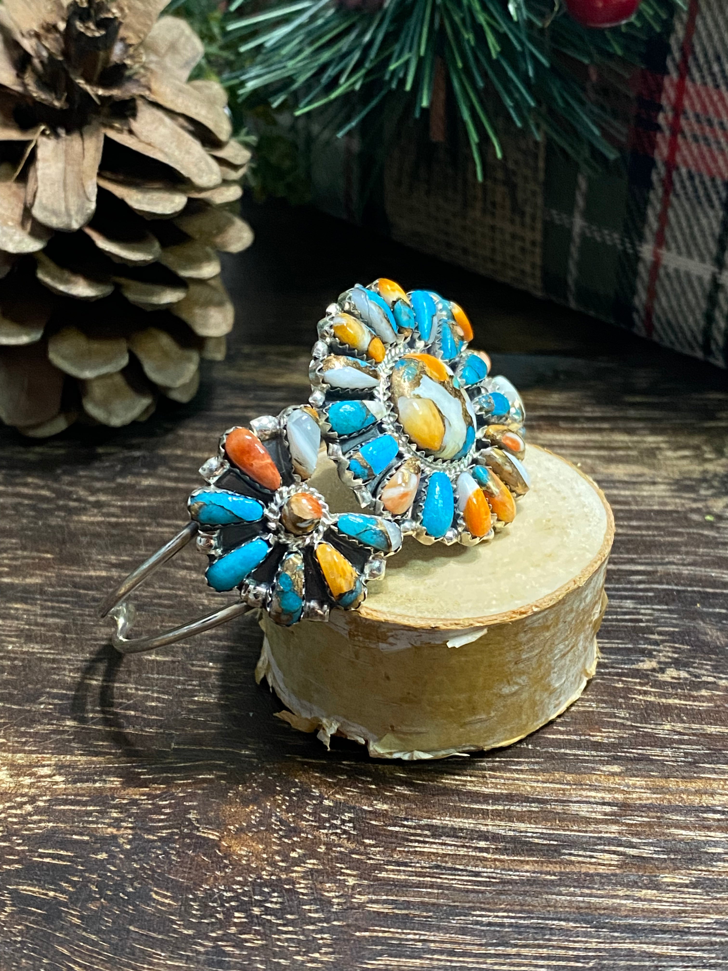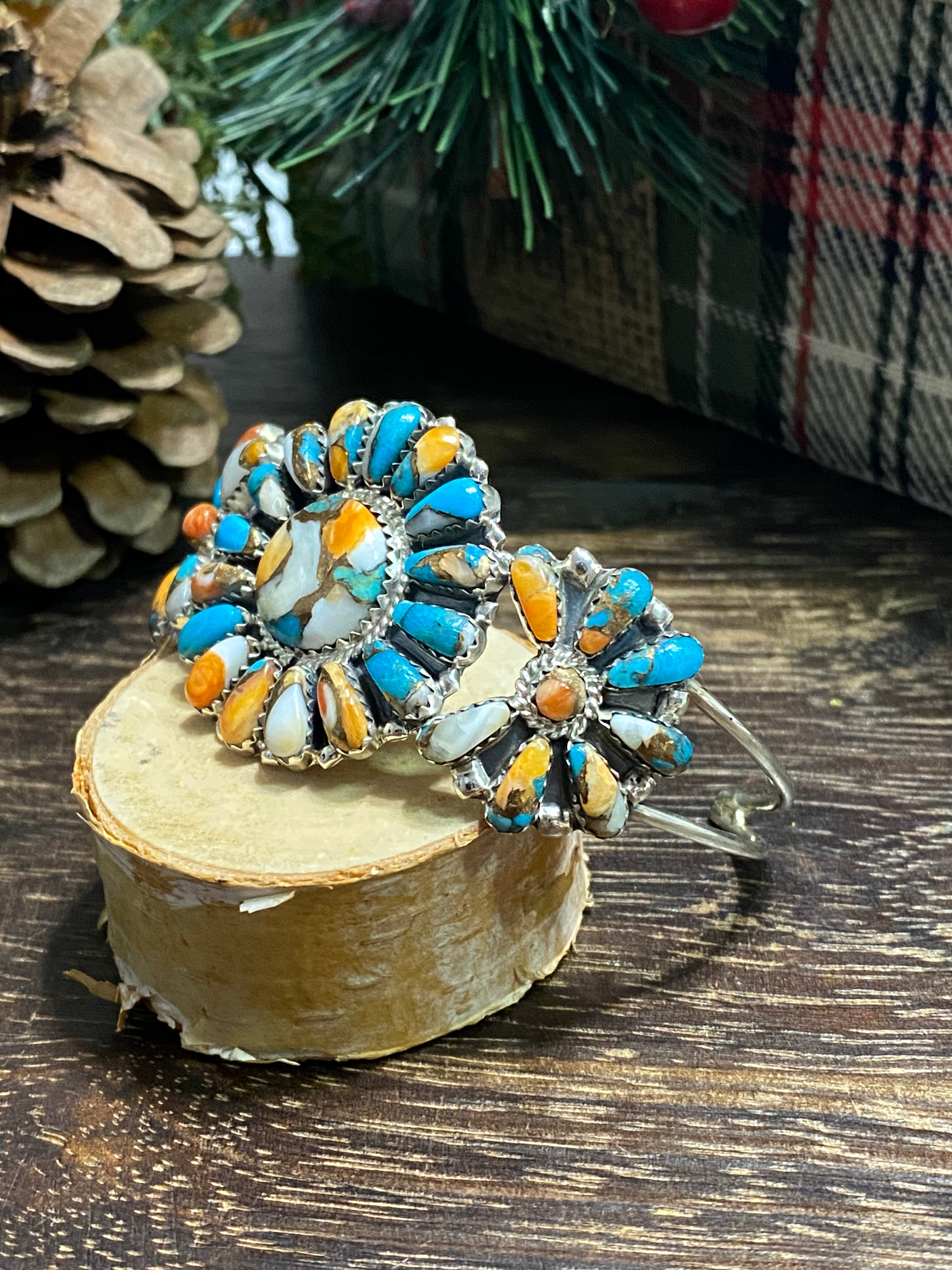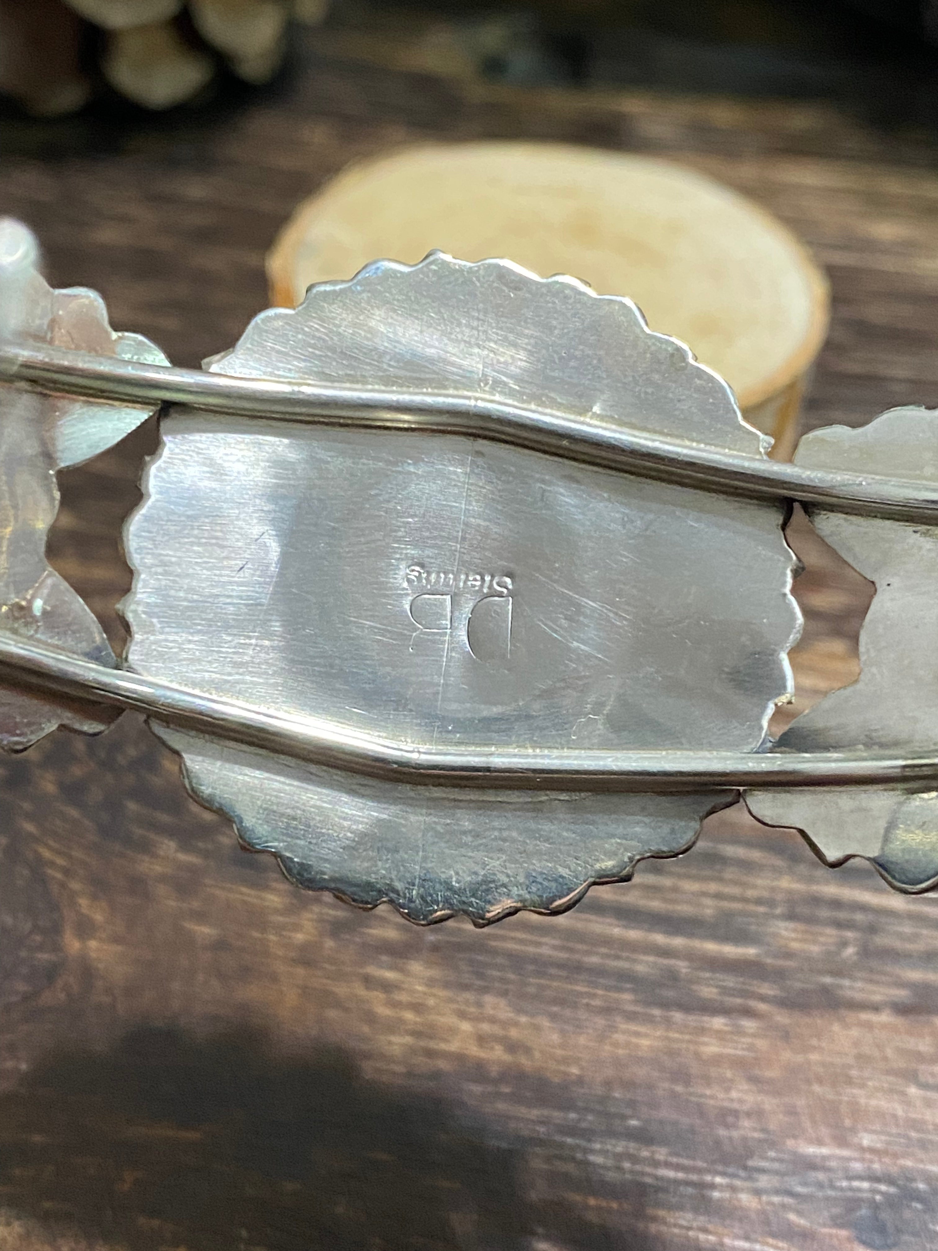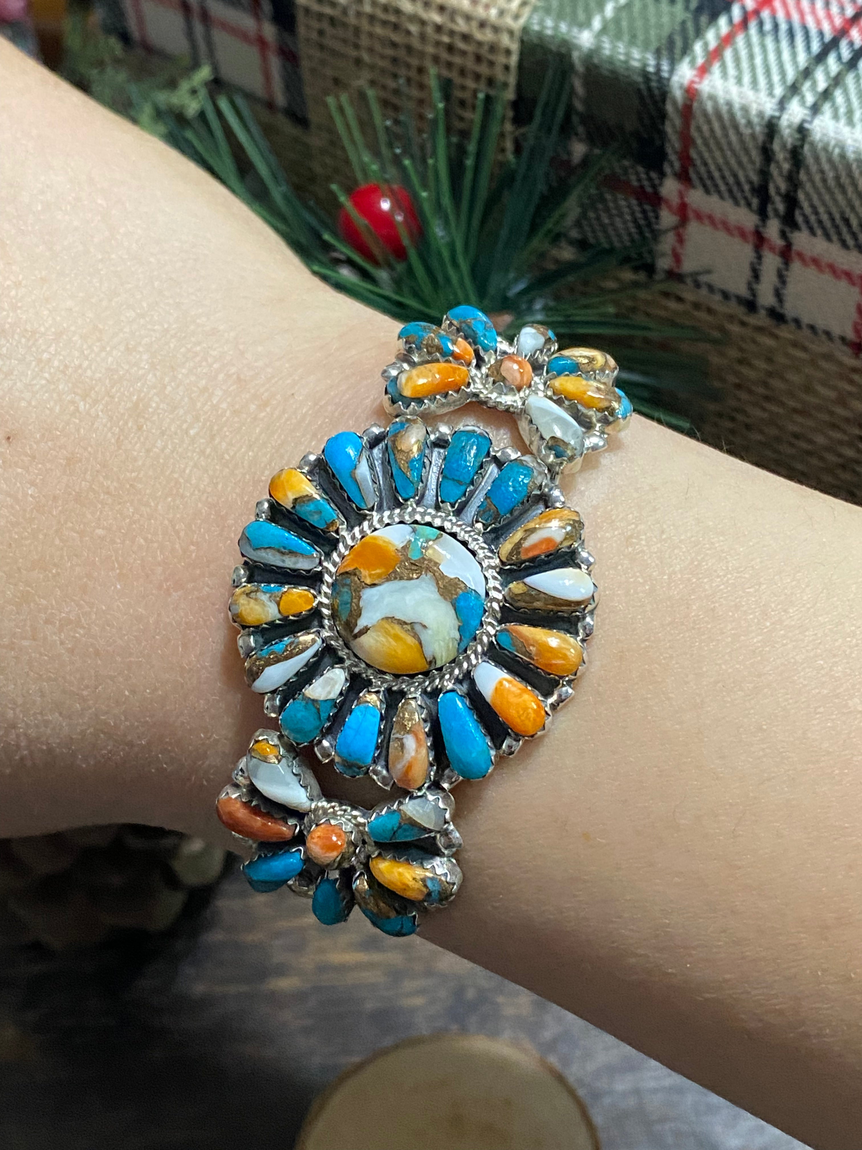 Navajo Made Mohave Turquoise & Sterling Silver Cluster Cuff Bracelet