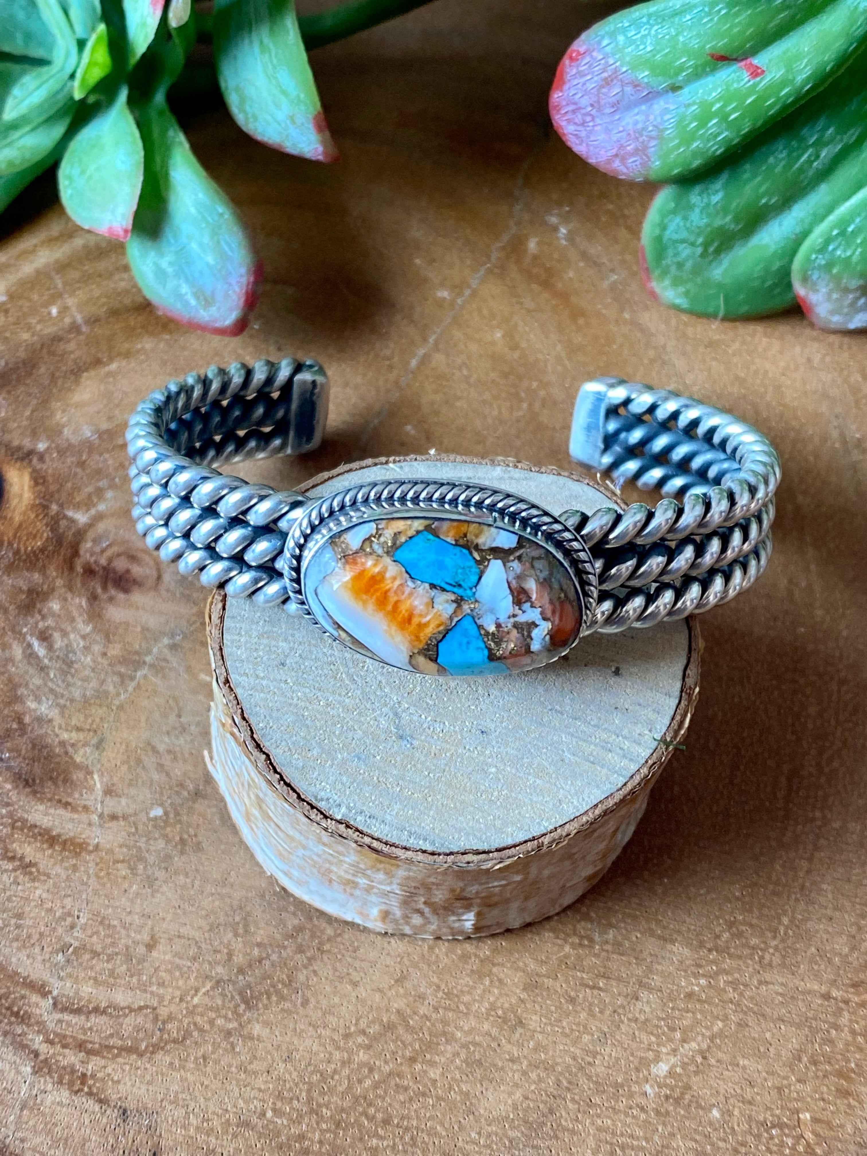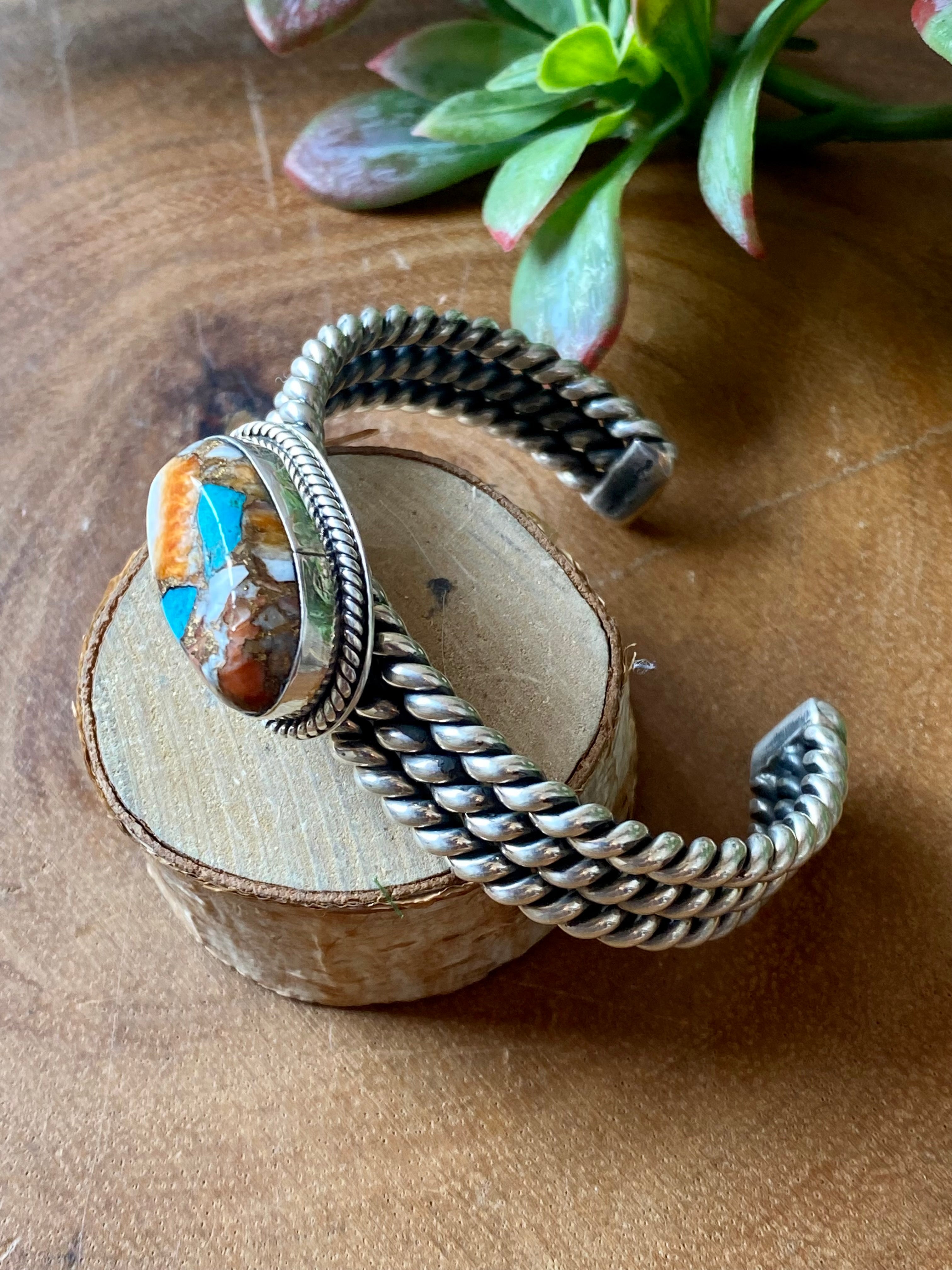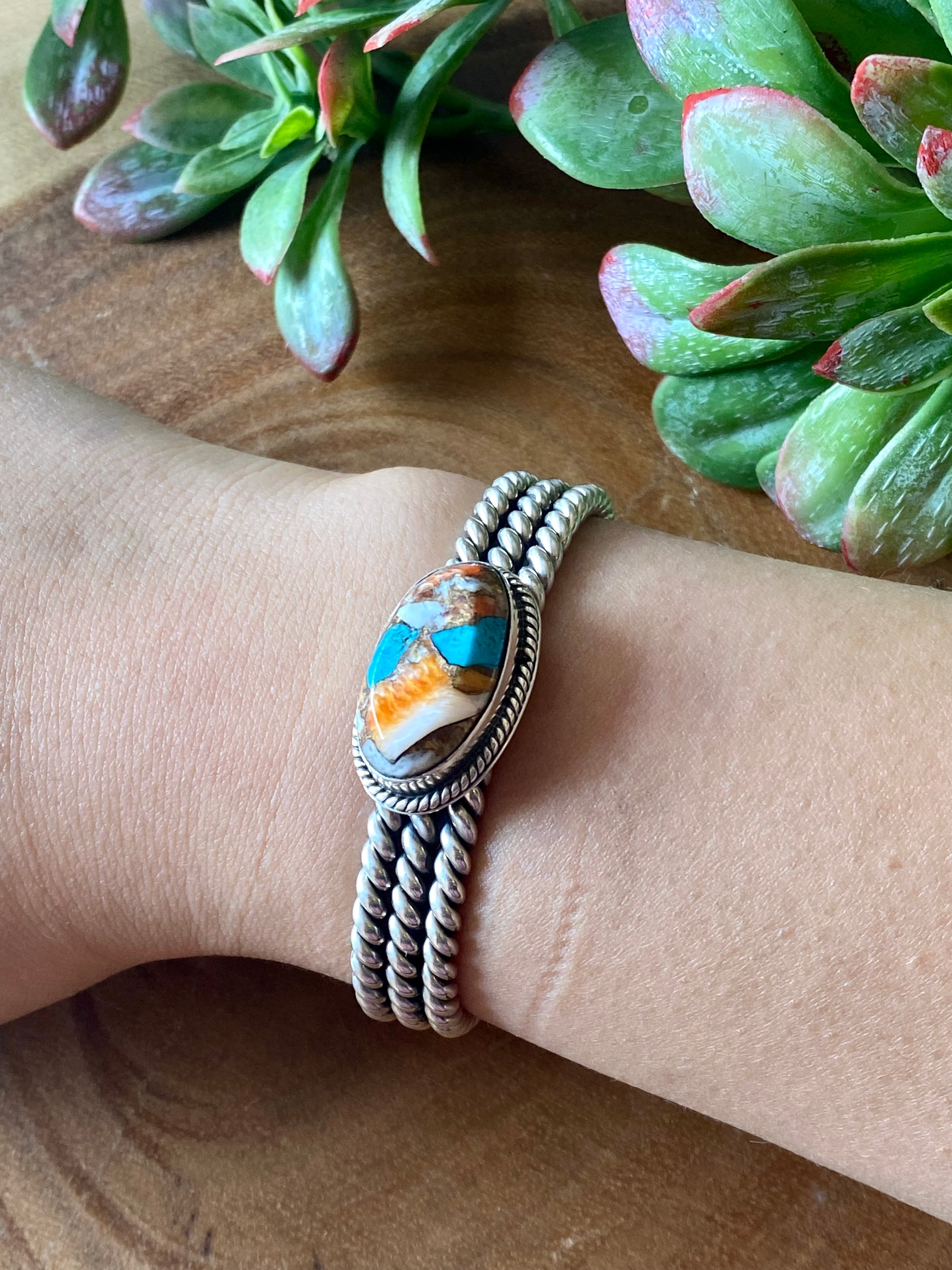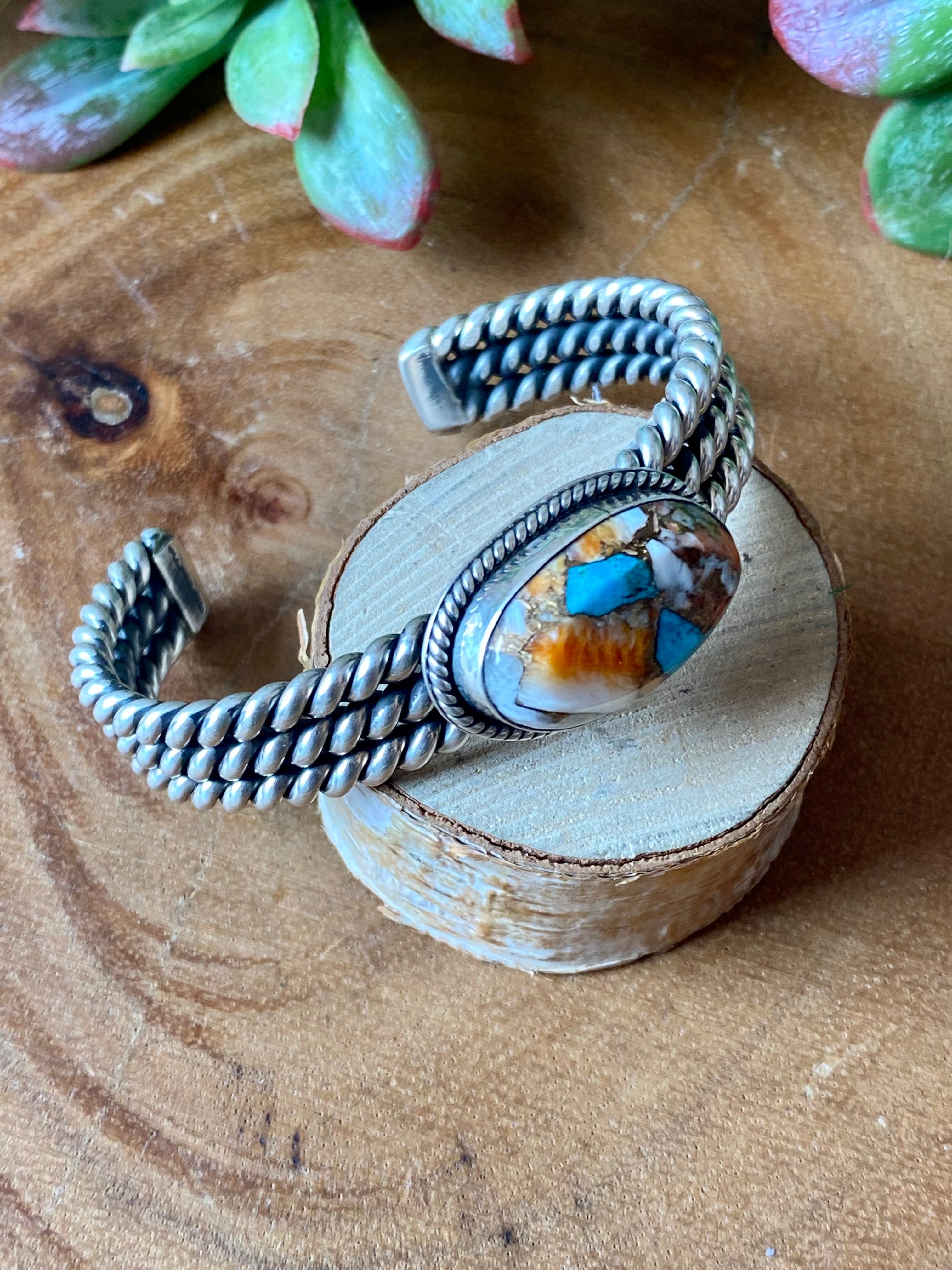 Navajo Made Mohave Turquoise & Sterling Silver Cuff Bracelet