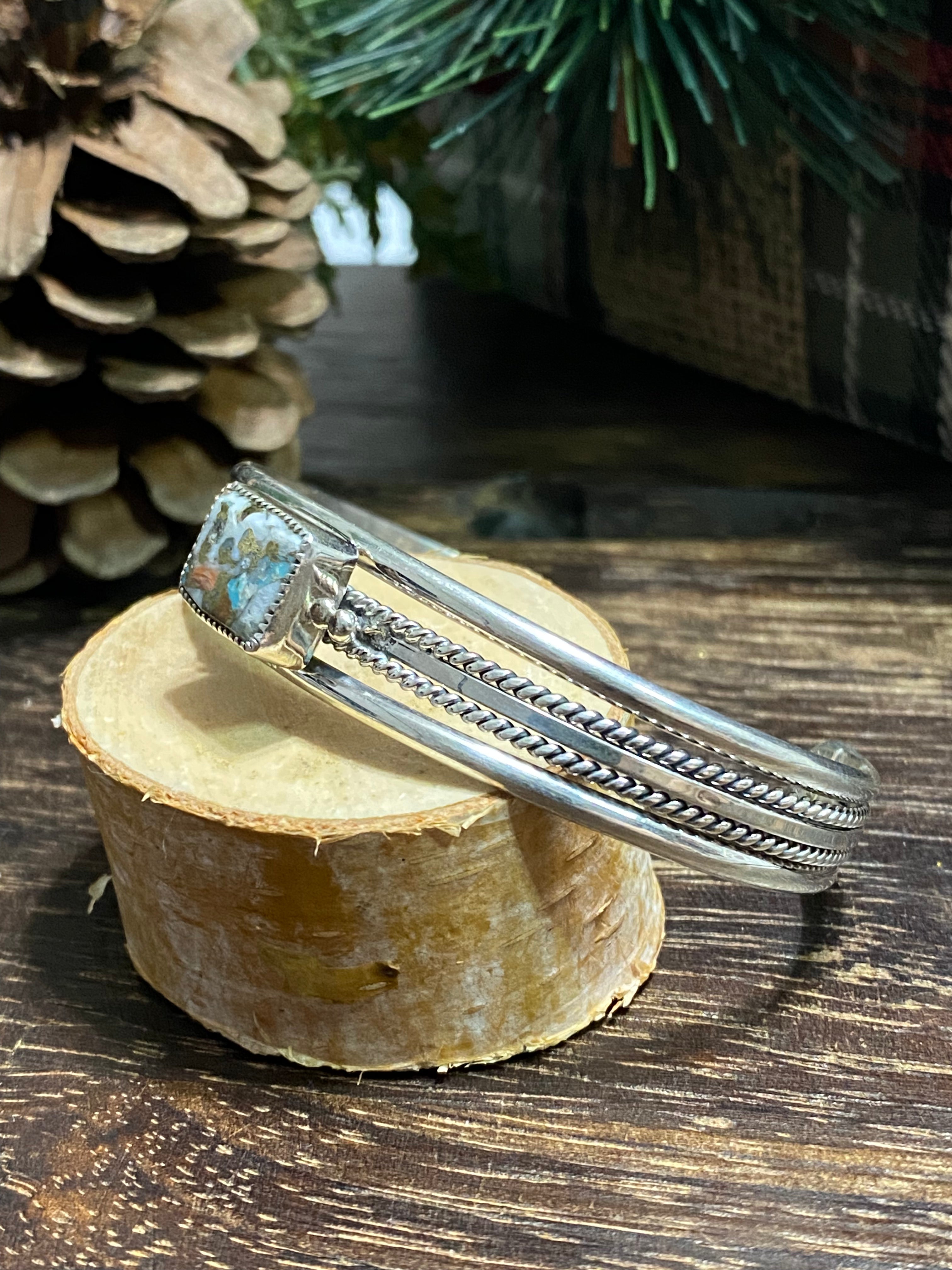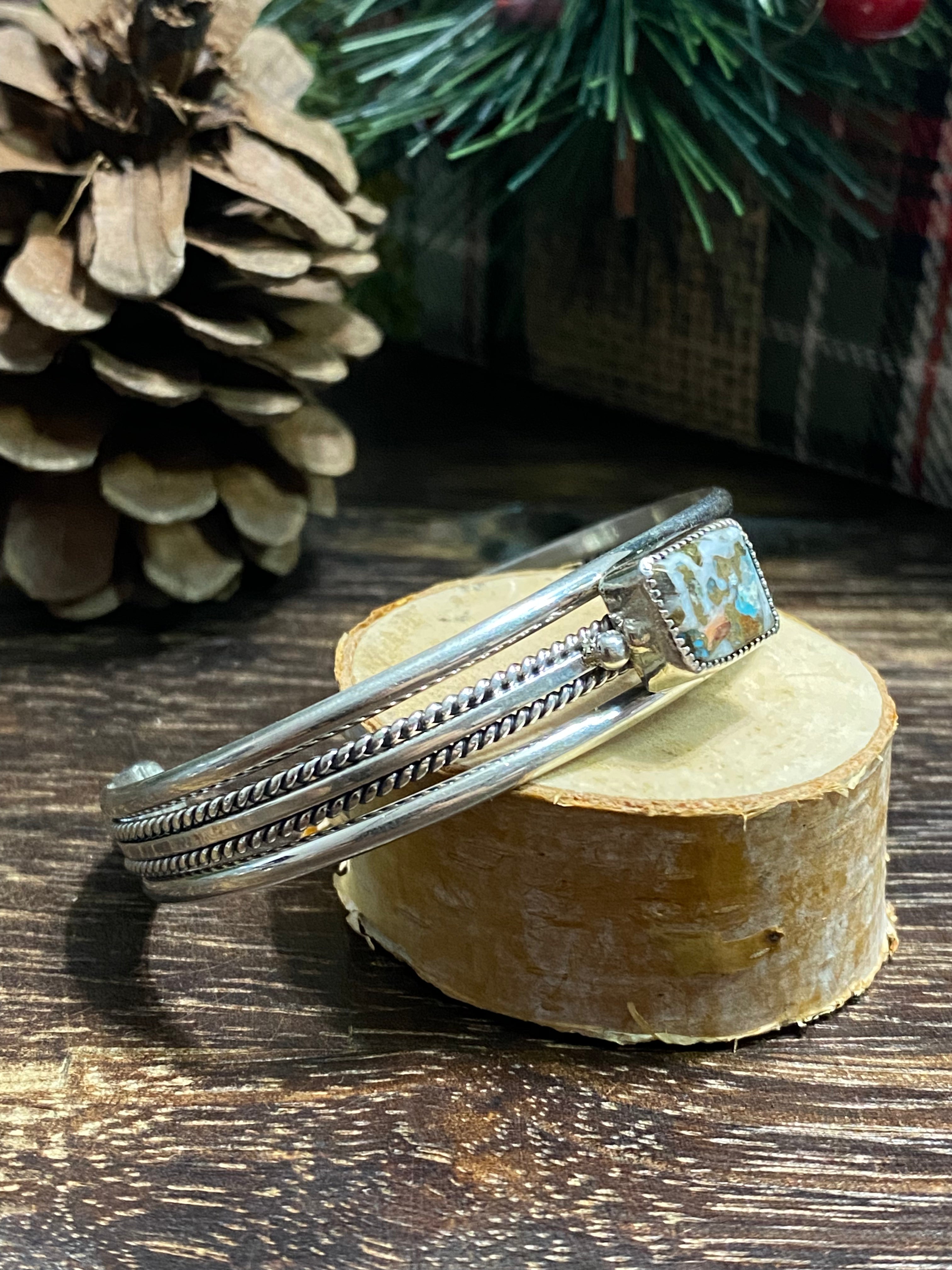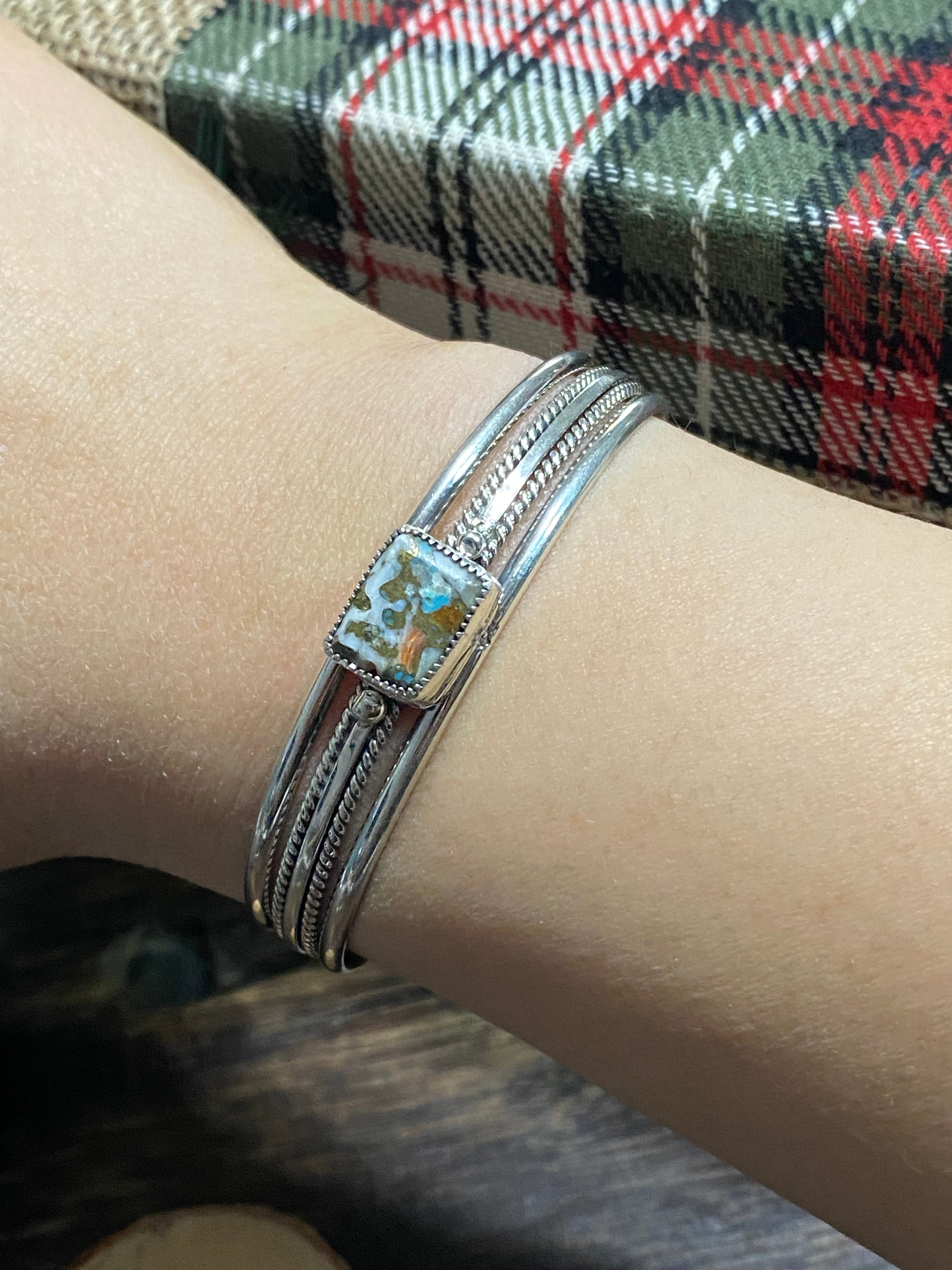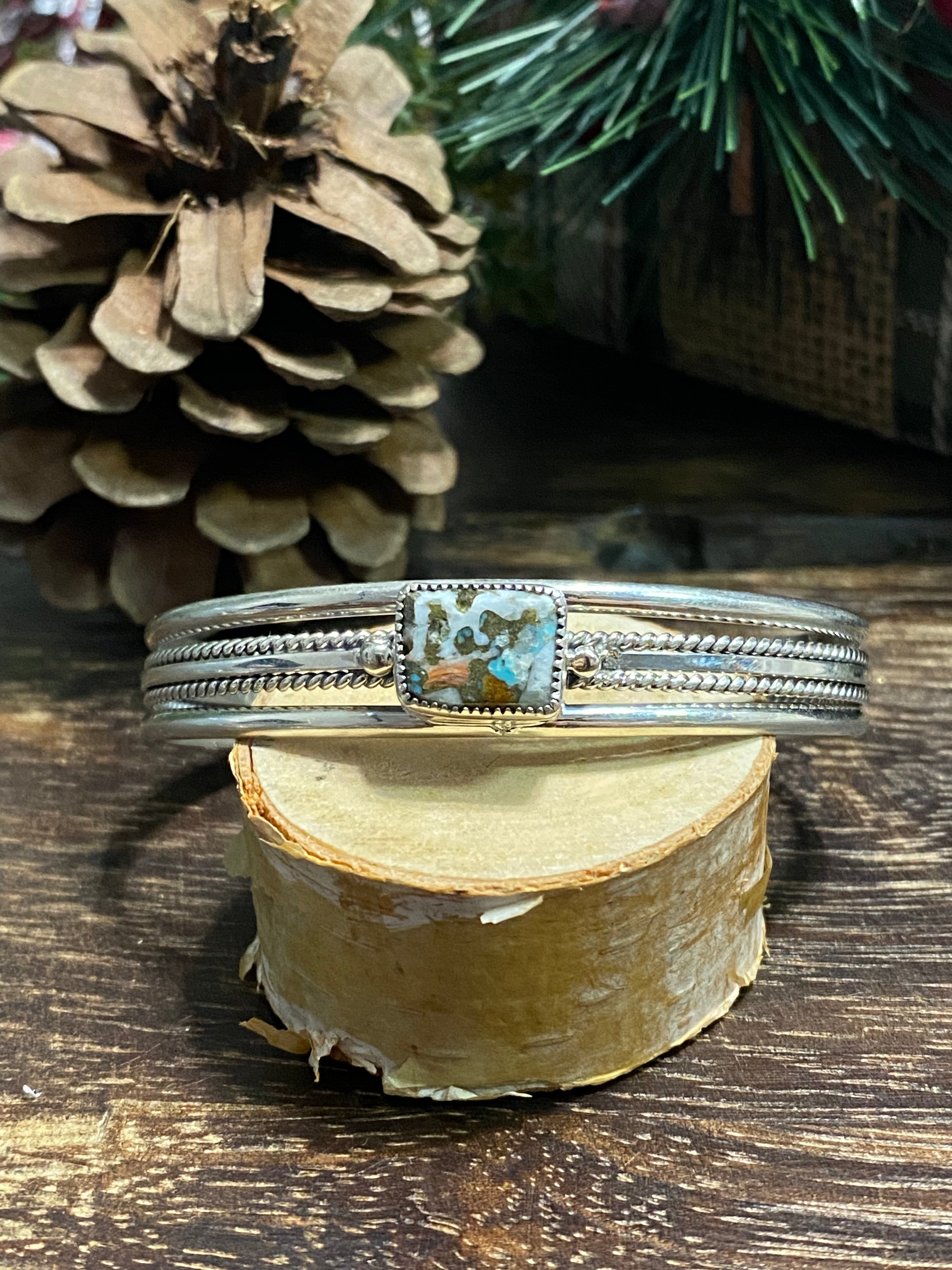 Navajo Made Mohave Turquoise & Sterling Silver Cuff Bracelet