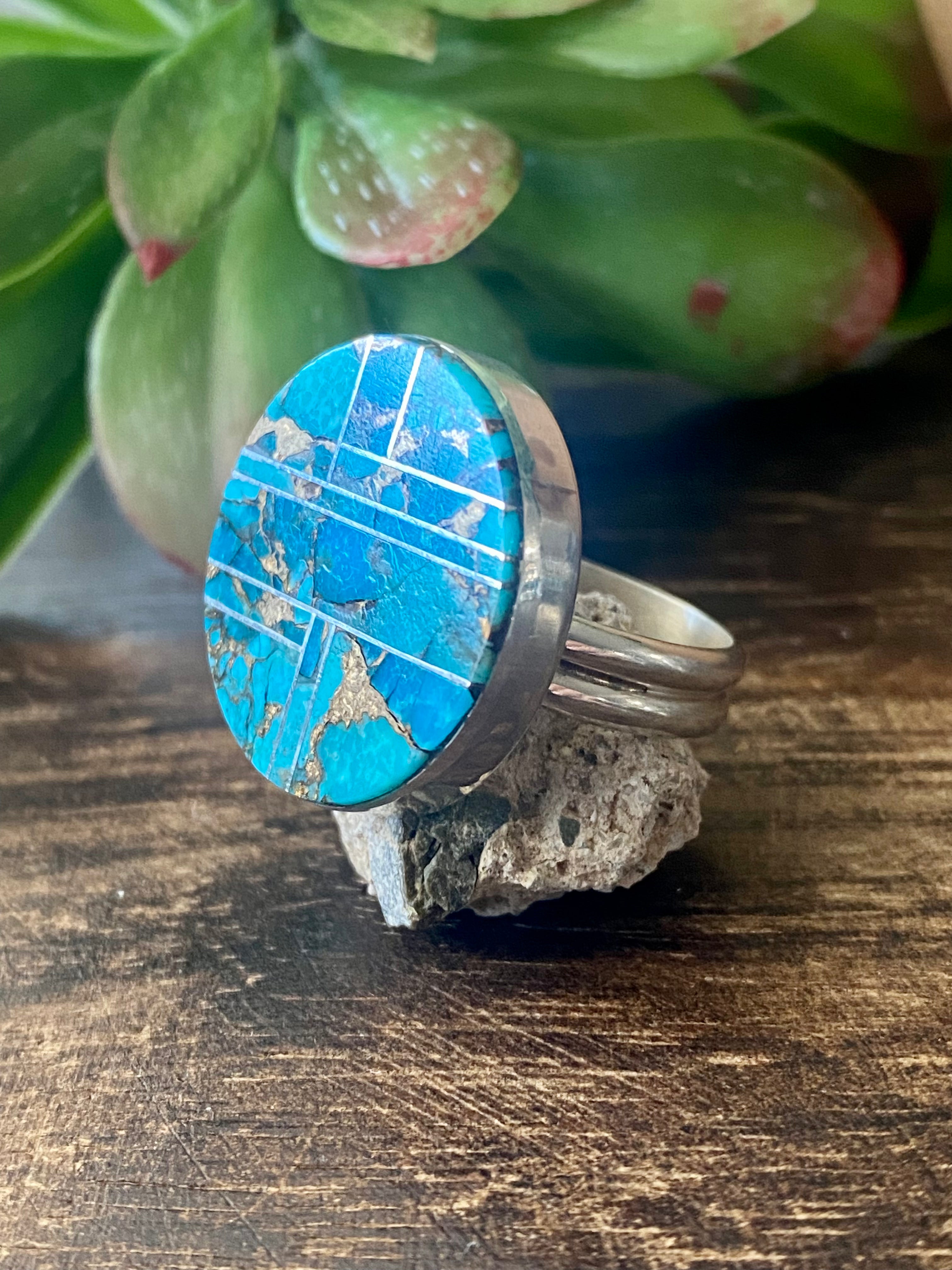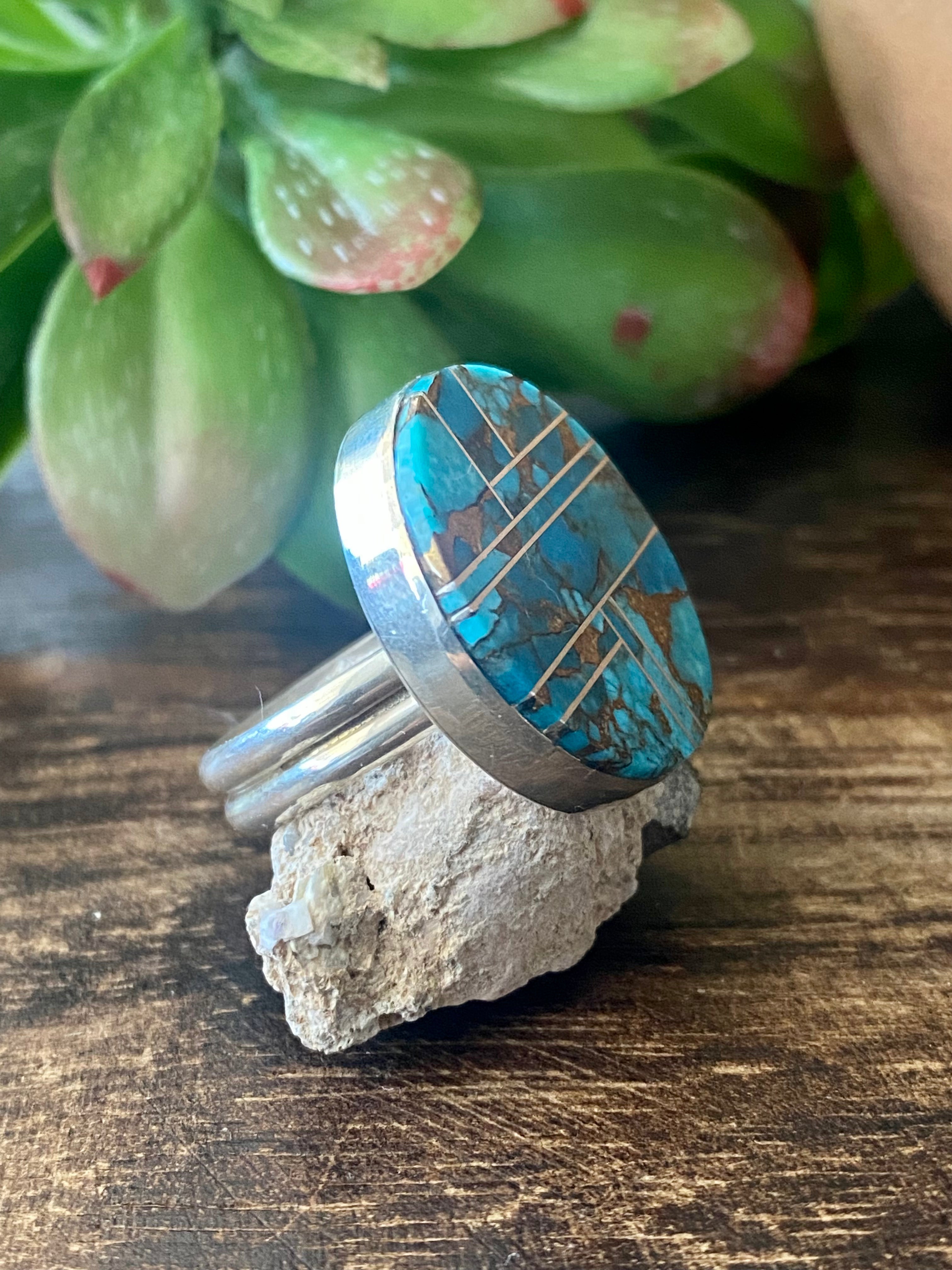 Navajo Made Mohave Turquoise & Sterling Silver Ring Size 9.5