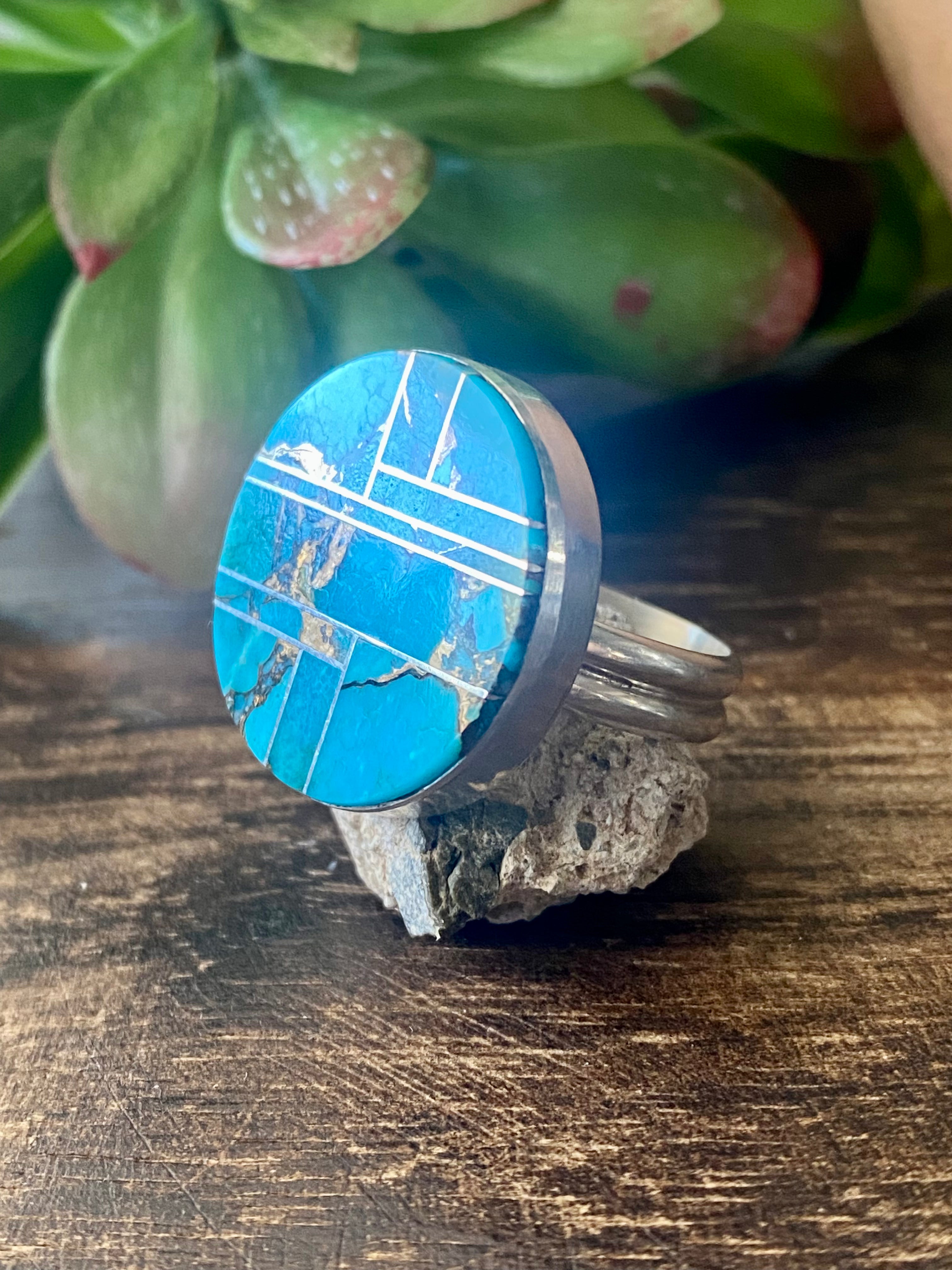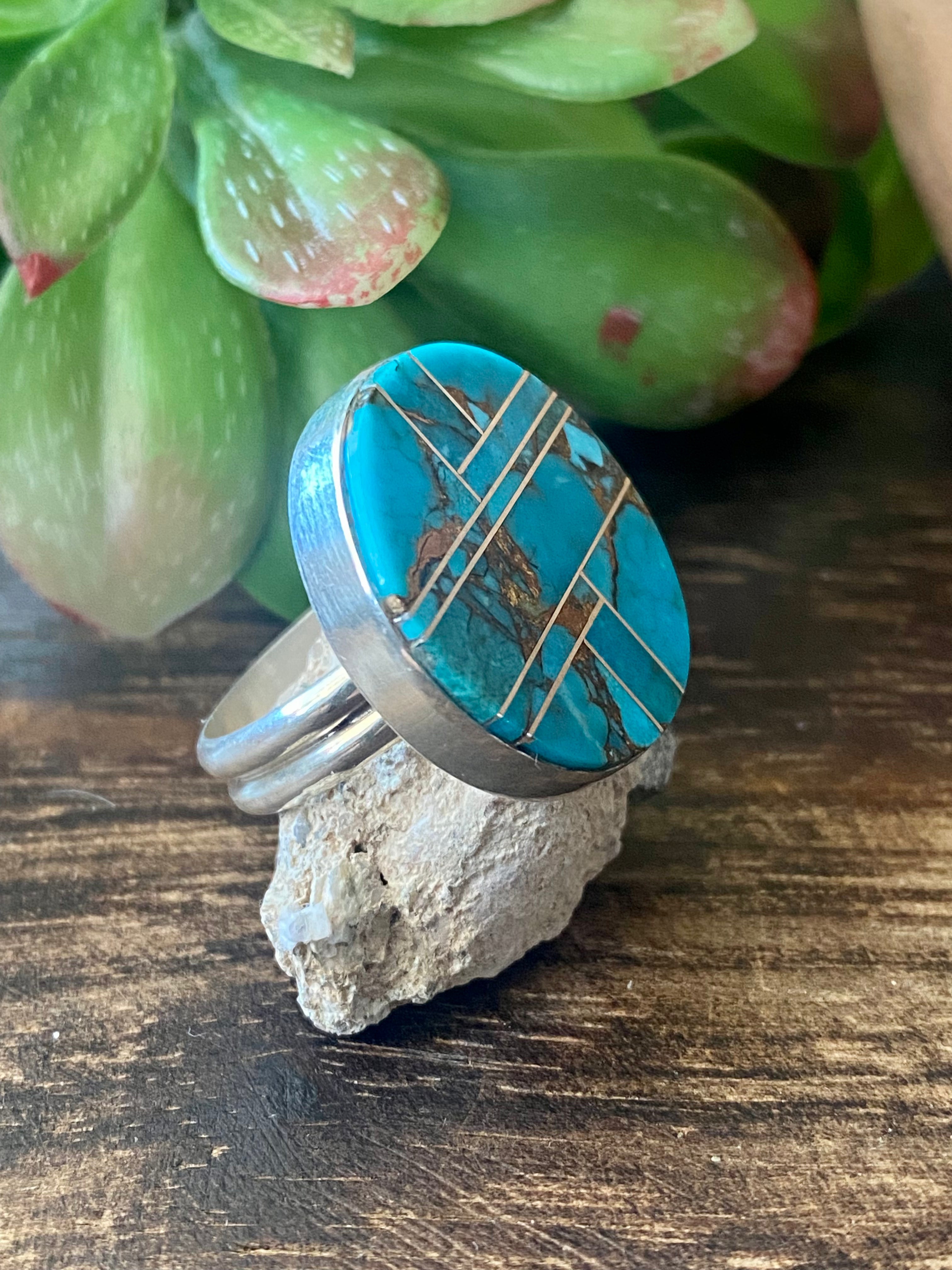 Navajo Made Mohave Turquoise & Sterling Silver Ring Size 9.5