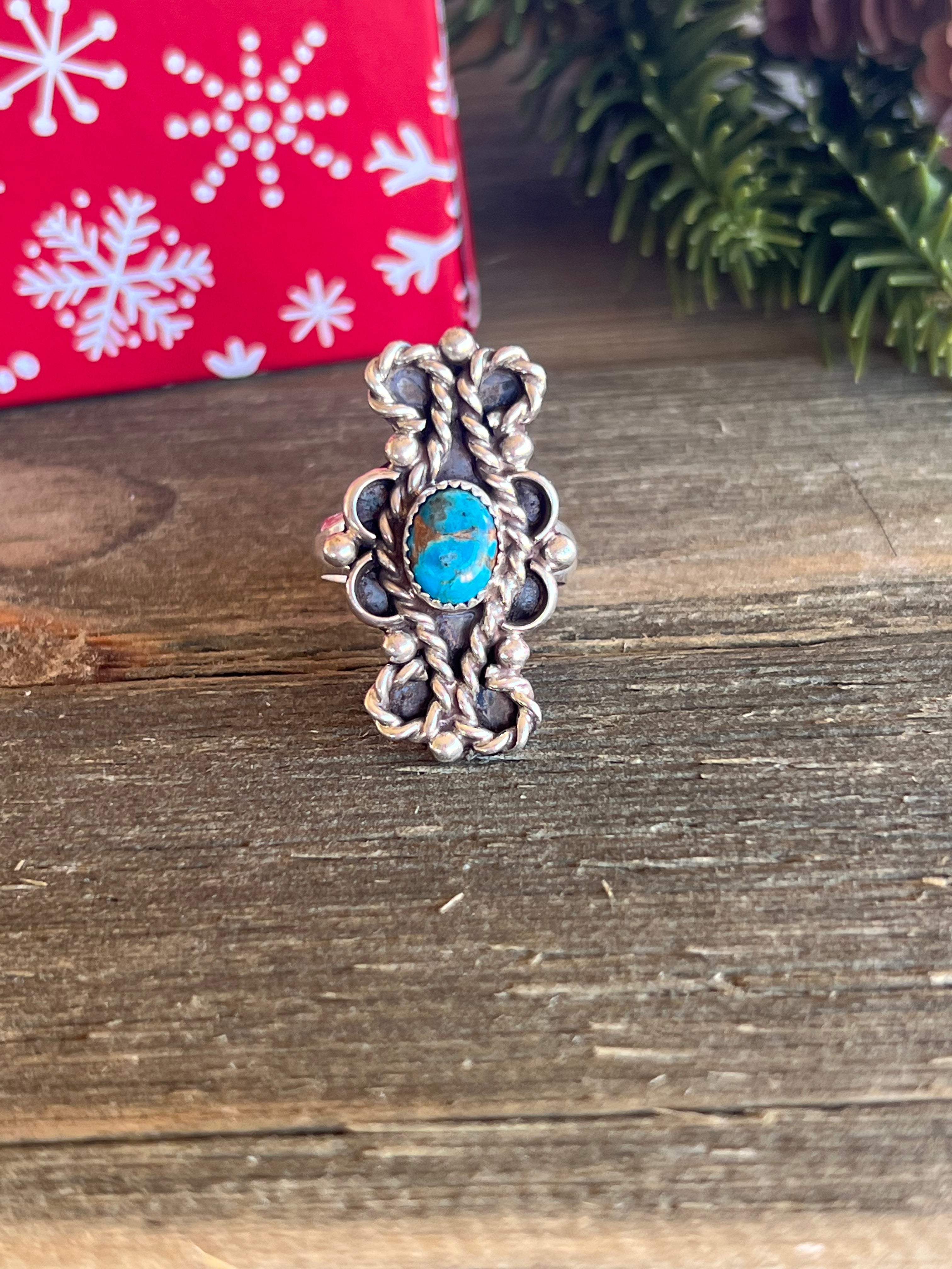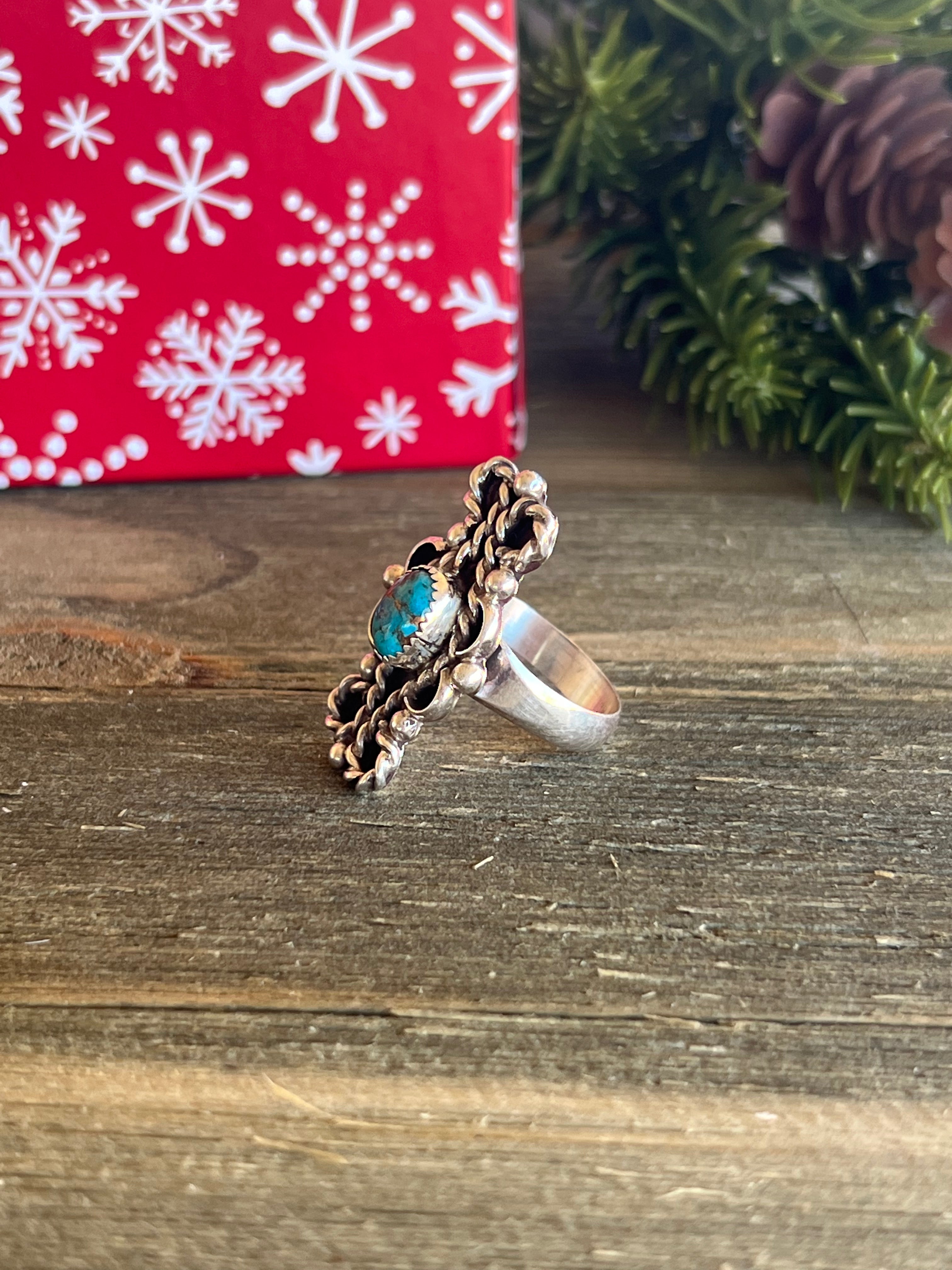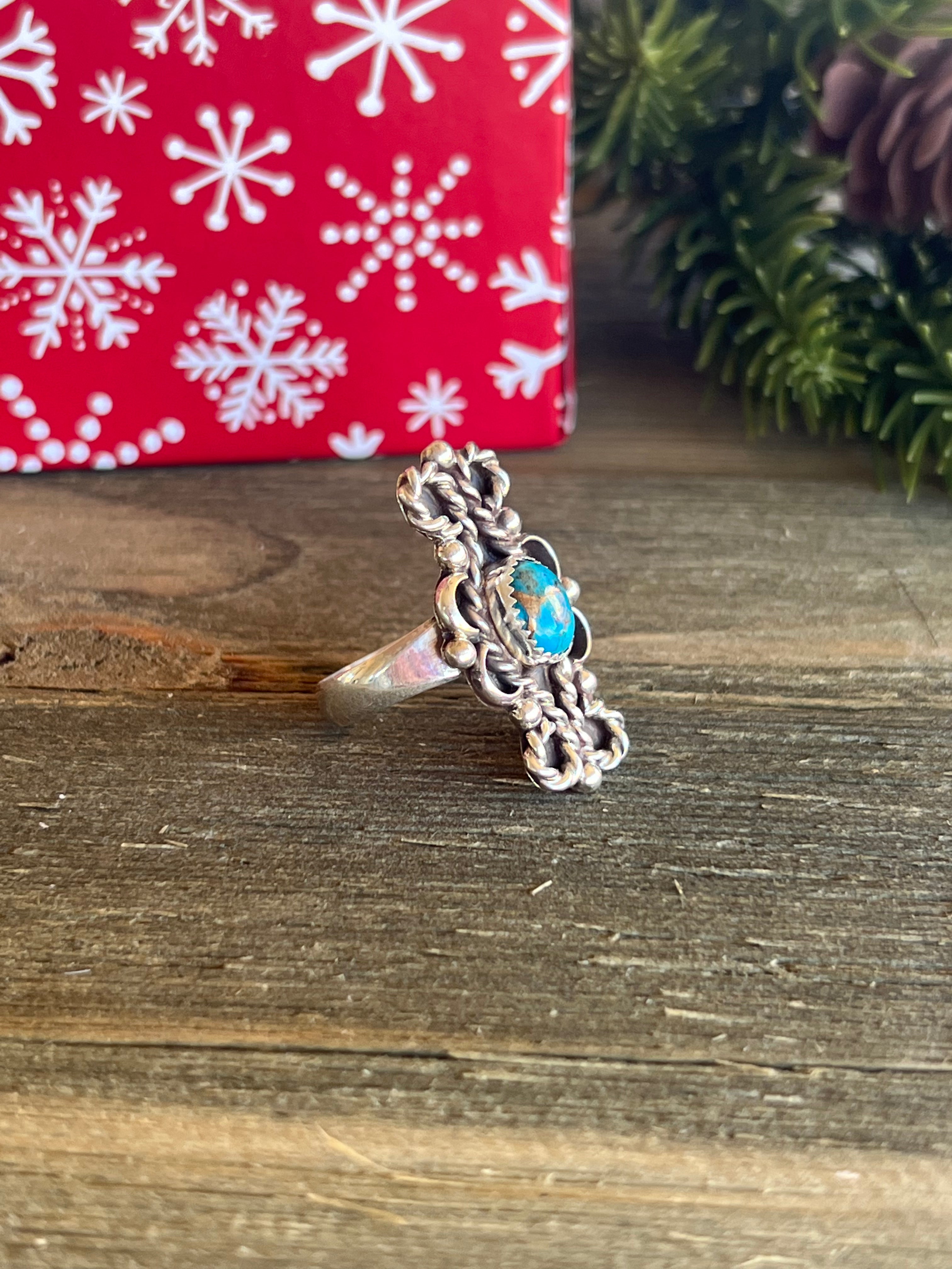 Navajo Made Mohave Turquoise & Sterling Silver Ring Size 9.5