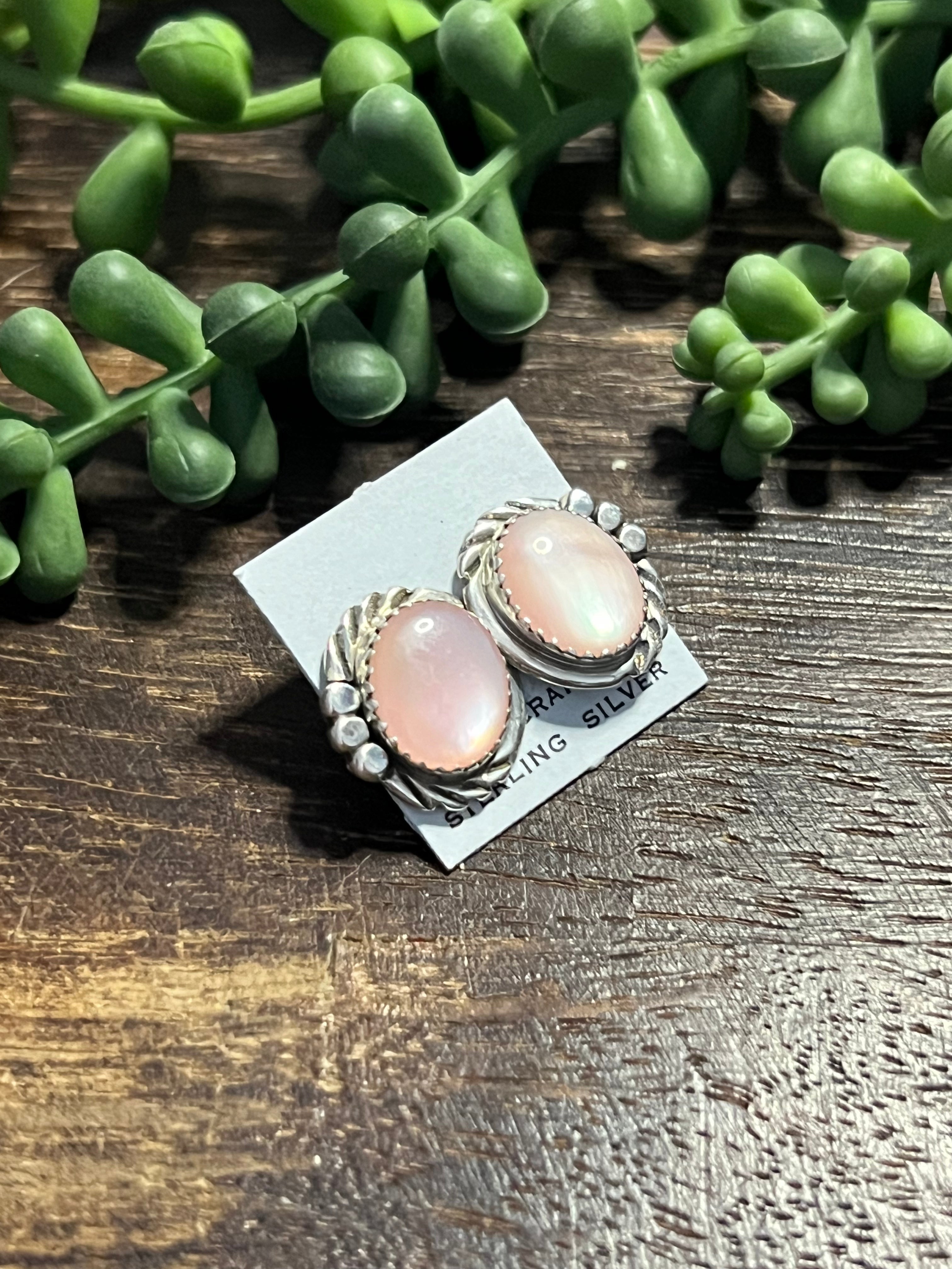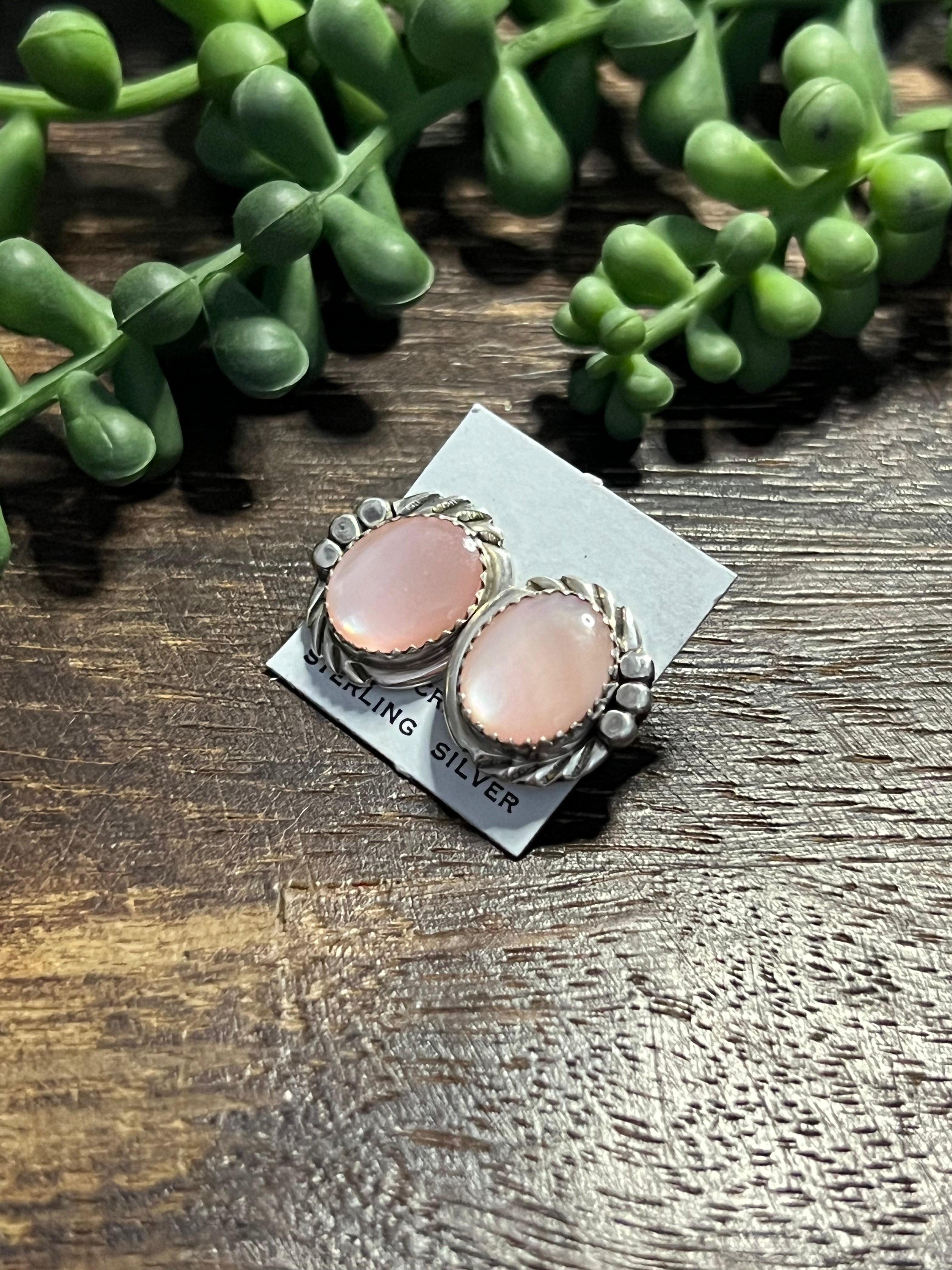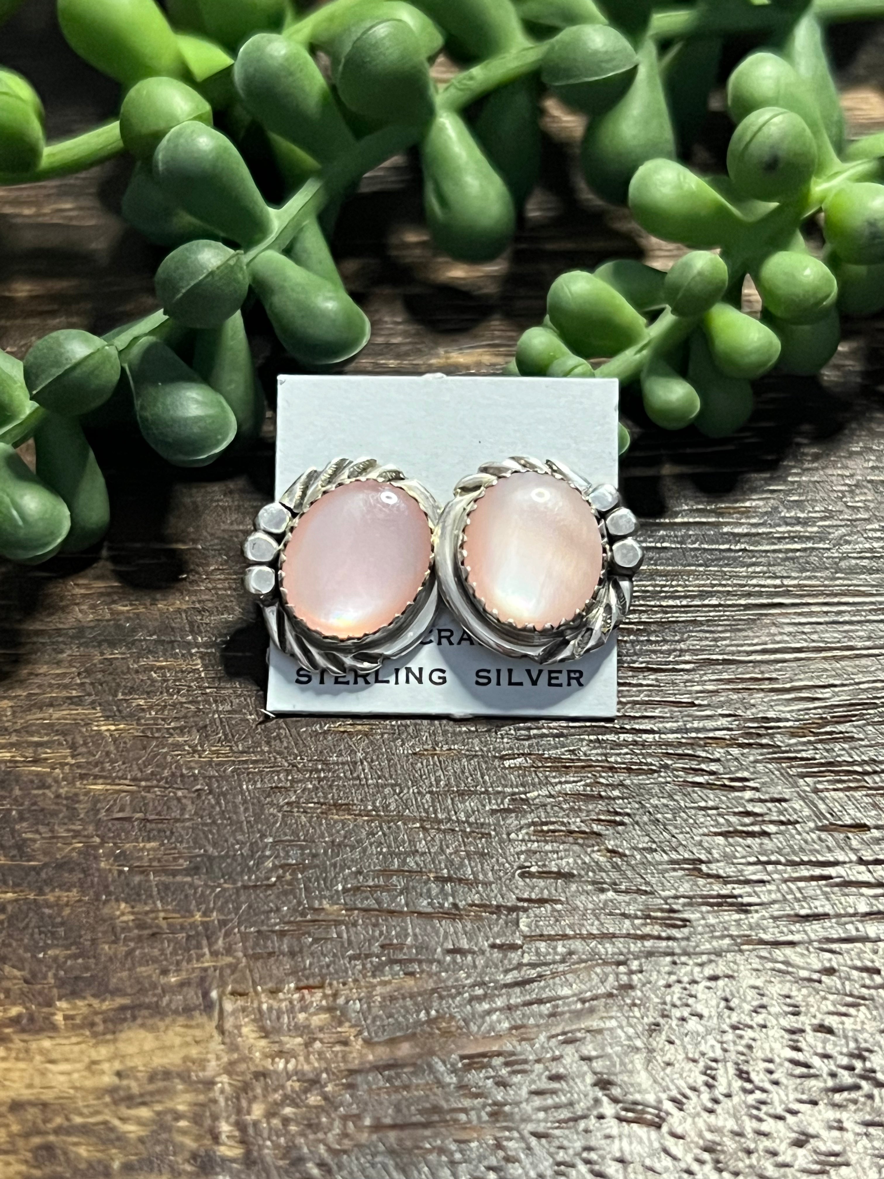 Navajo Made Mother Of Pearl & Sterling Silver Post Earrings
