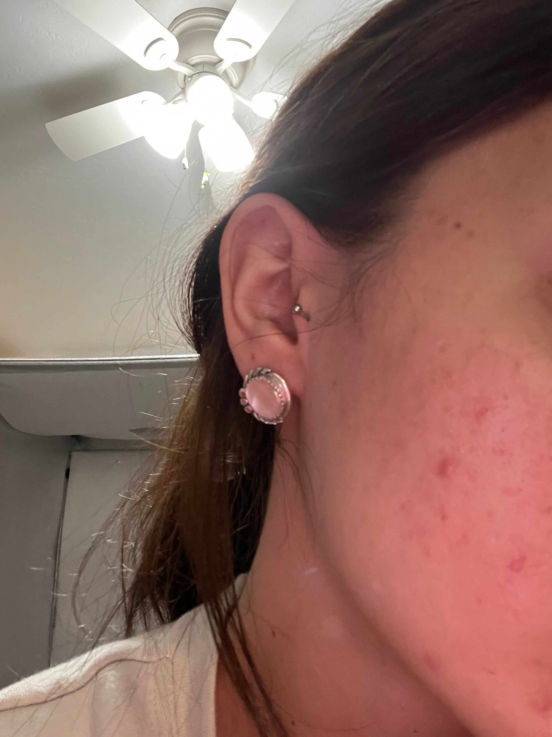Navajo Made Mother Of Pearl & Sterling Silver Post Earrings. It measures 5/8 of an inch long and just over 1/2 of an inch wide. Signed by artist and stamped sterling silver.