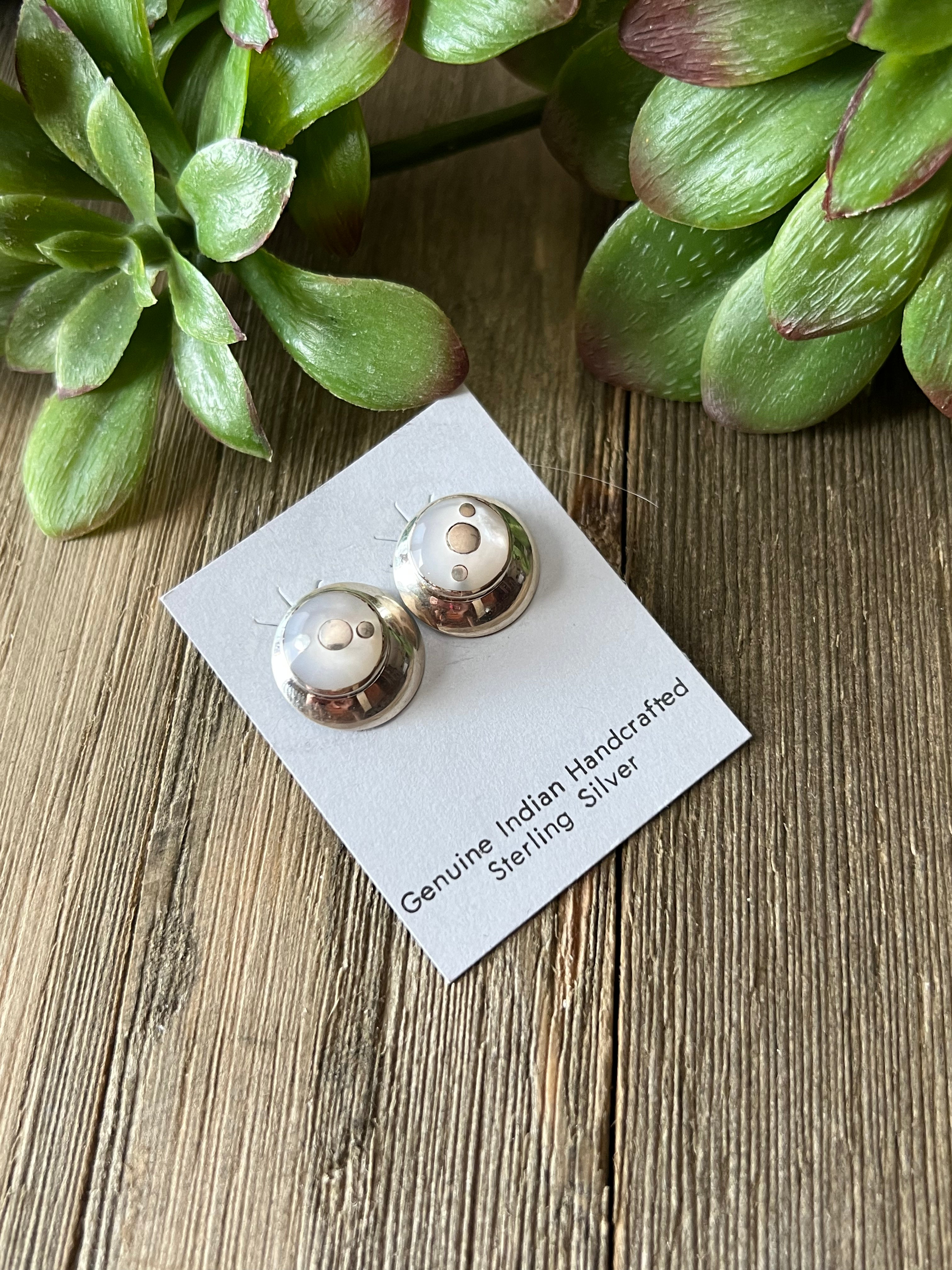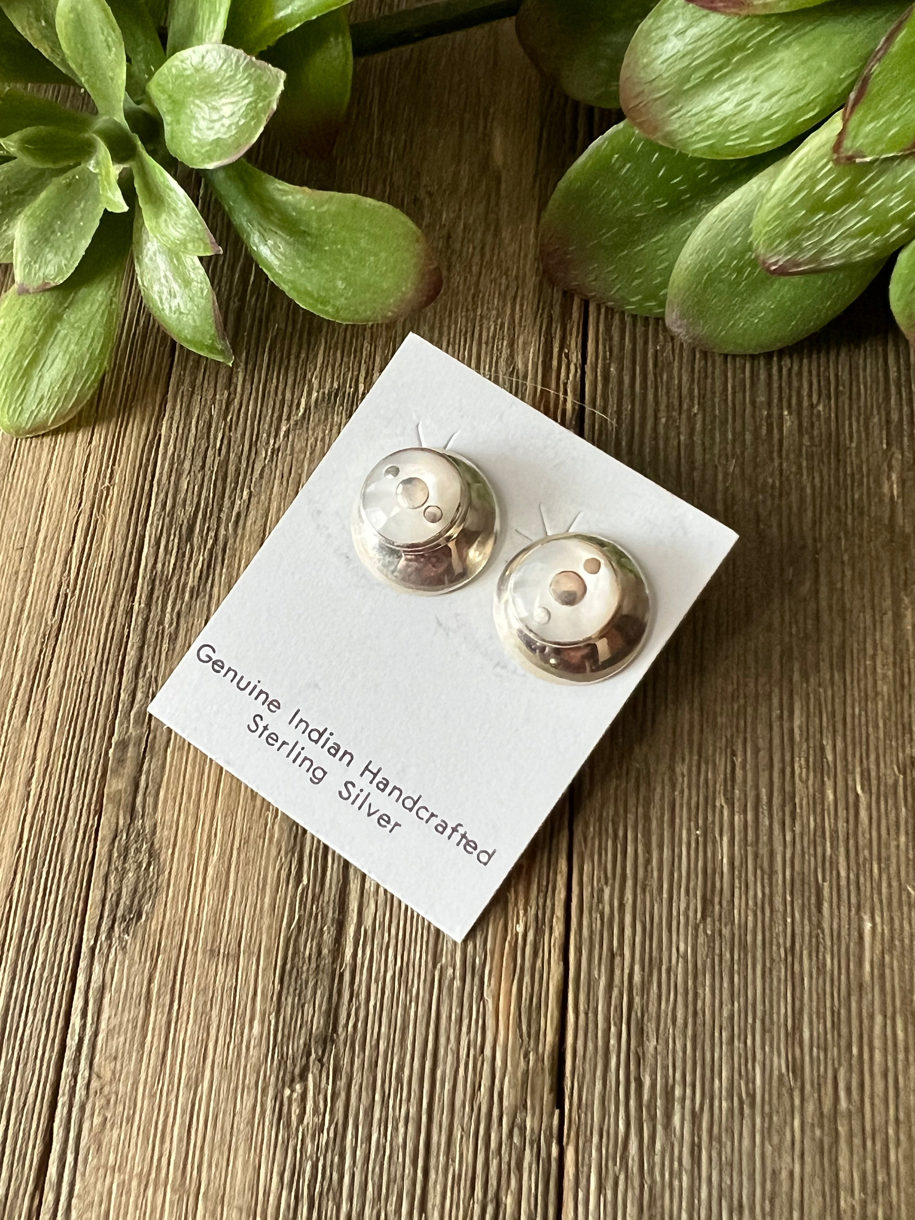 Navajo Made Mother Of Pearl & Sterling Silver Post Earrings