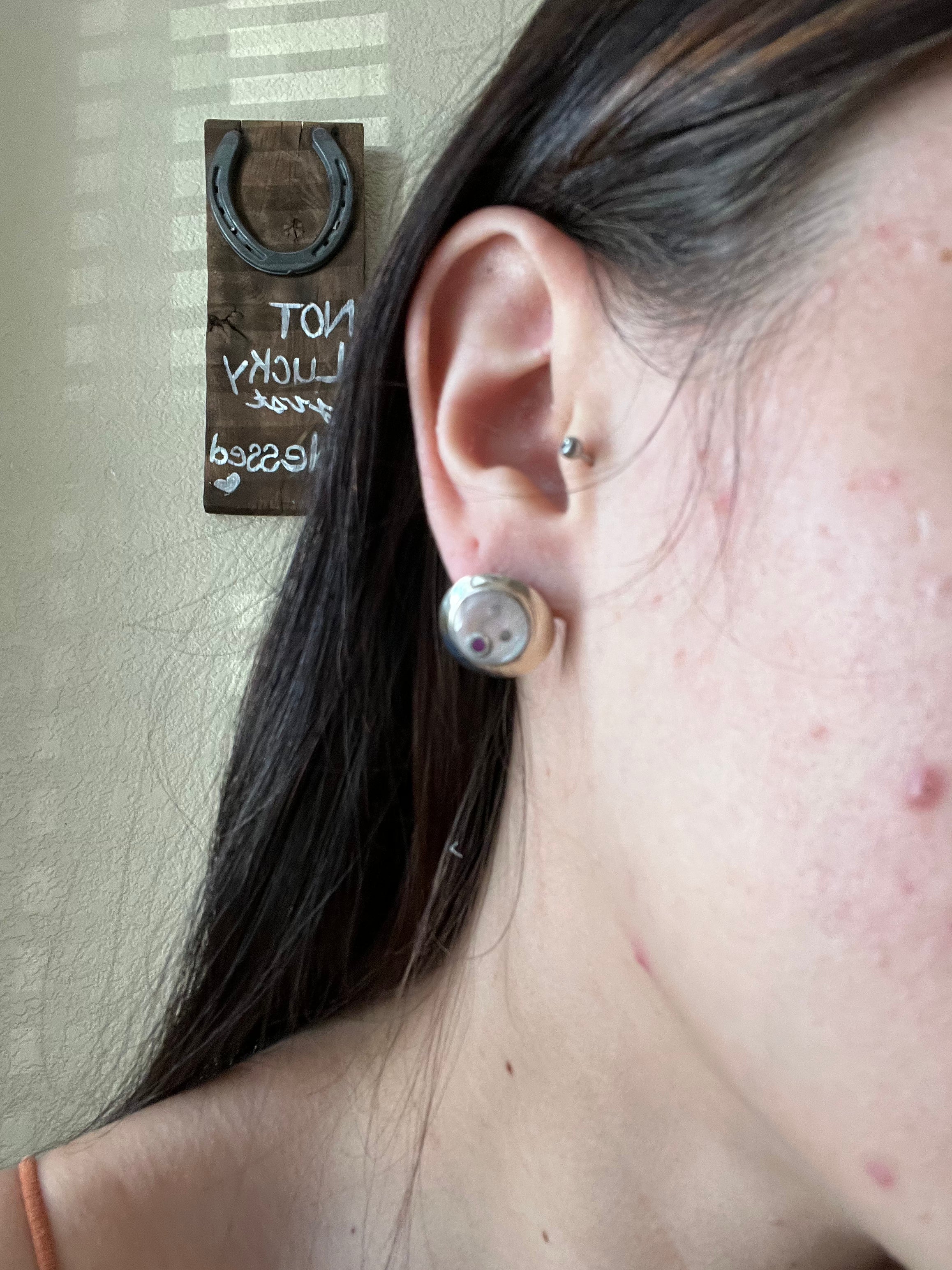 Navajo Made Mother Of Pearl & Sterling Silver Post Earrings. It measures 5/8 of an inch long and 5/8 of an inch wide.