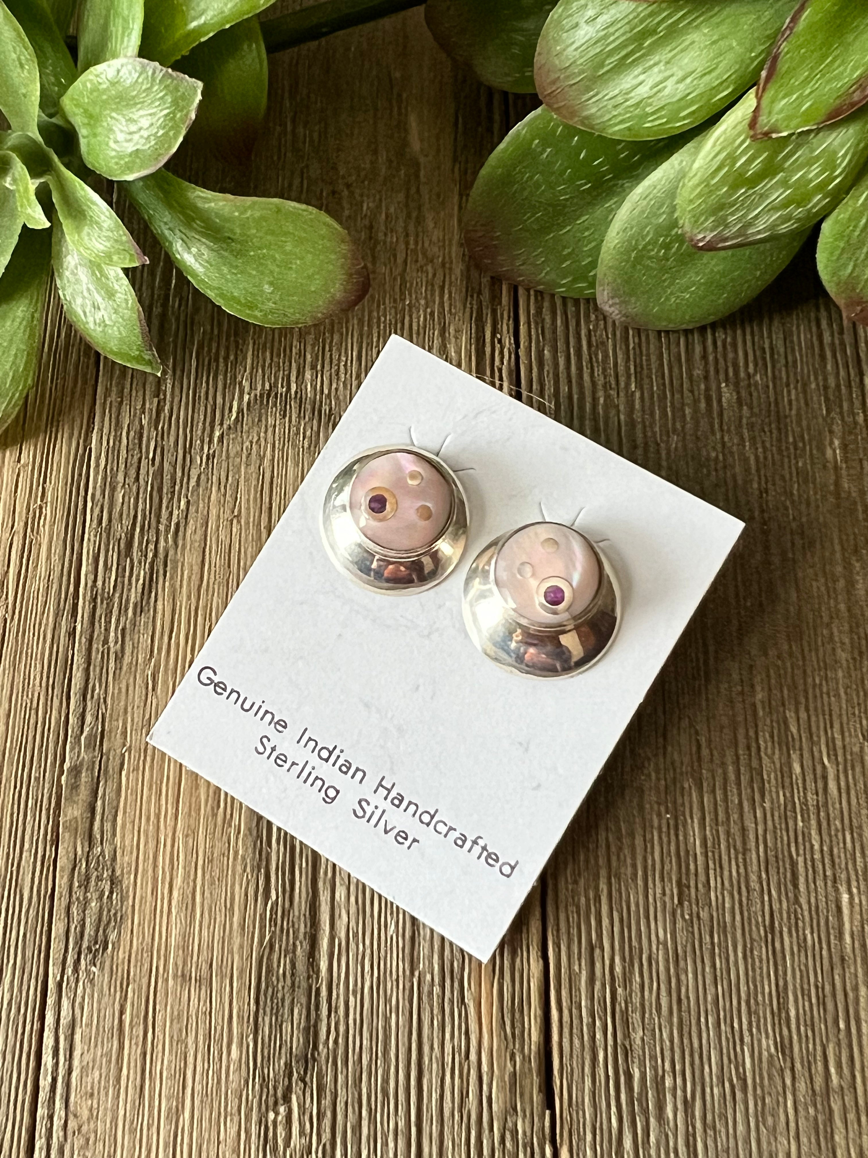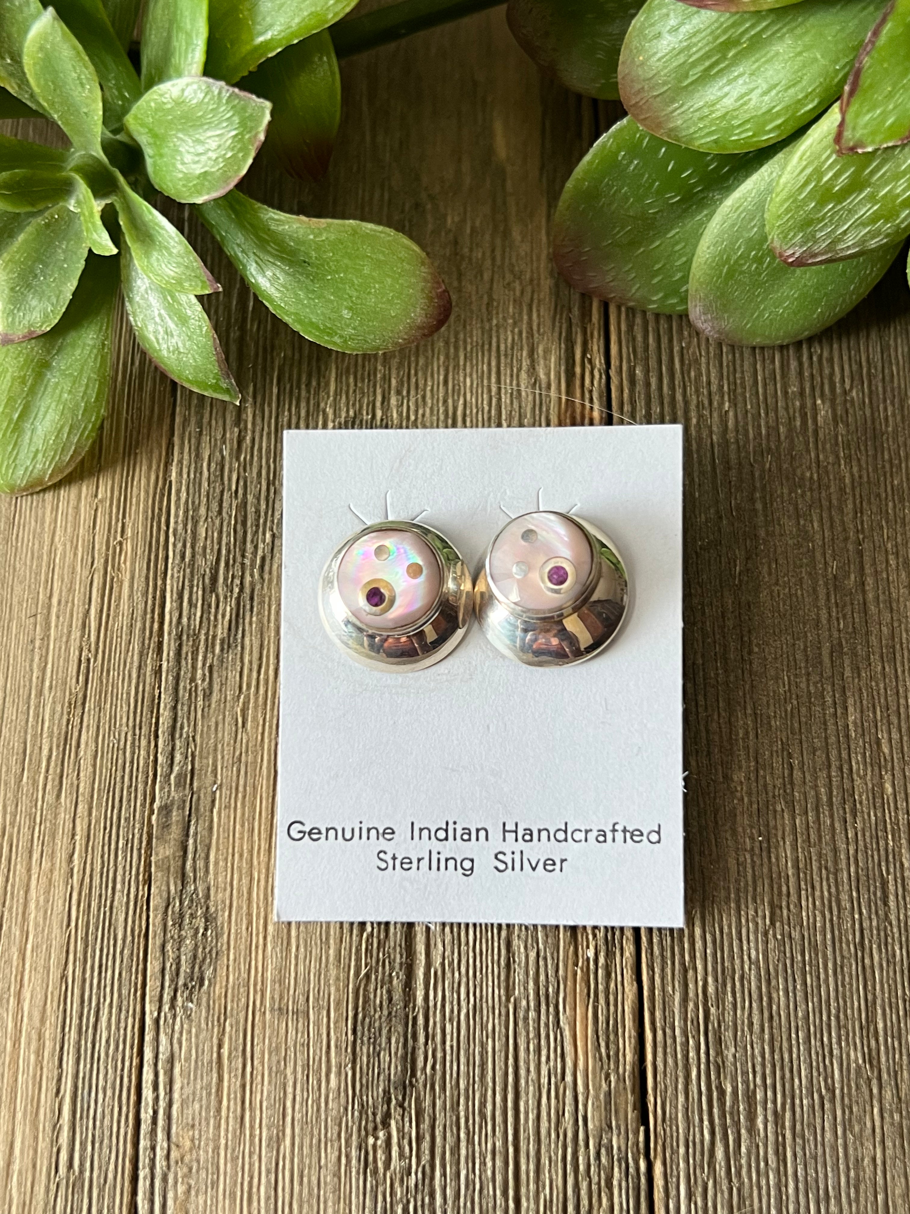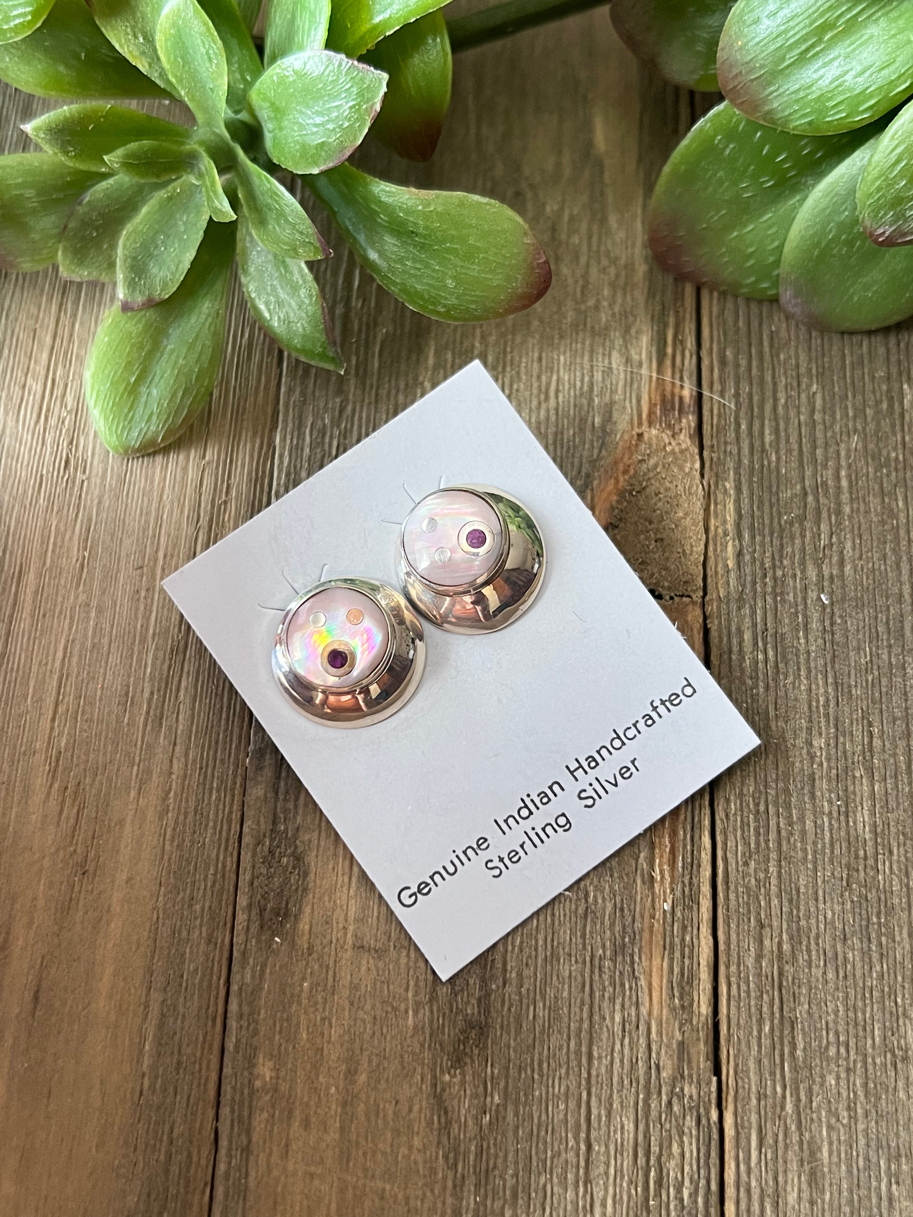 Navajo Made Mother Of Pearl & Sterling Silver Post Earrings