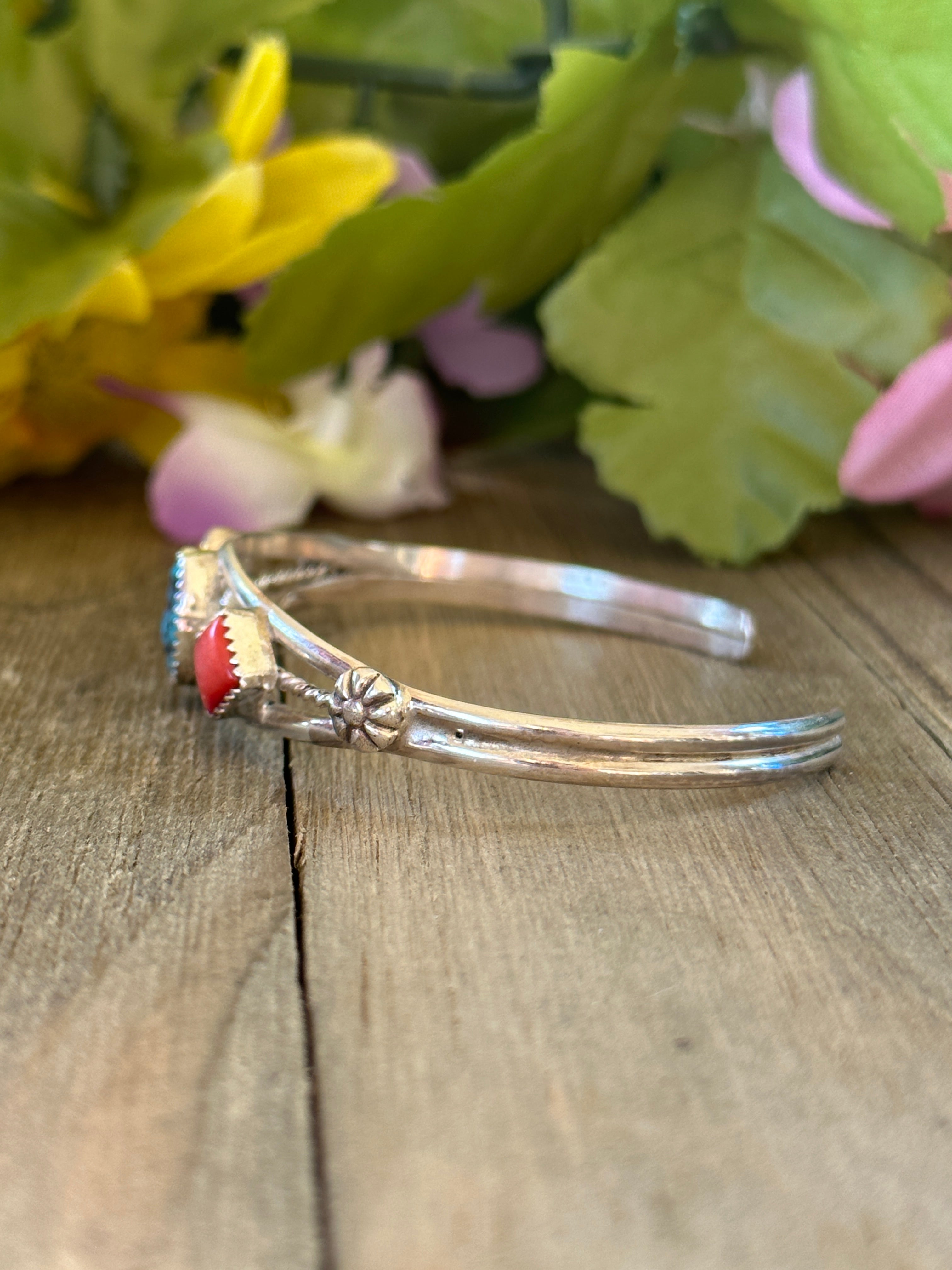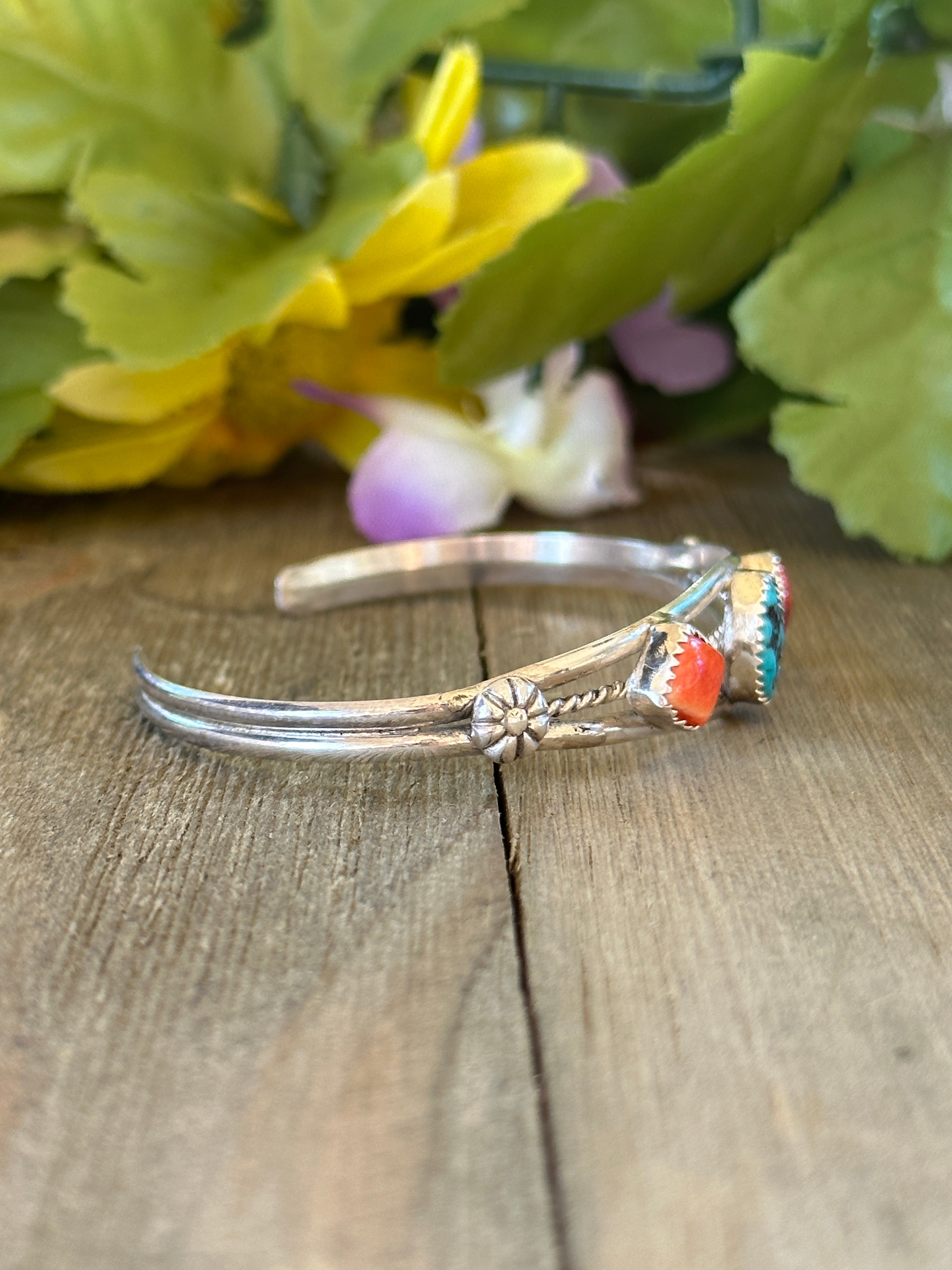 Navajo Made Multi Stone & Sterling Silver Cuff Bracelet