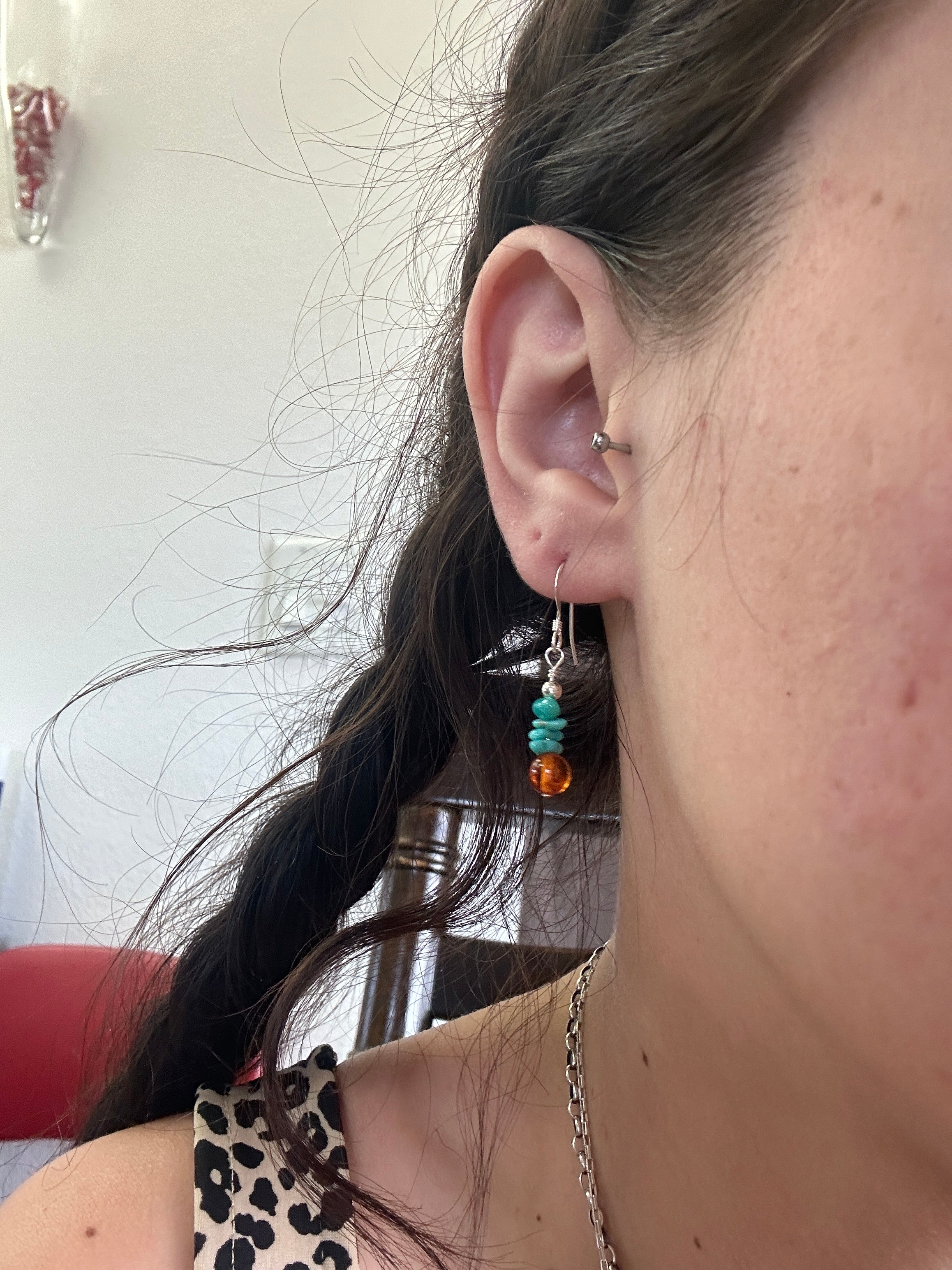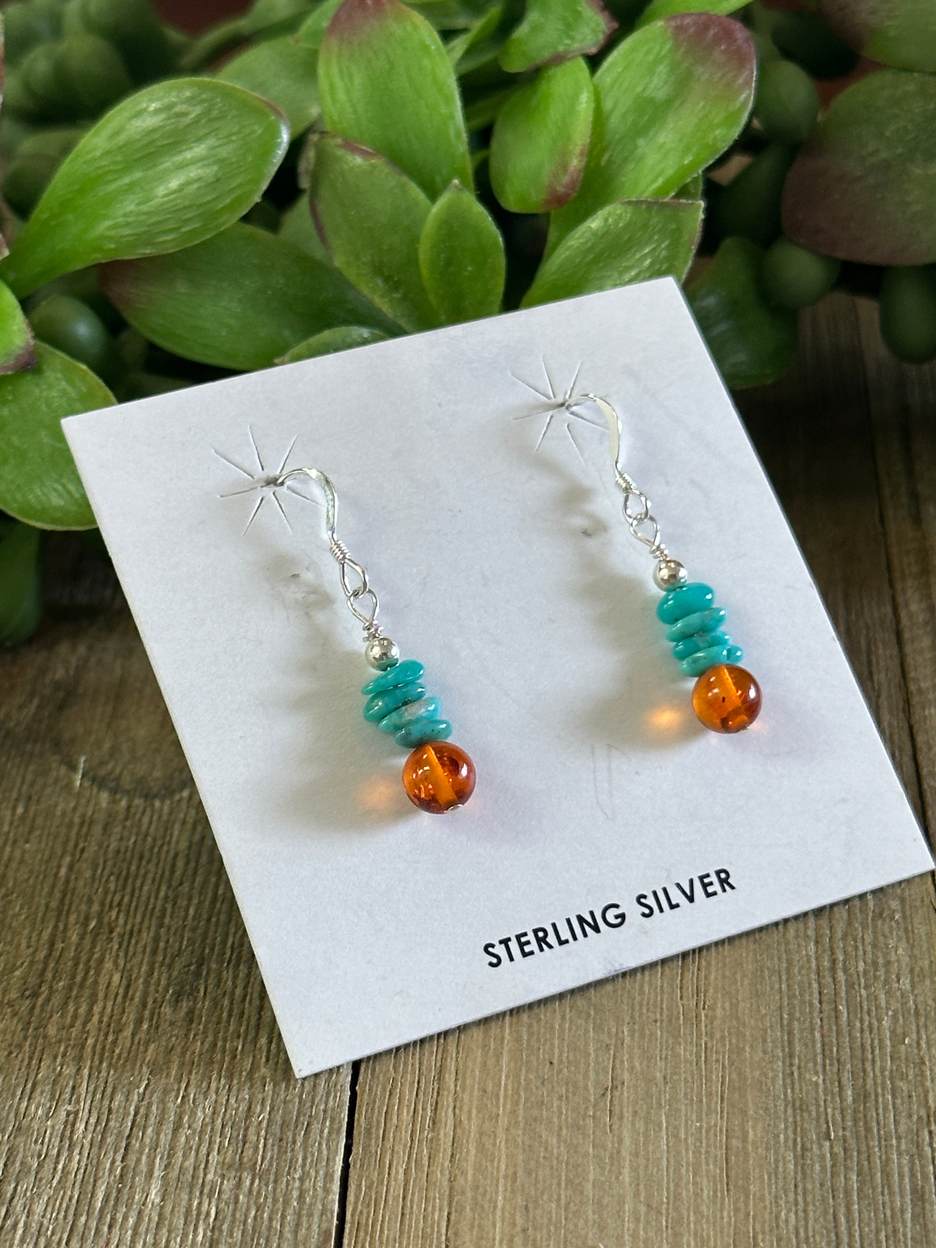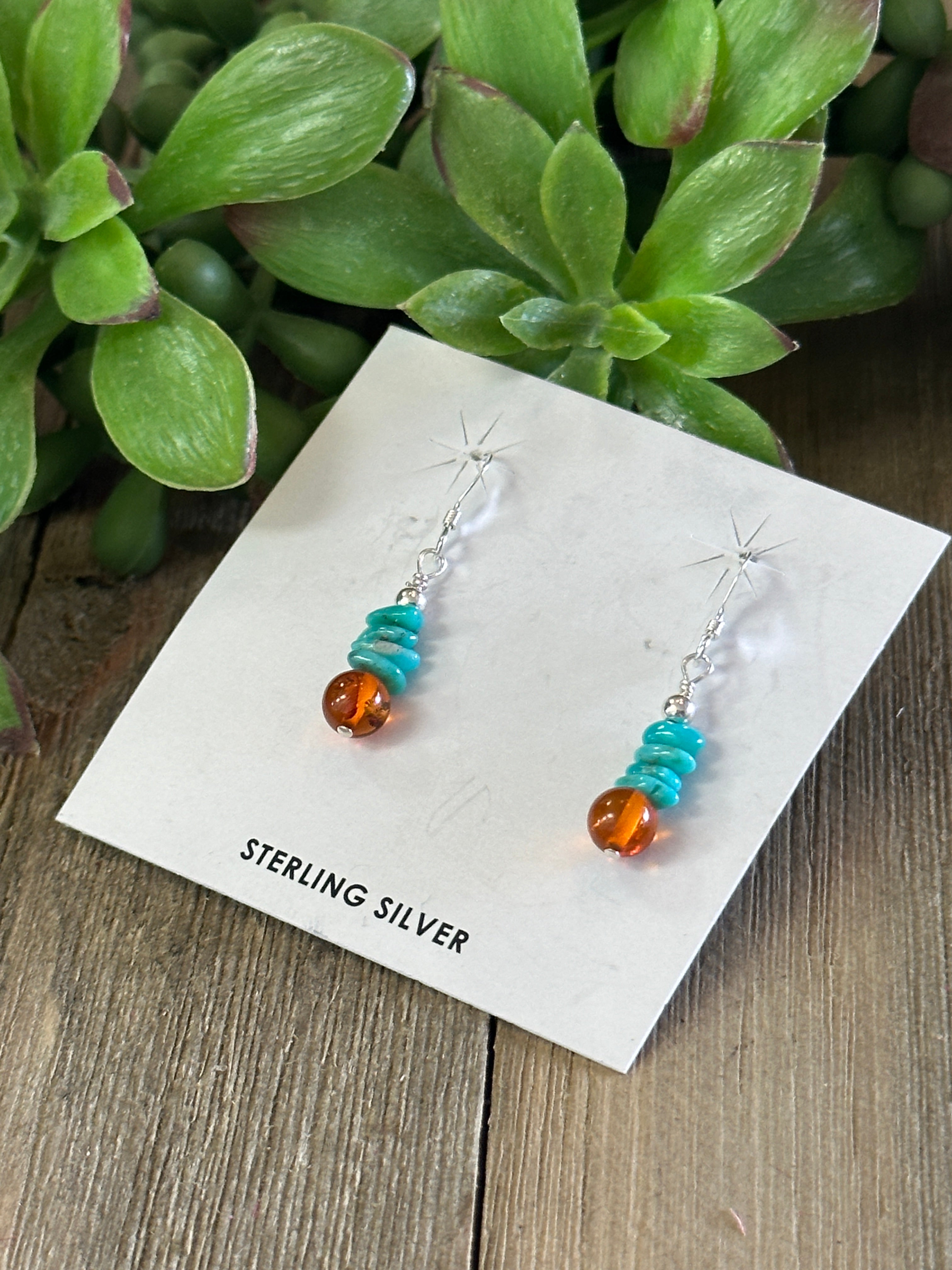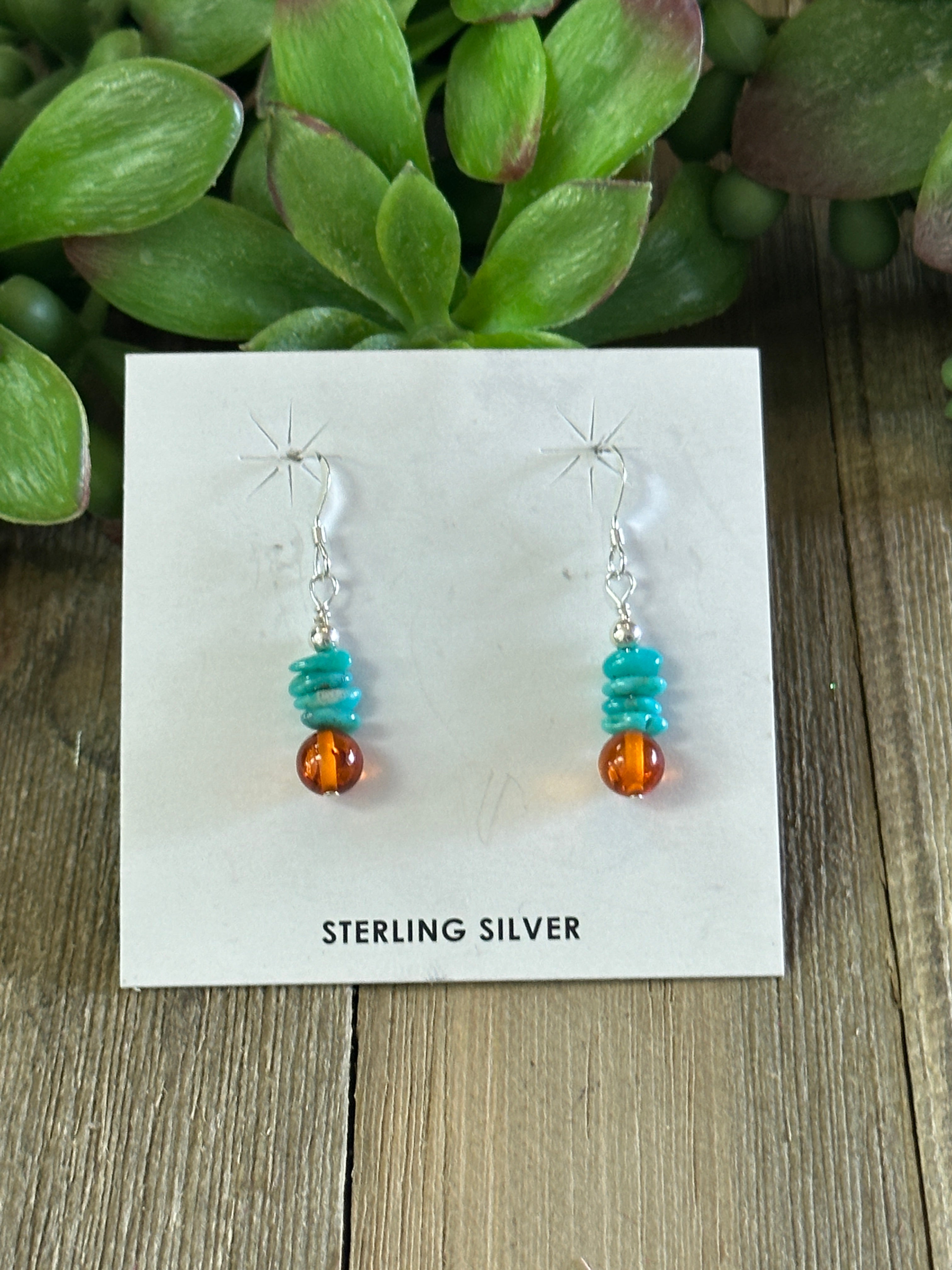 Navajo Made Multi Stone & Sterling Silver Dangle Earrings. It measures 1 3/8 inches long and just over 1/8 of an inch wide.