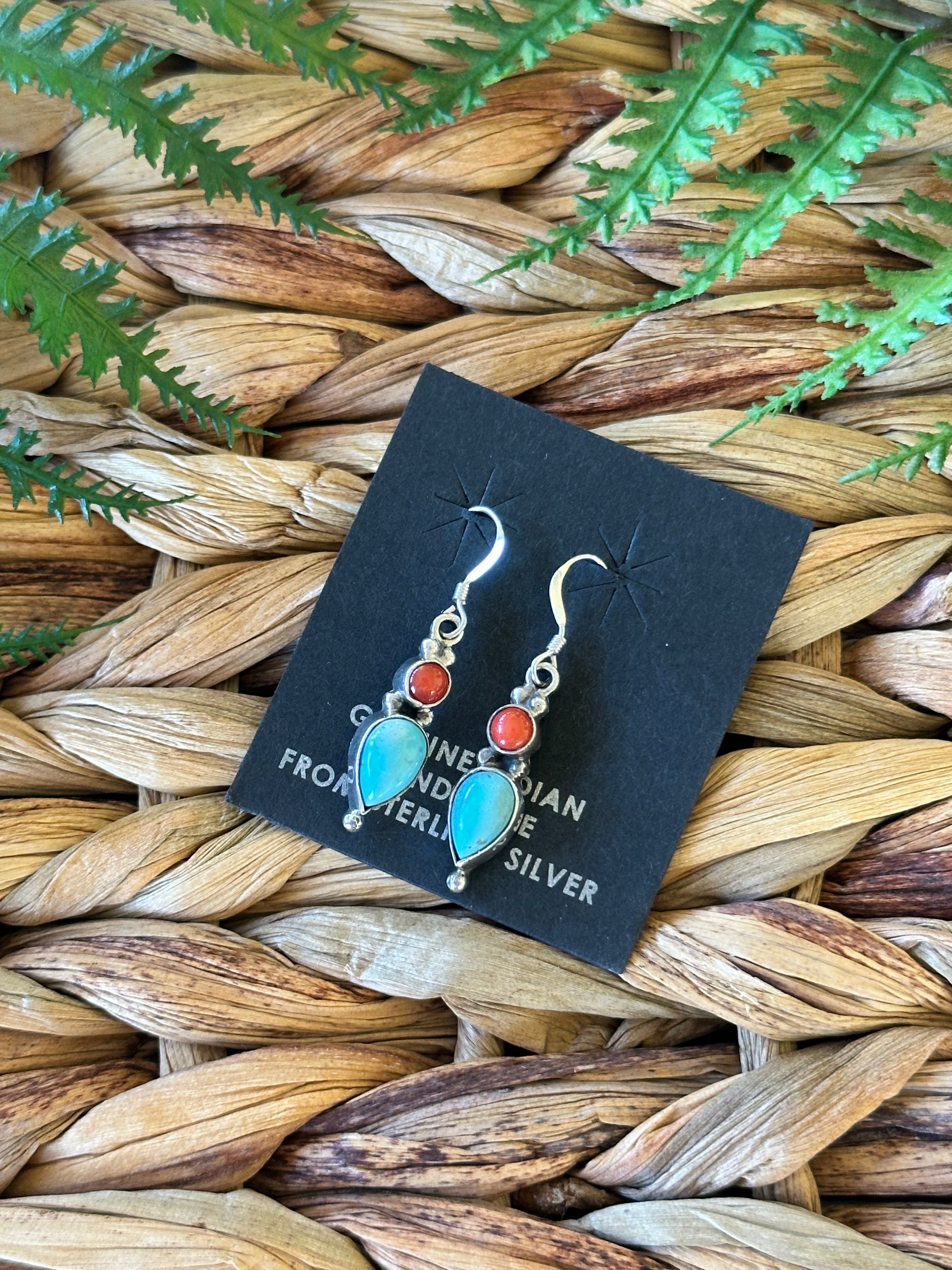 Beautiful lightweight Earrings. Navajo Made Multi Stone & Sterling Silver Dangle Earrings. It measures 1 3/8 inches long and just over 1/4 of an inch wide. Stamped sterling silver. Stones will differ due to natural stones.