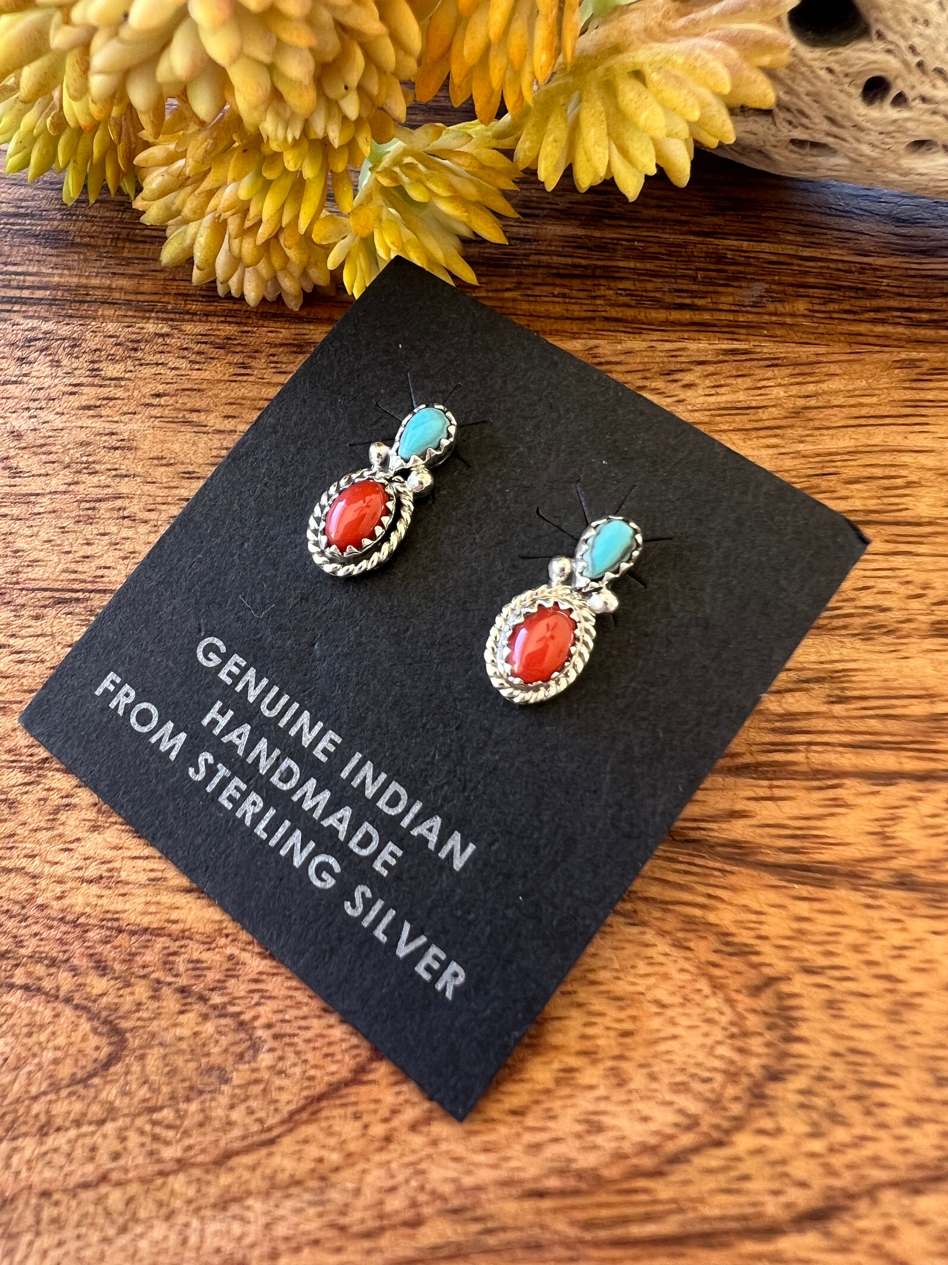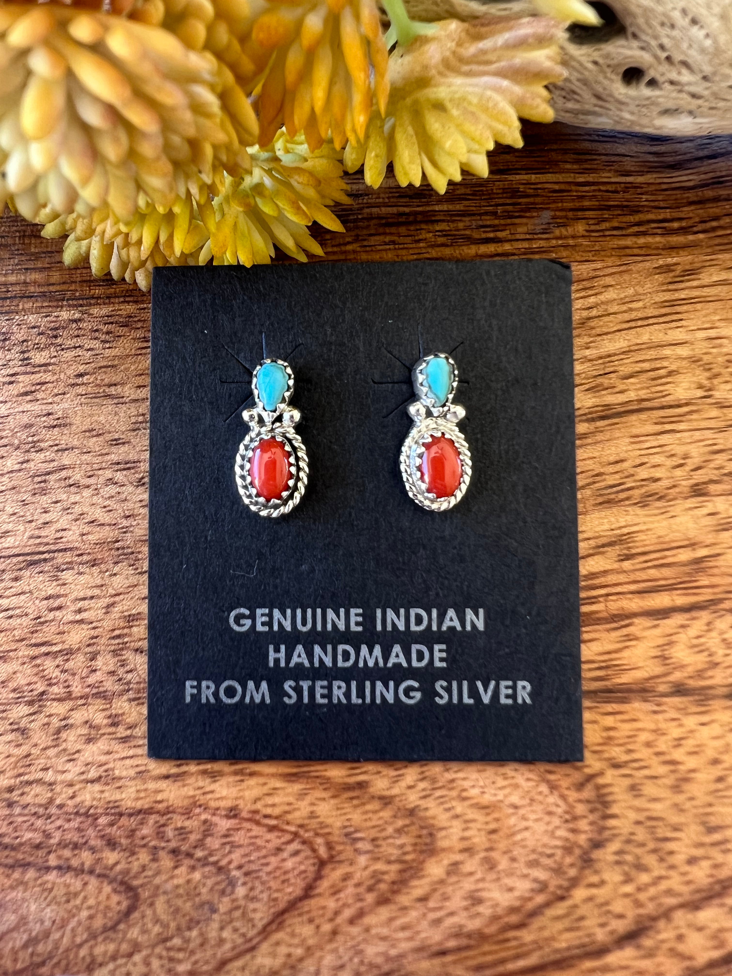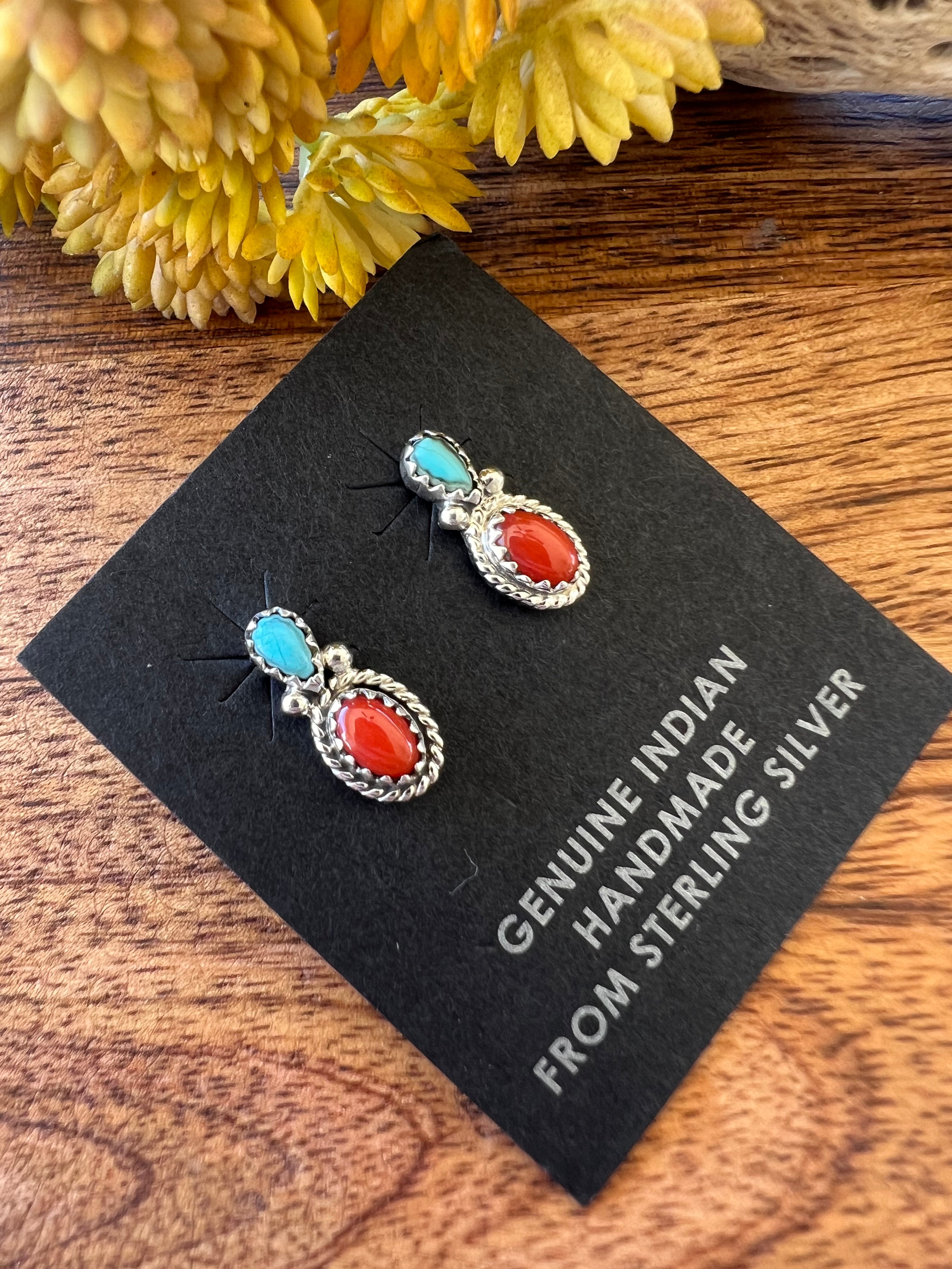 Navajo Made Multi Stone & Sterling Silver Earrings
