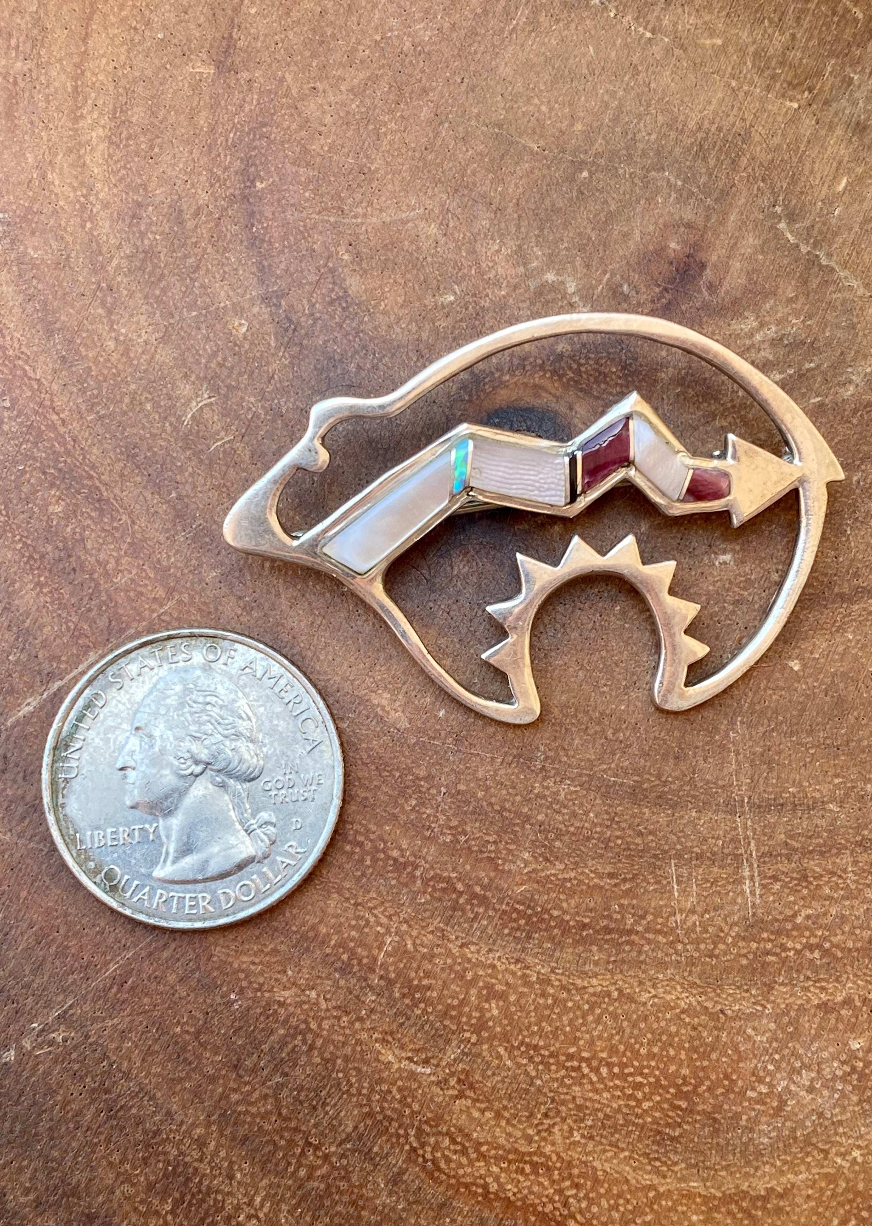 Navajo Made Multi Stone & Sterling Silver Inlay Bear Pin